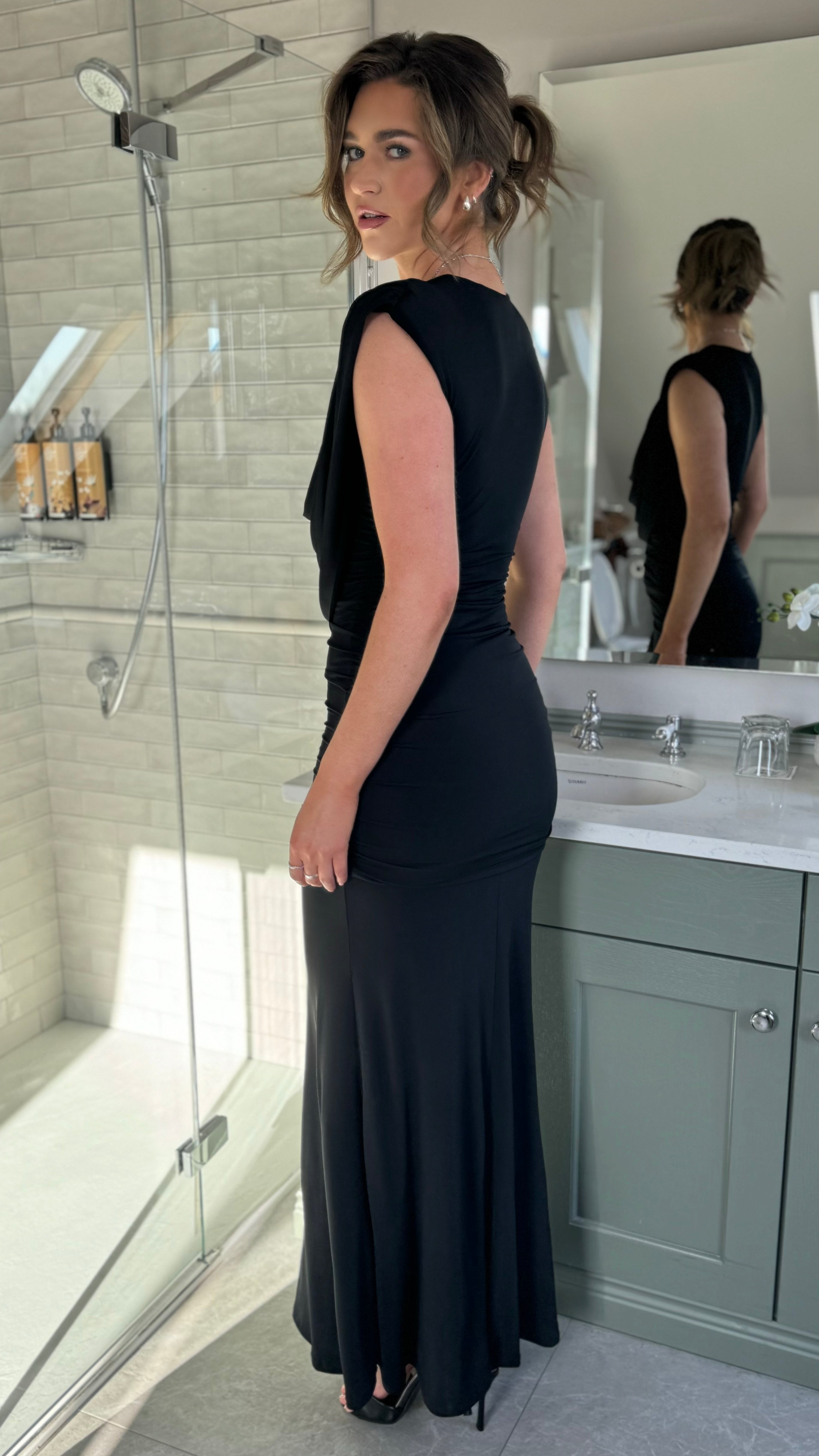 Serenity Black Slinky Cowl Neck Maxi Dress