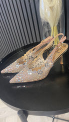 Indulge in these sparkling Sinead Champagne Diamante Embellished Slingback Shoes. Adorned with dazzling diamantes, these slingbacks will elevate your look with effortless glamour. With their comfortable slingback design and chic champagne color, these shoes are perfect for any special occasion. Slip them on and shine!