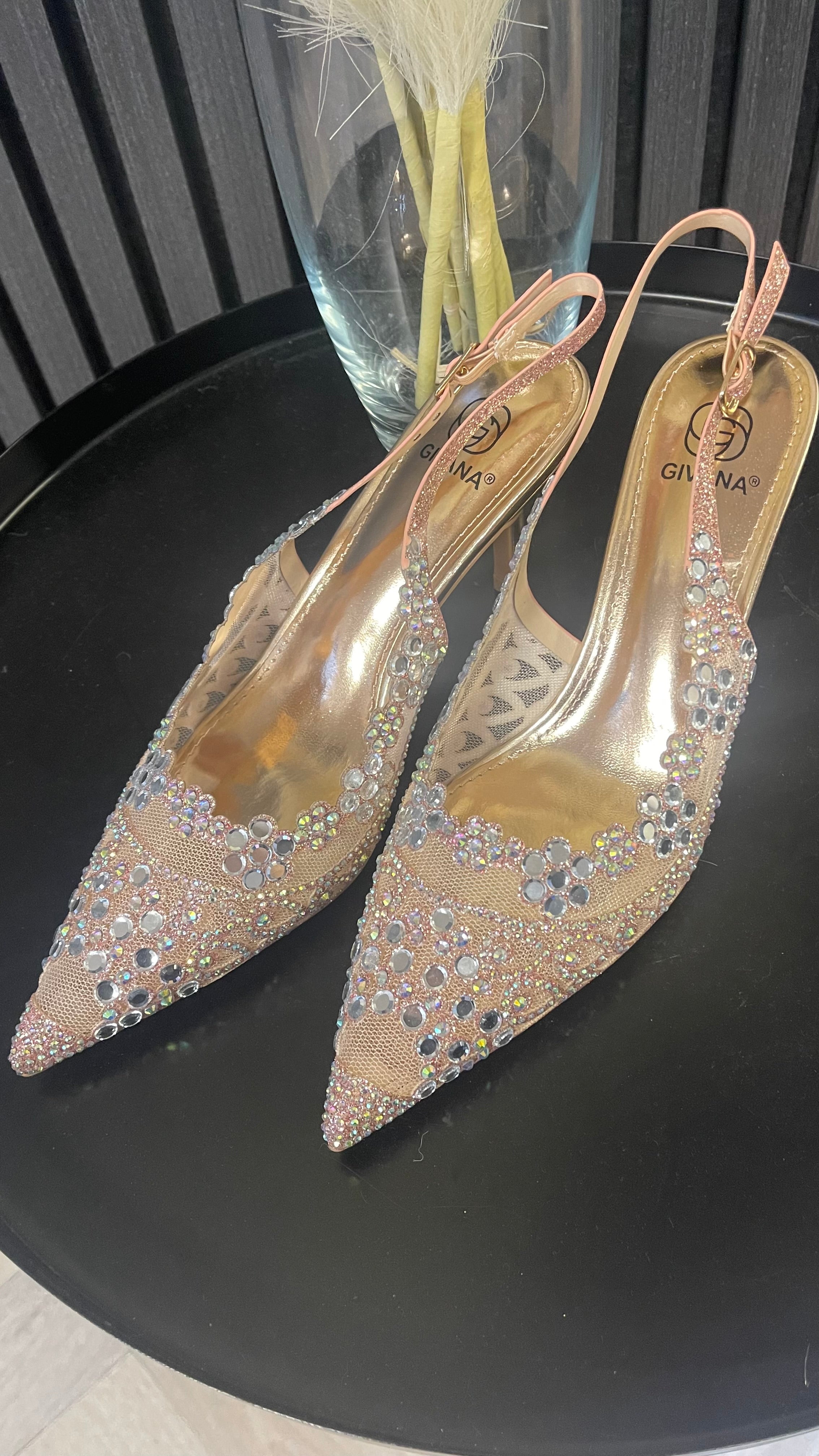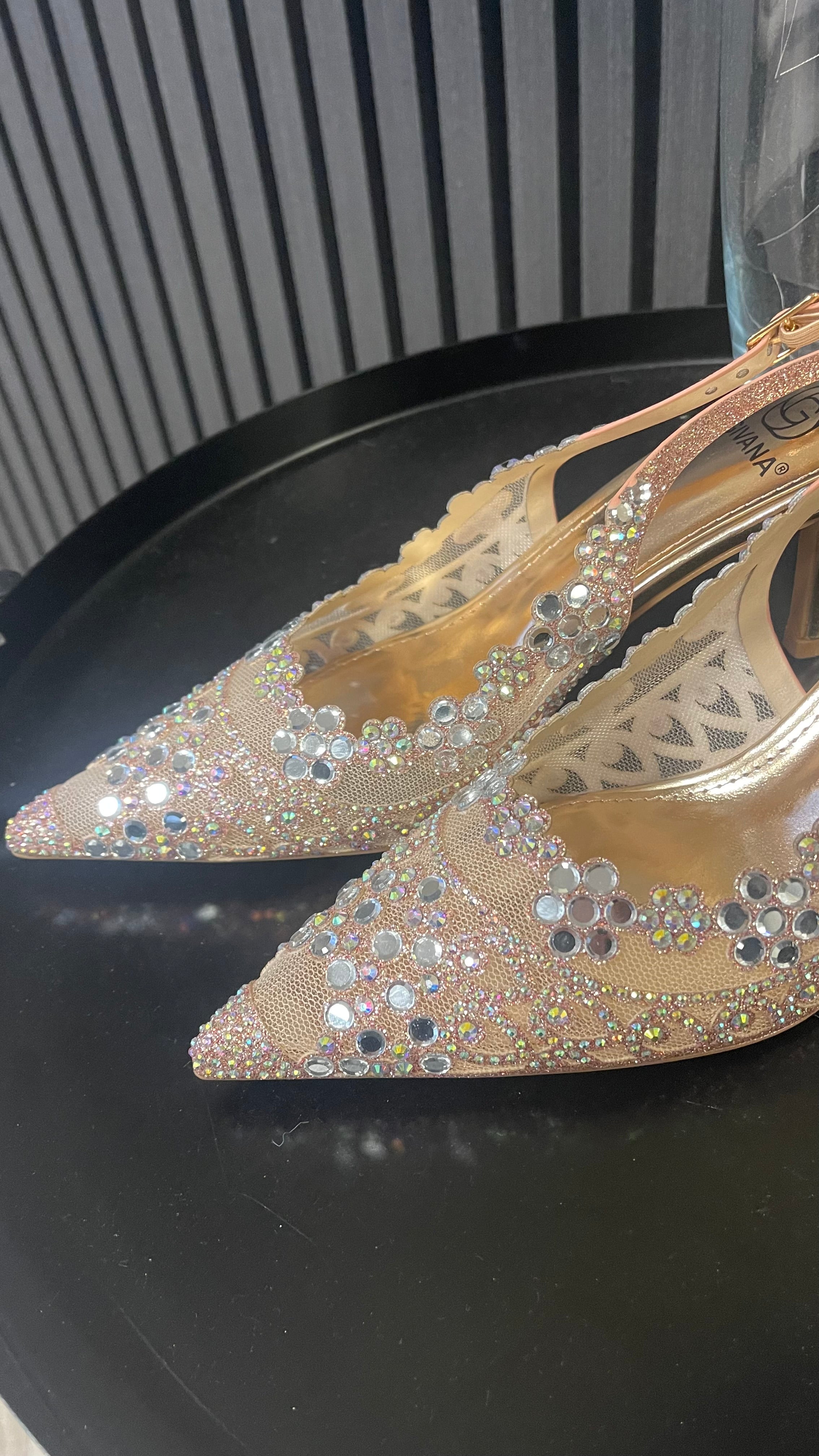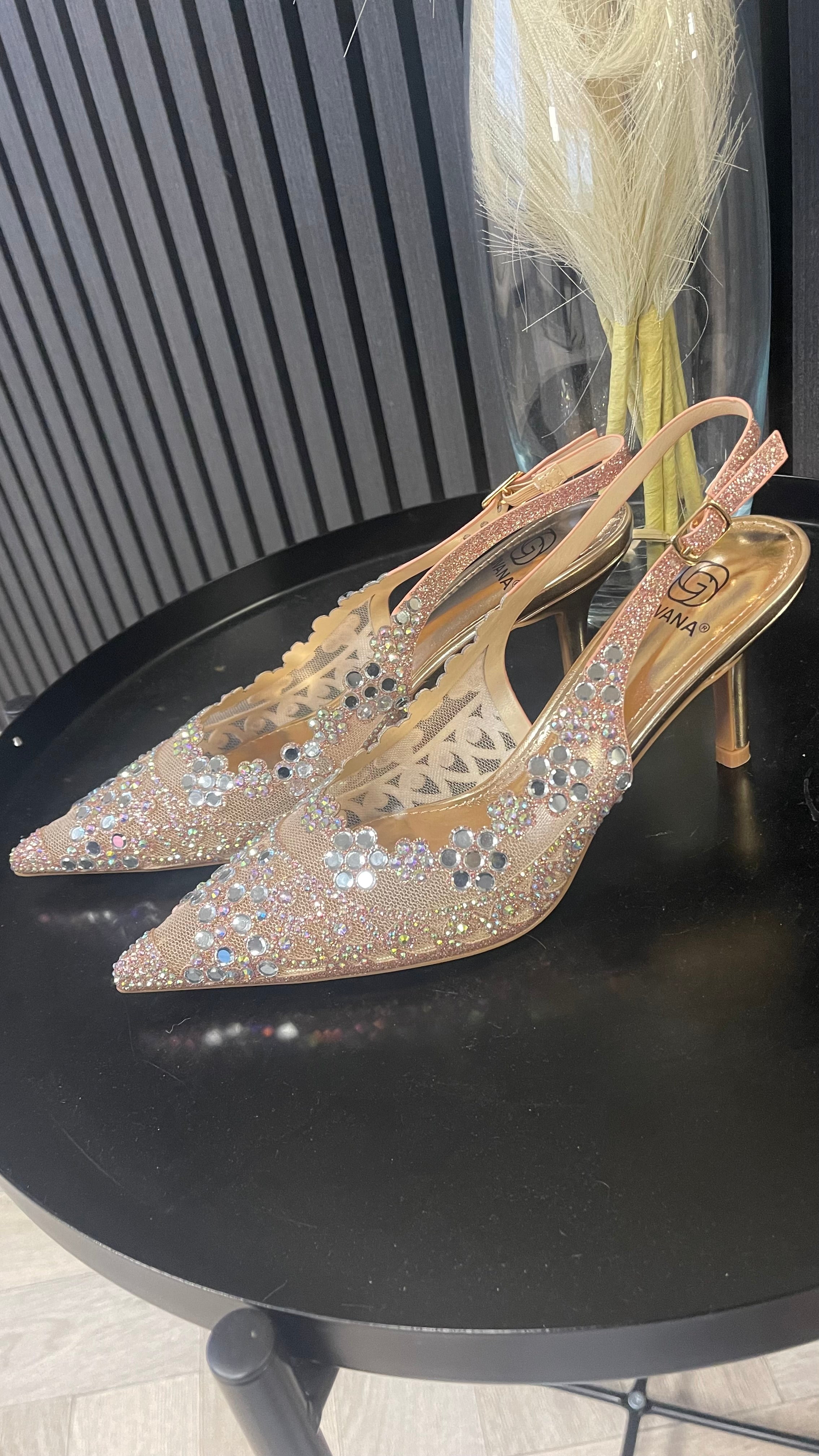 Sinead Champagne Diamante Embellished Slingback Shoes