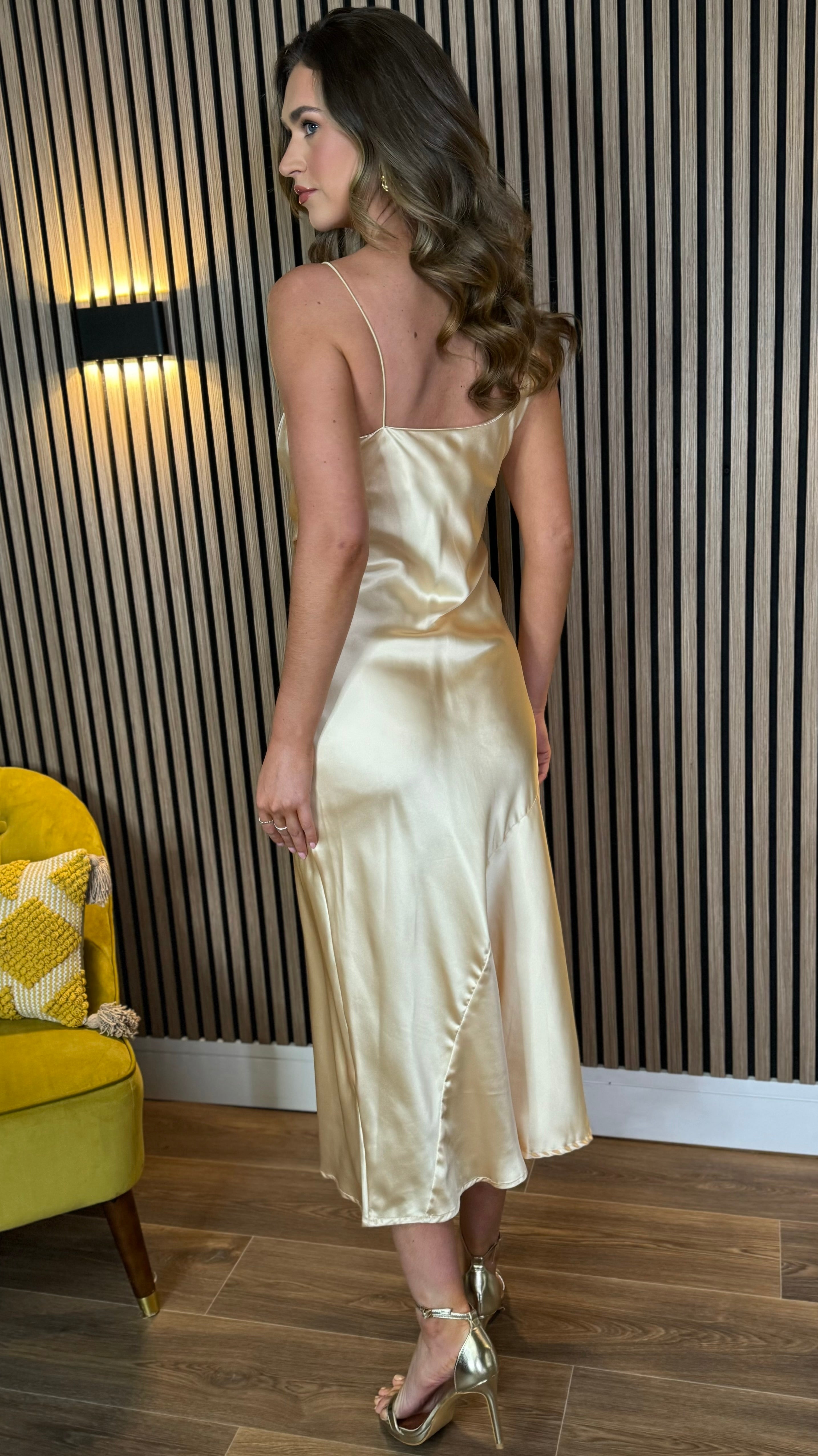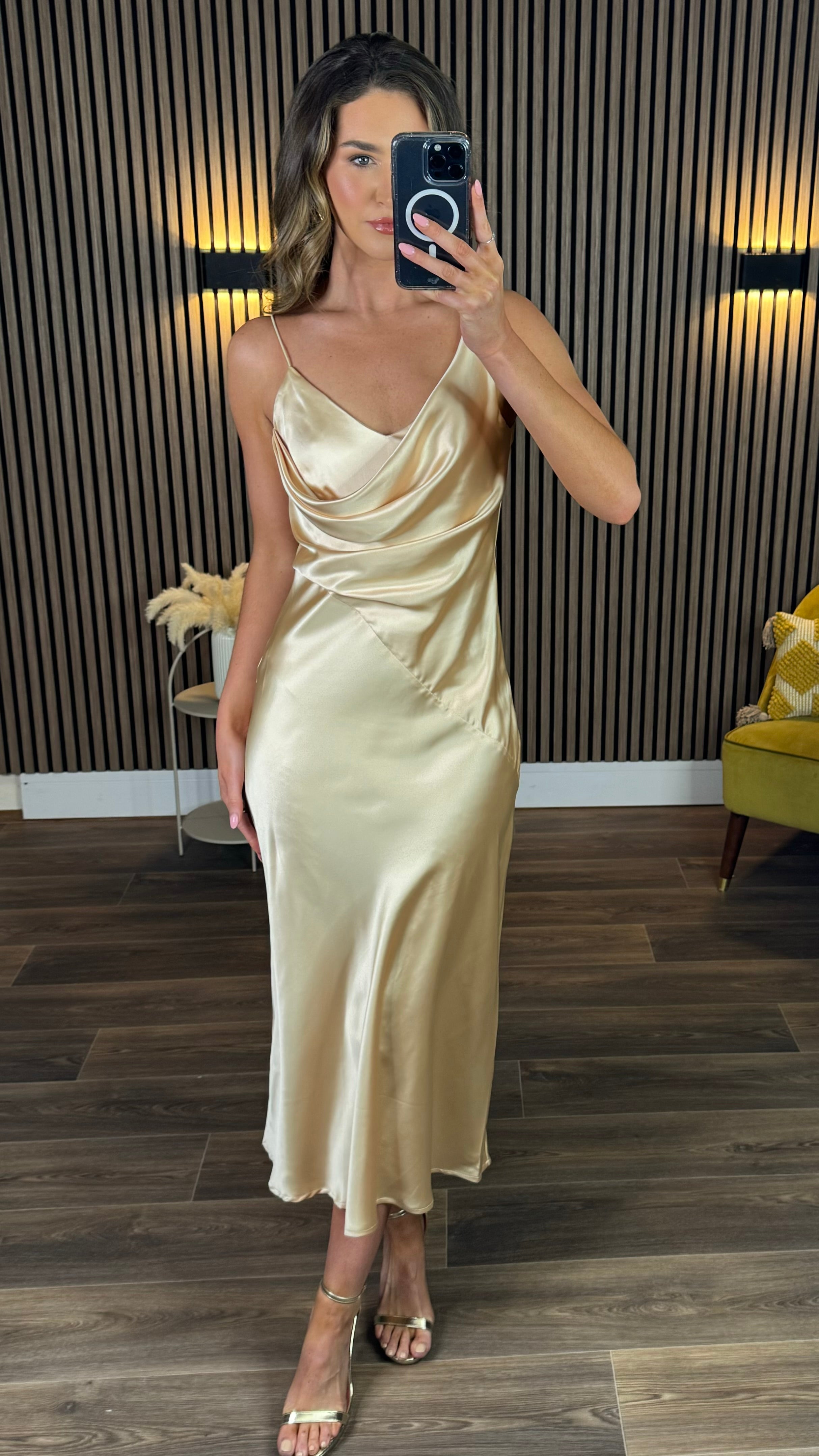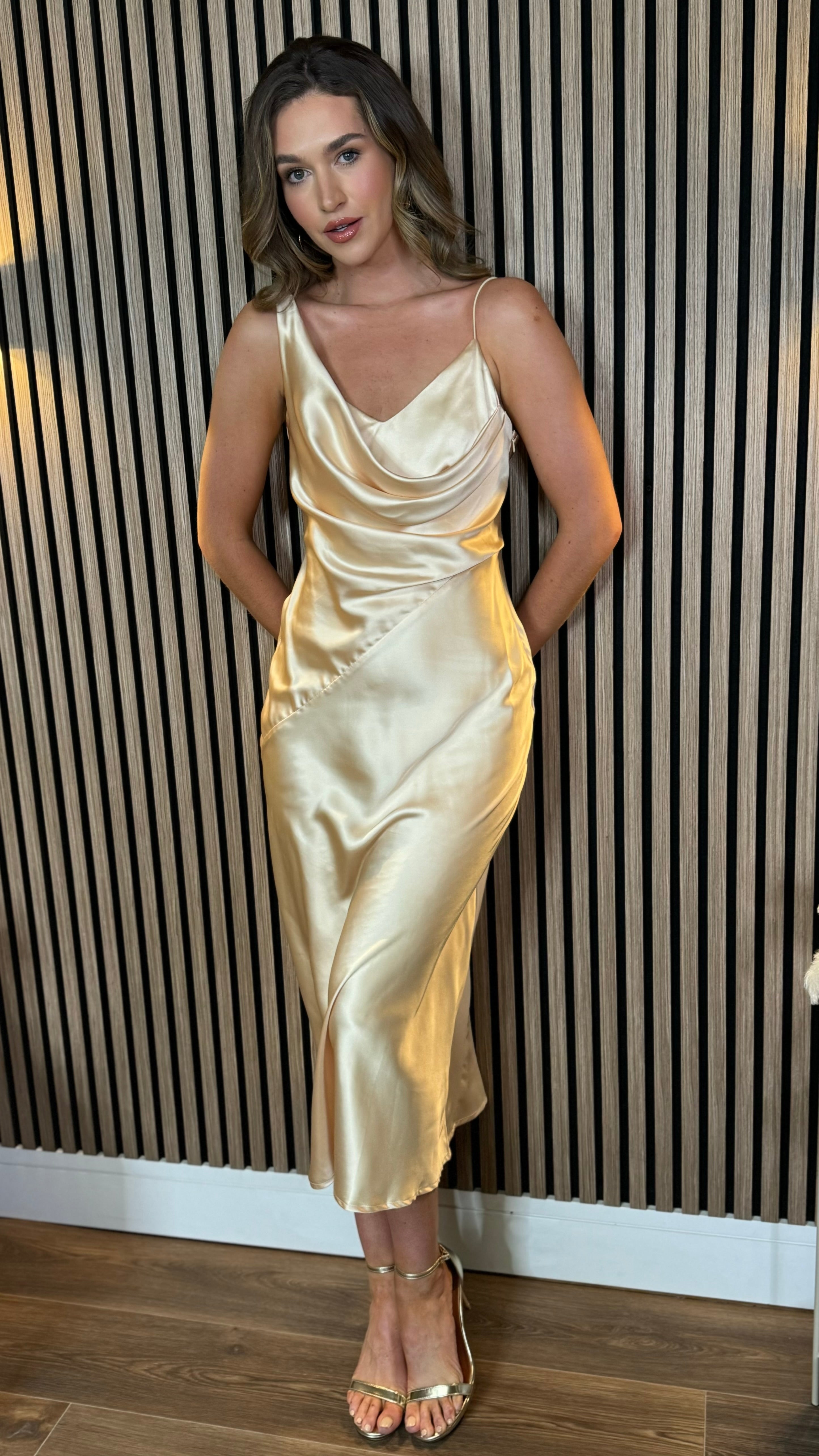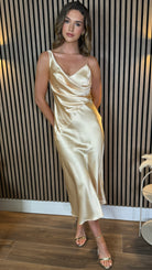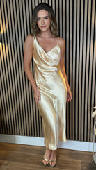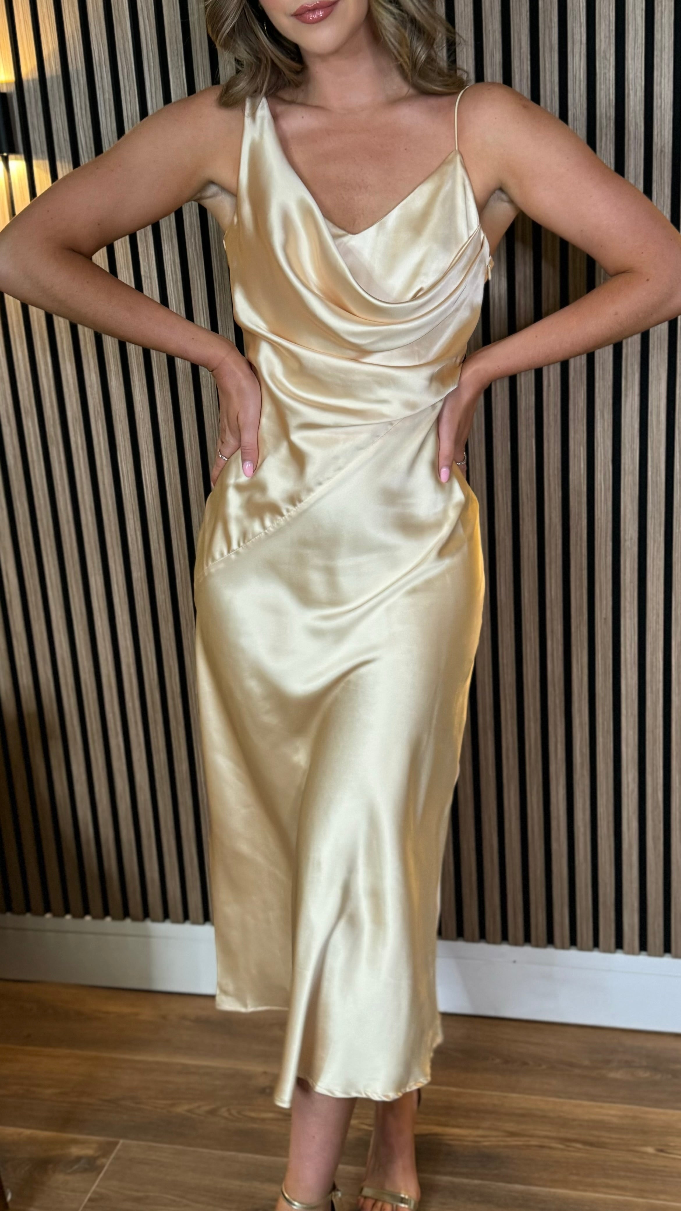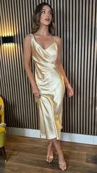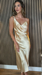 Unleash your playful side with our Vienna Yellow Satin Finish Midi Dress. This bold and vibrant dress, made with a luxurious satin finish, will make a statement at any event. Embrace your unique style and turn heads with Vienna.💛👗