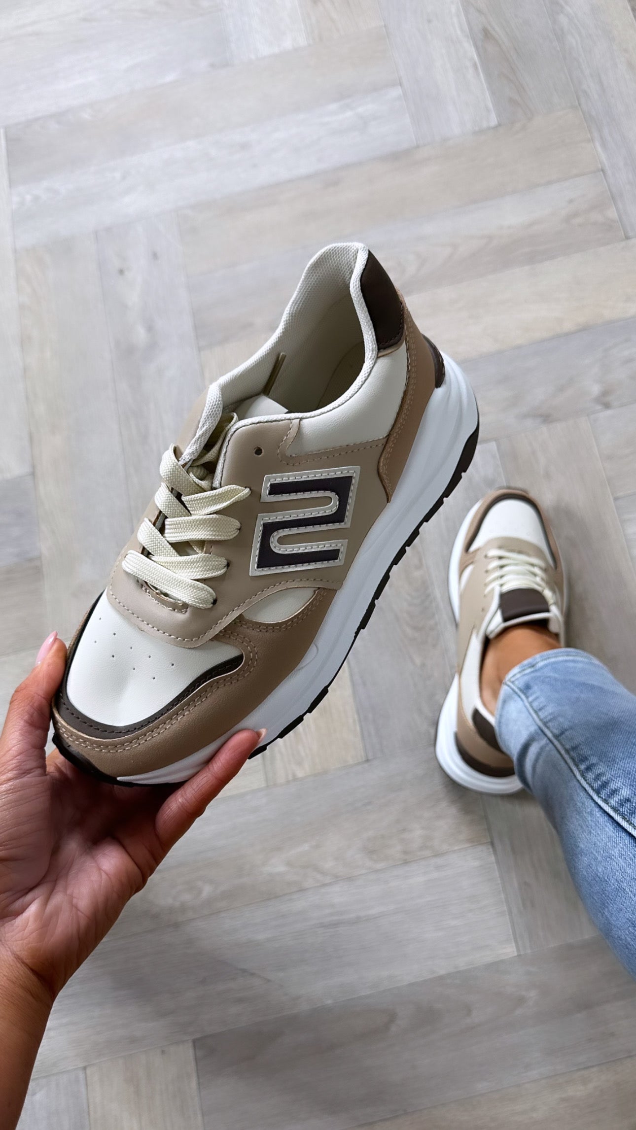 Adia Khaki & Camel Chunky Trainers