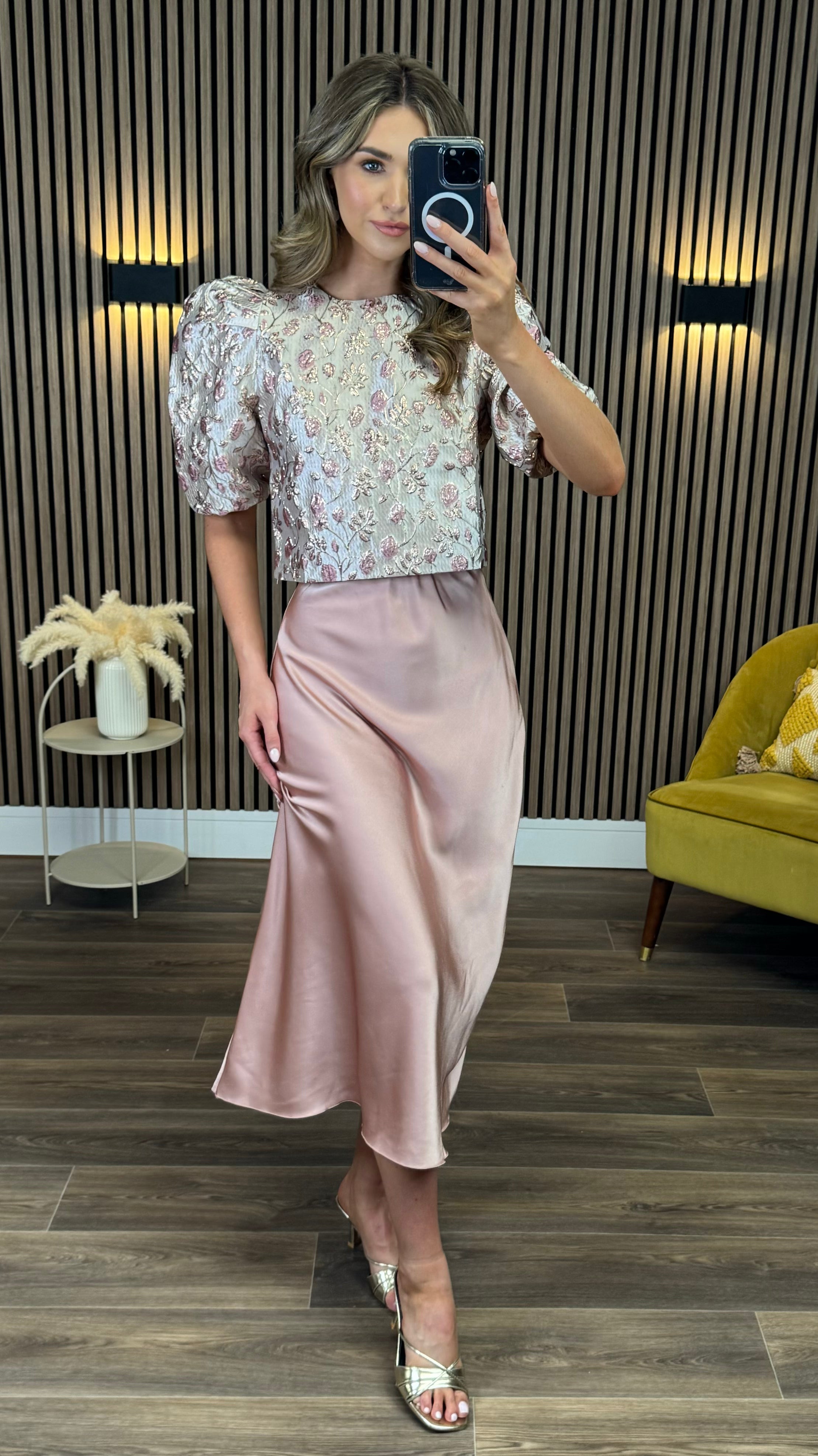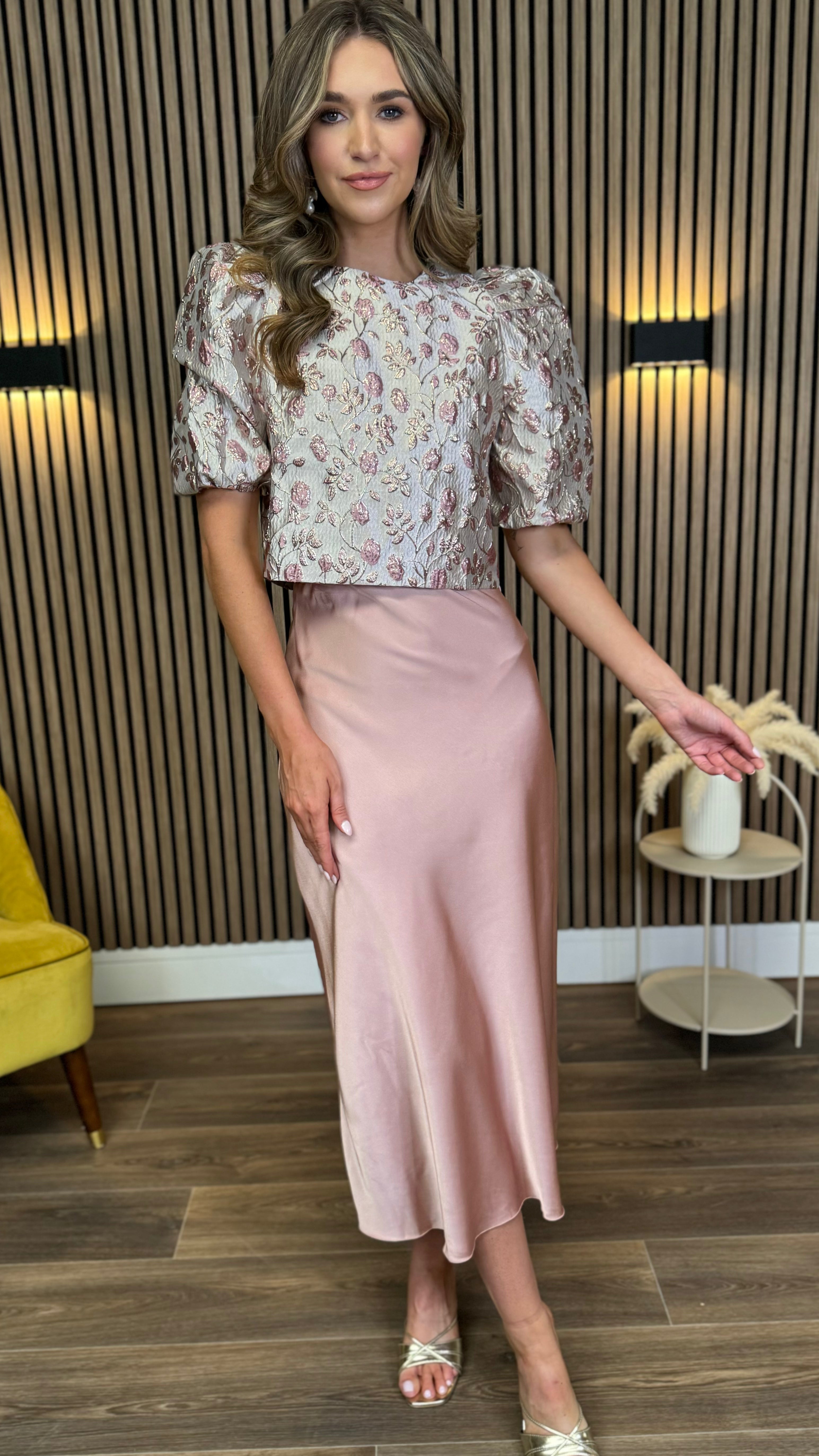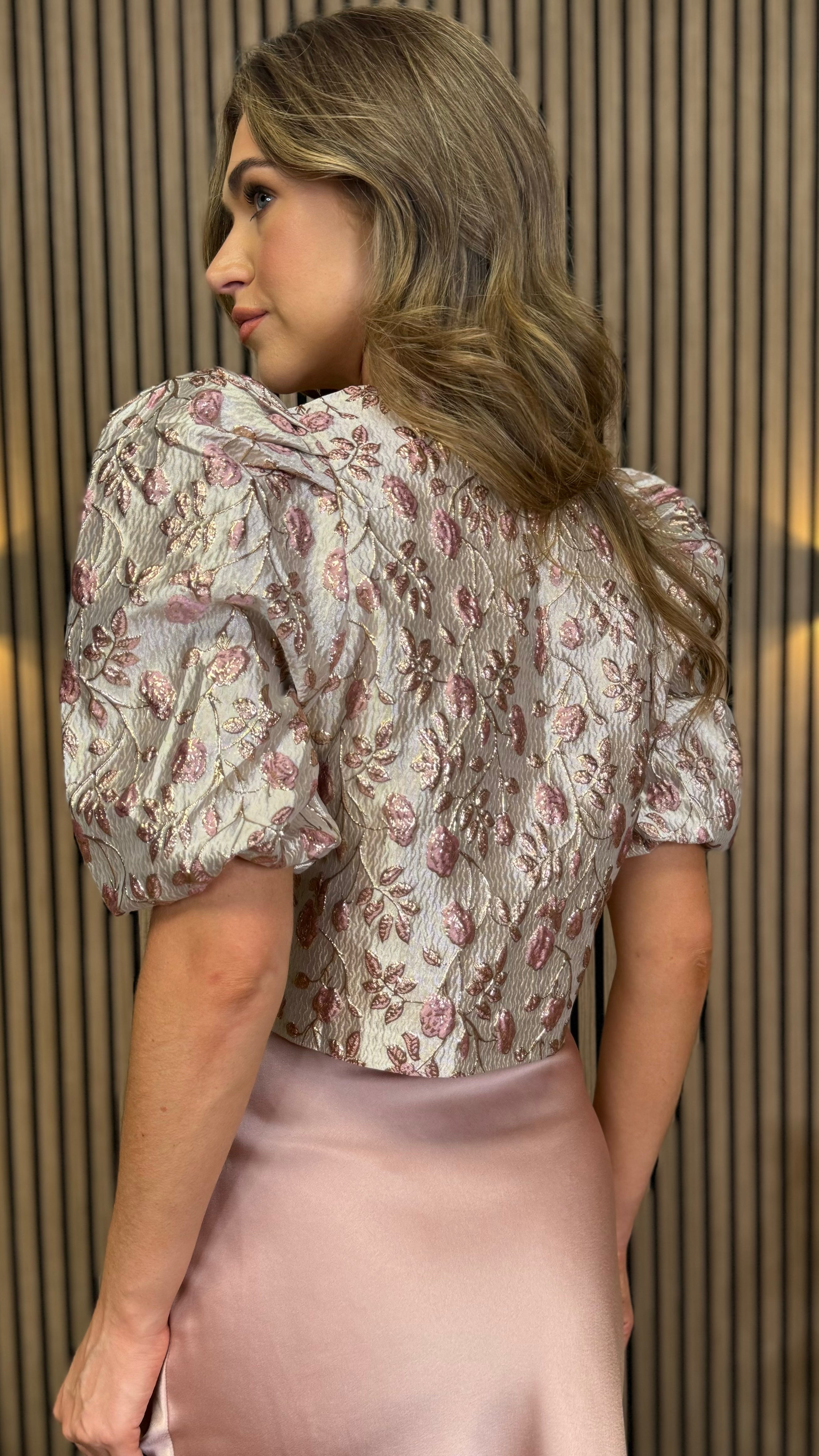 Aimee Rose & Beige Floral Printed Puff Sleeve Top