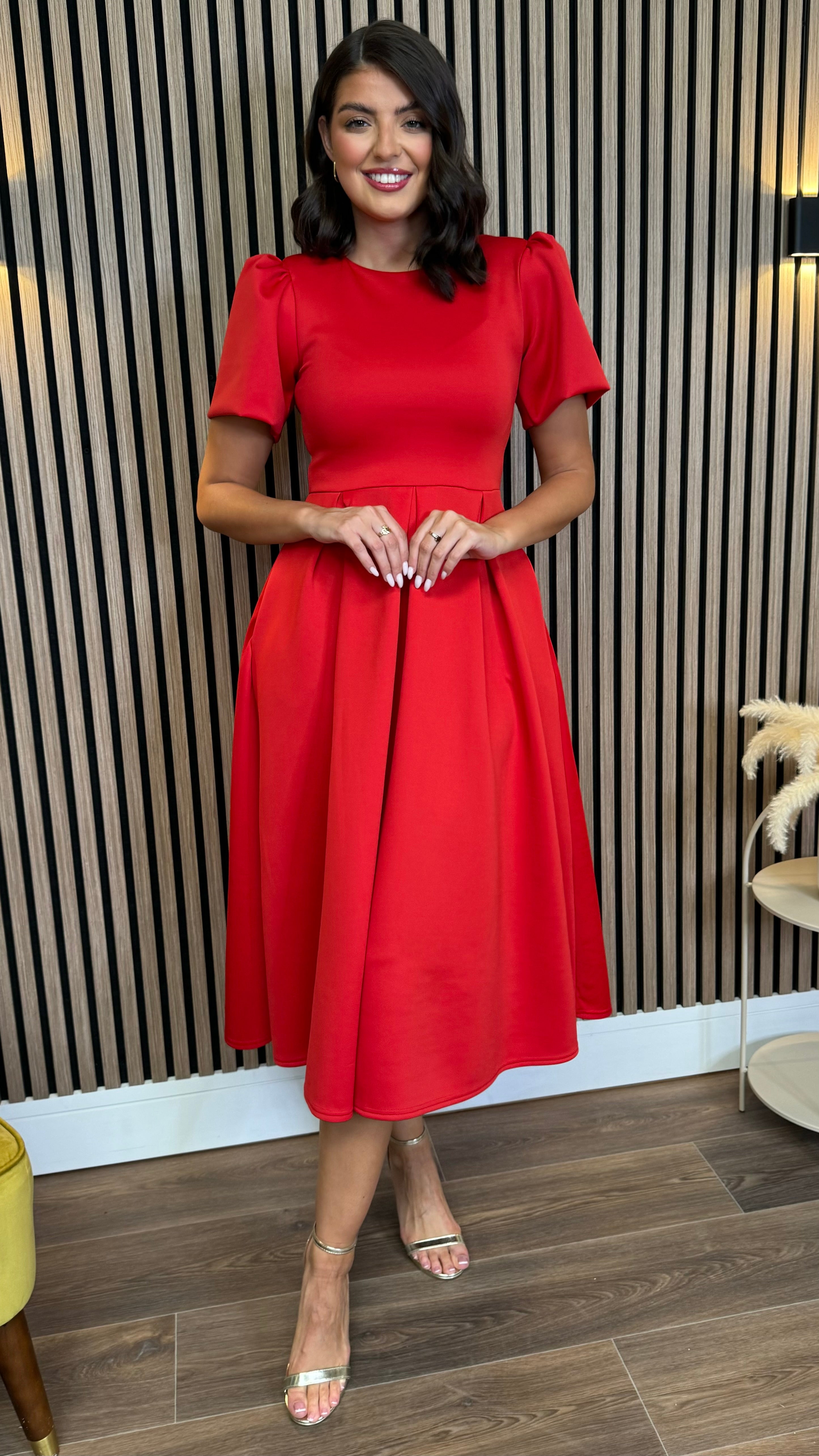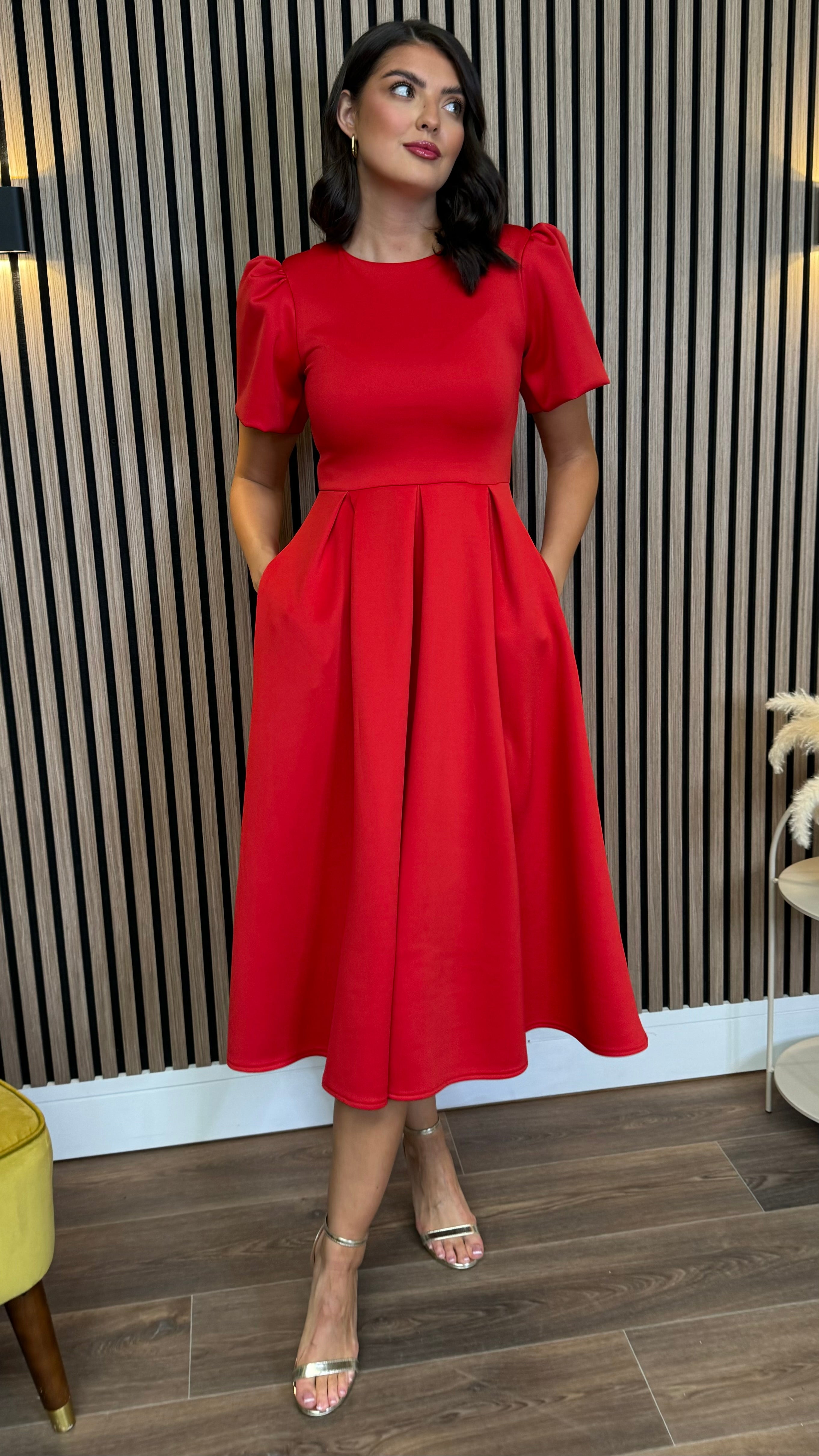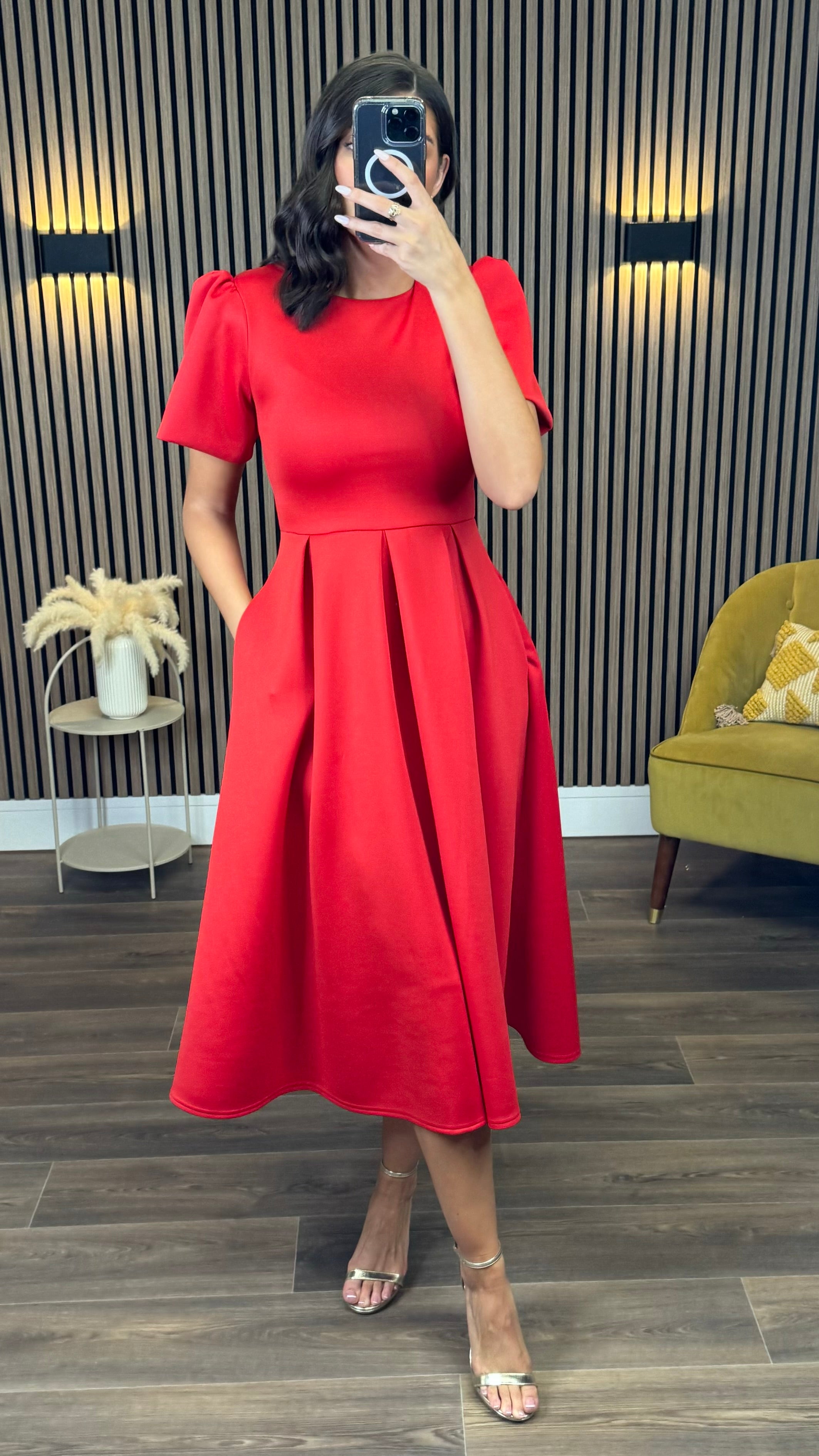 The Alana Red Short Sleeve Pocketed Midi Dress combines timeless elegance with modern practicality. Its flattering midi length and discreet pockets make it perfect for sophisticated days and stylish evenings. The vibrant red shade adds a confident, refined touch to your wardrobe. 🔴✨