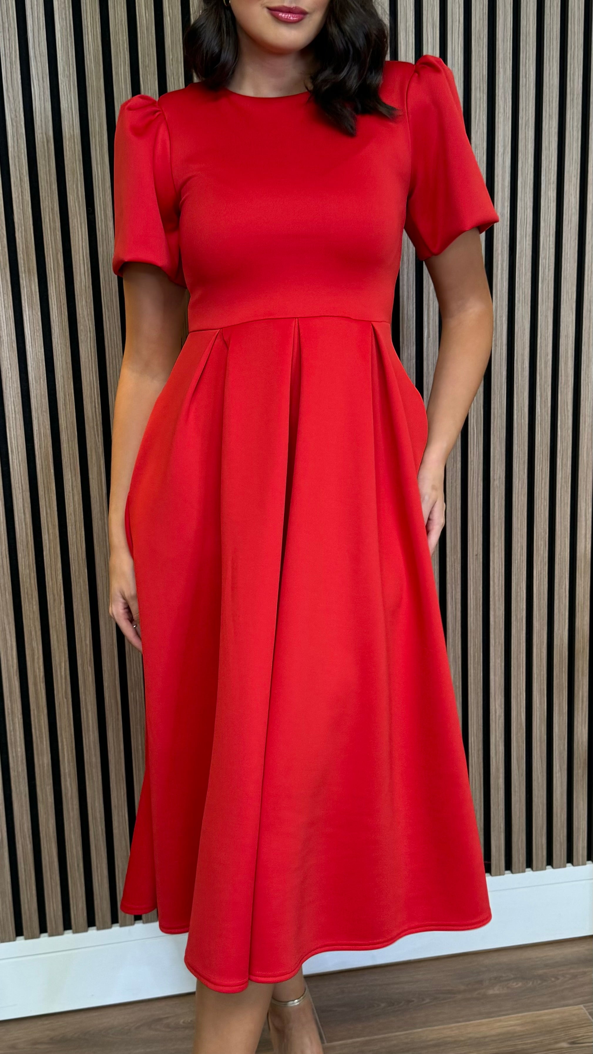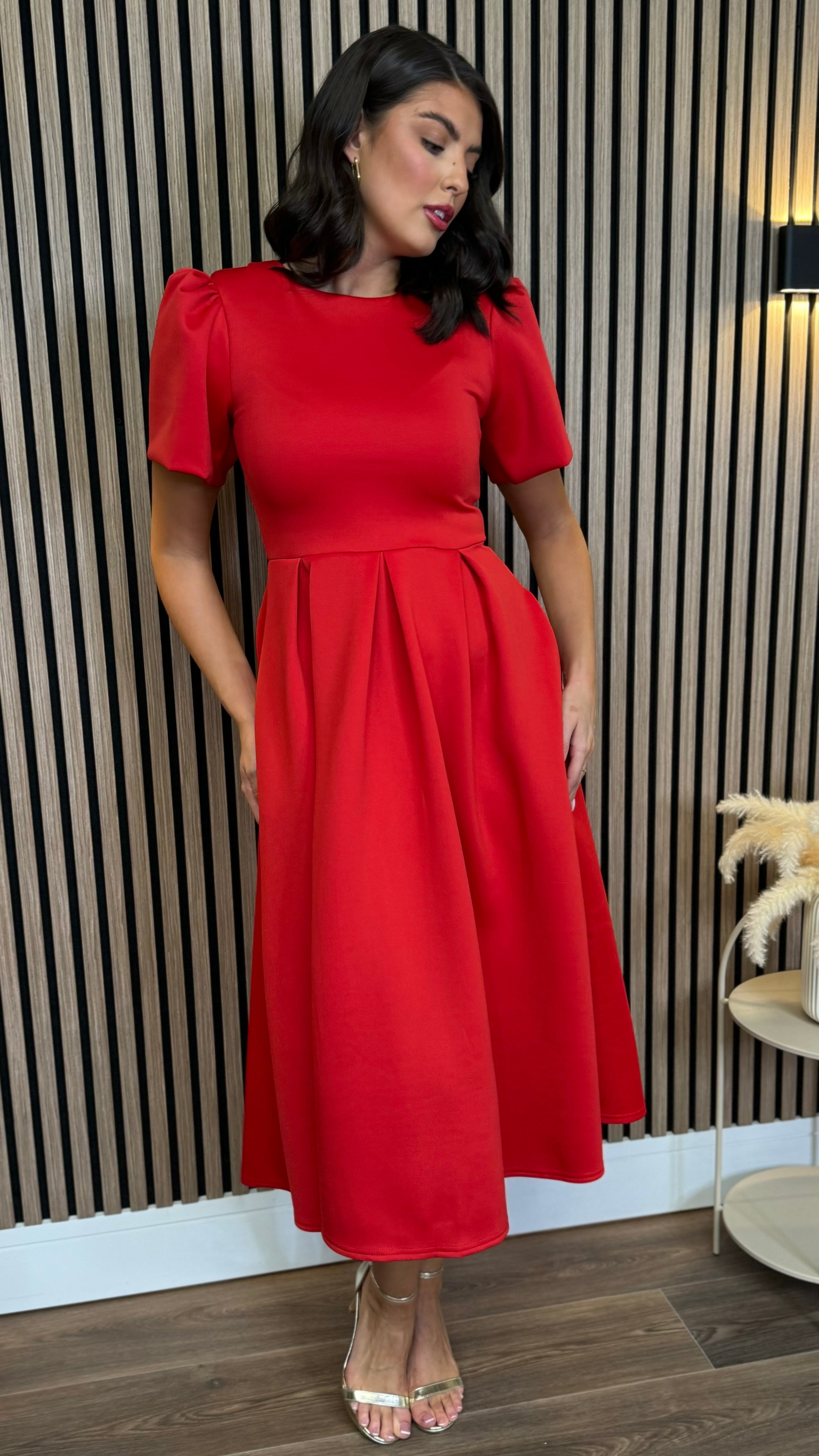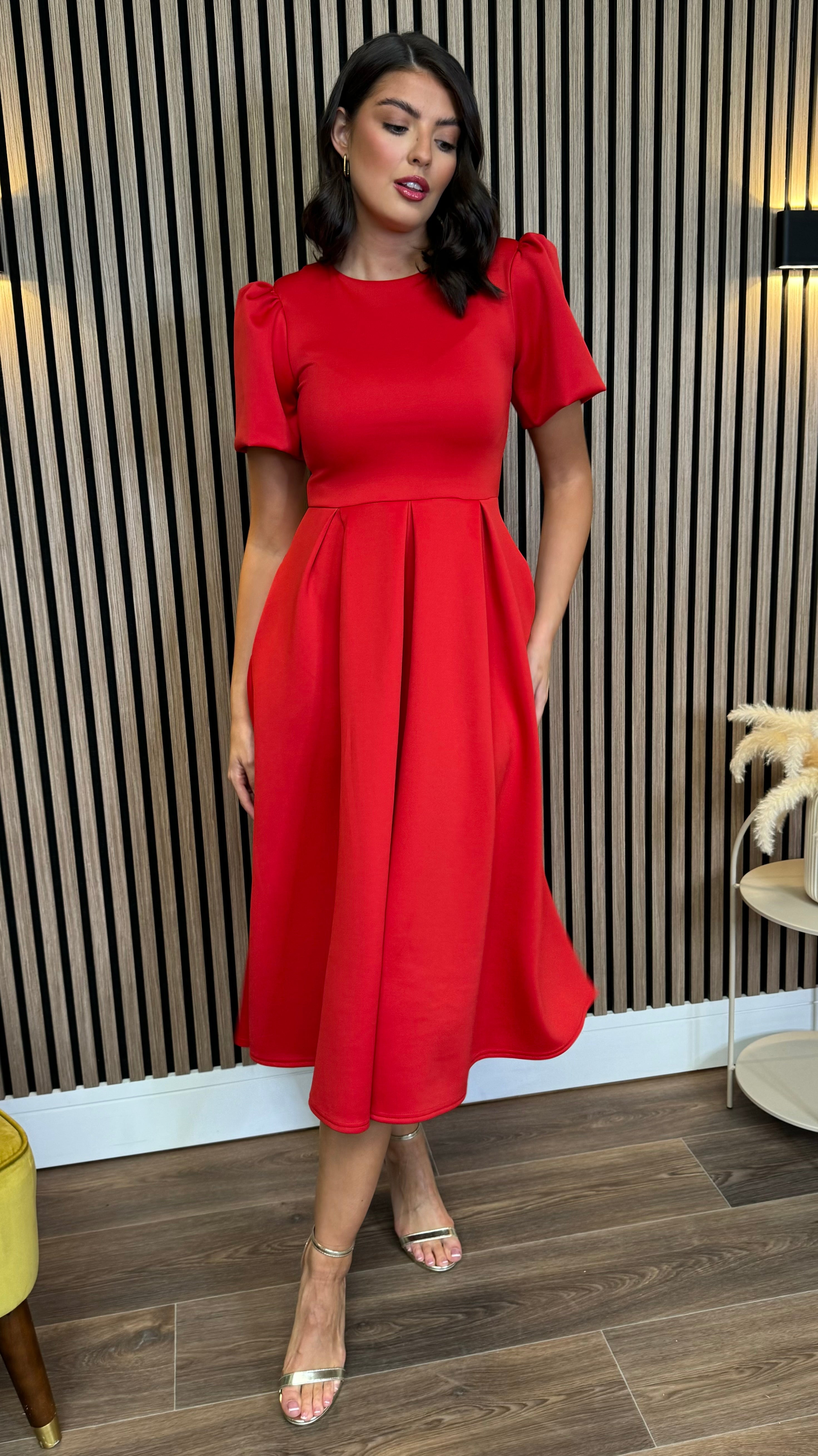 The Alana Red Short Sleeve Pocketed Midi Dress combines timeless elegance with modern practicality. Its flattering midi length and discreet pockets make it perfect for sophisticated days and stylish evenings. The vibrant red shade adds a confident, refined touch to your wardrobe. 🔴✨