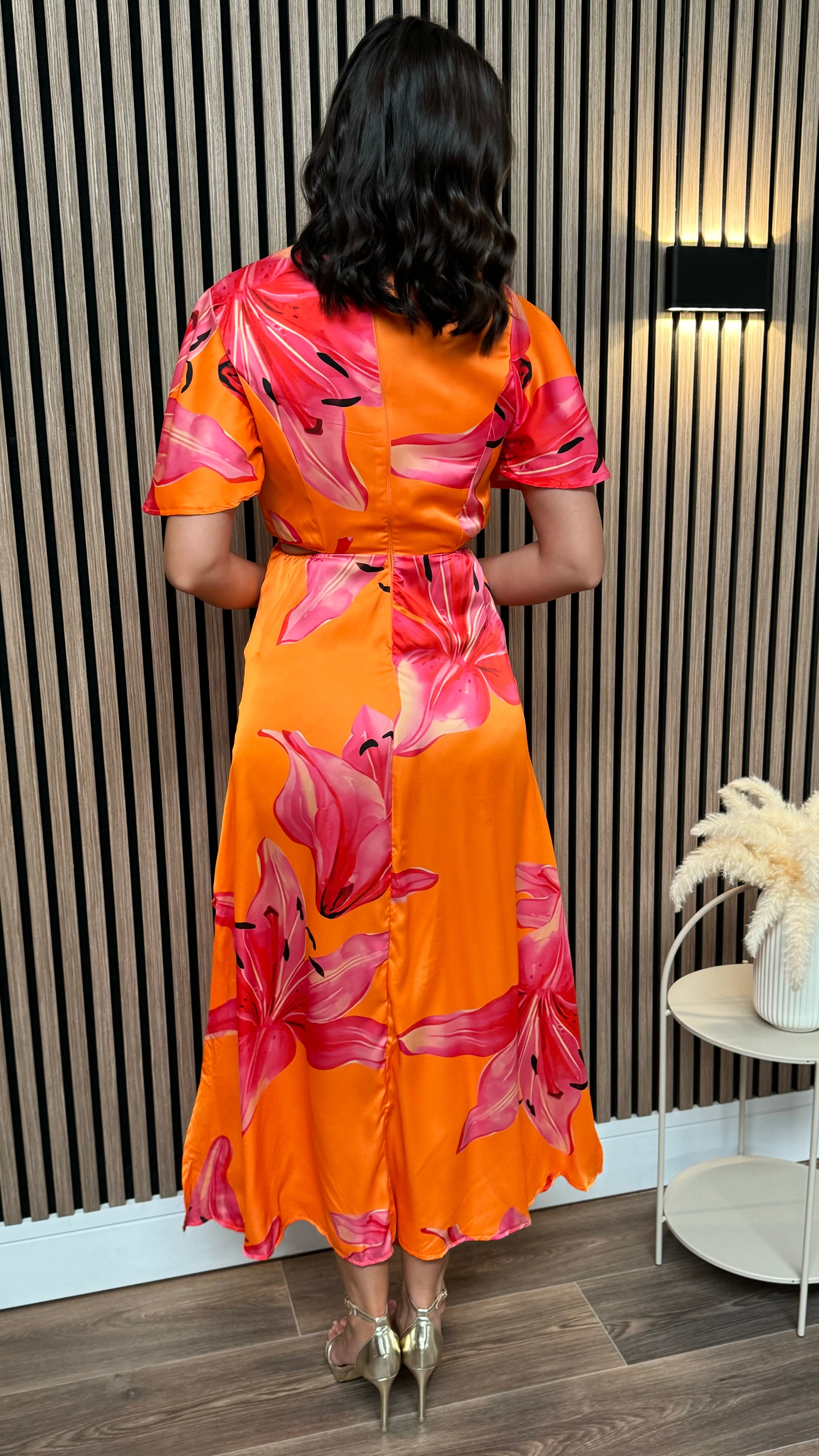Alexia Orange & Pink Cut Out Knot Detail Midi Dress