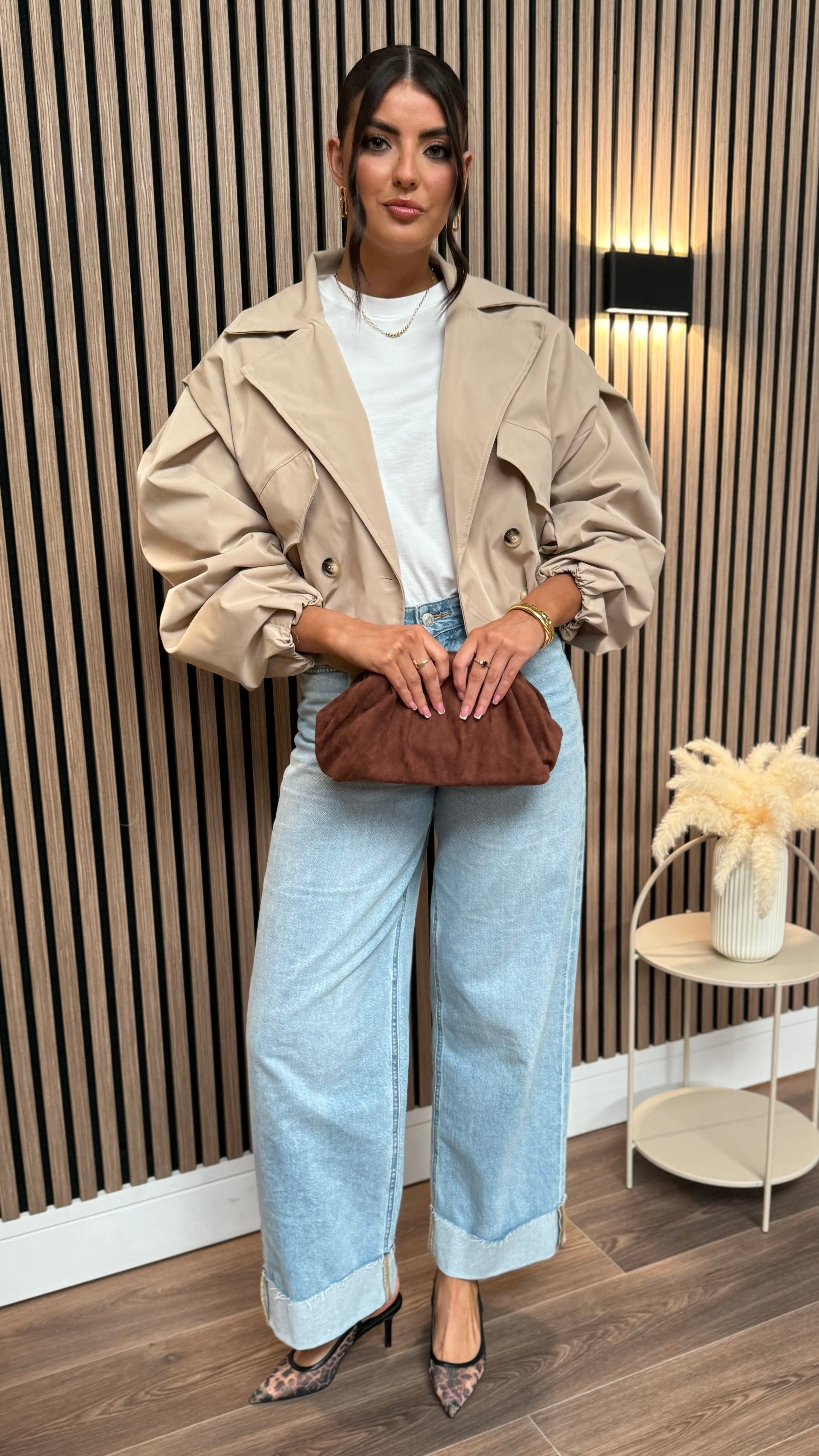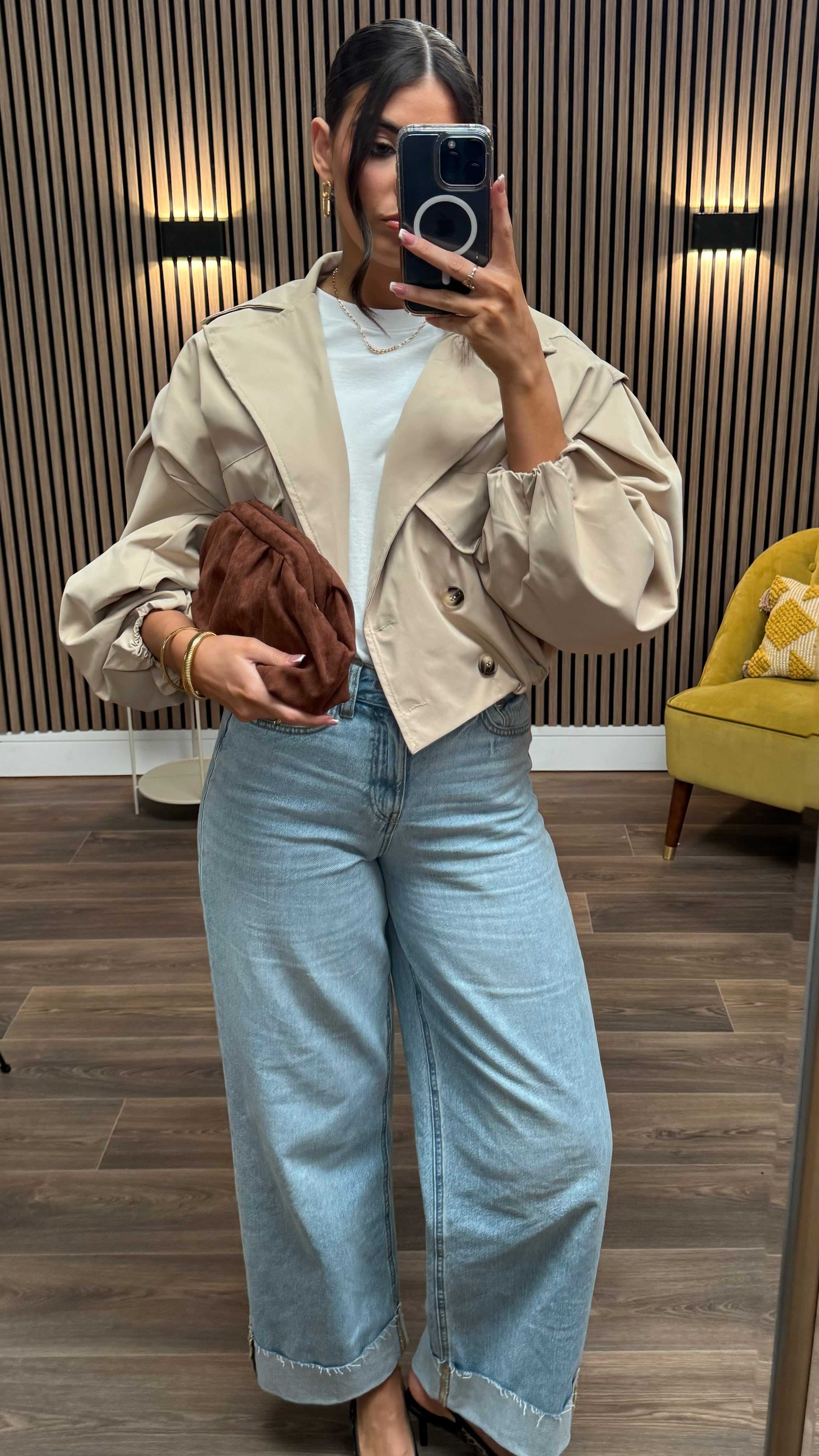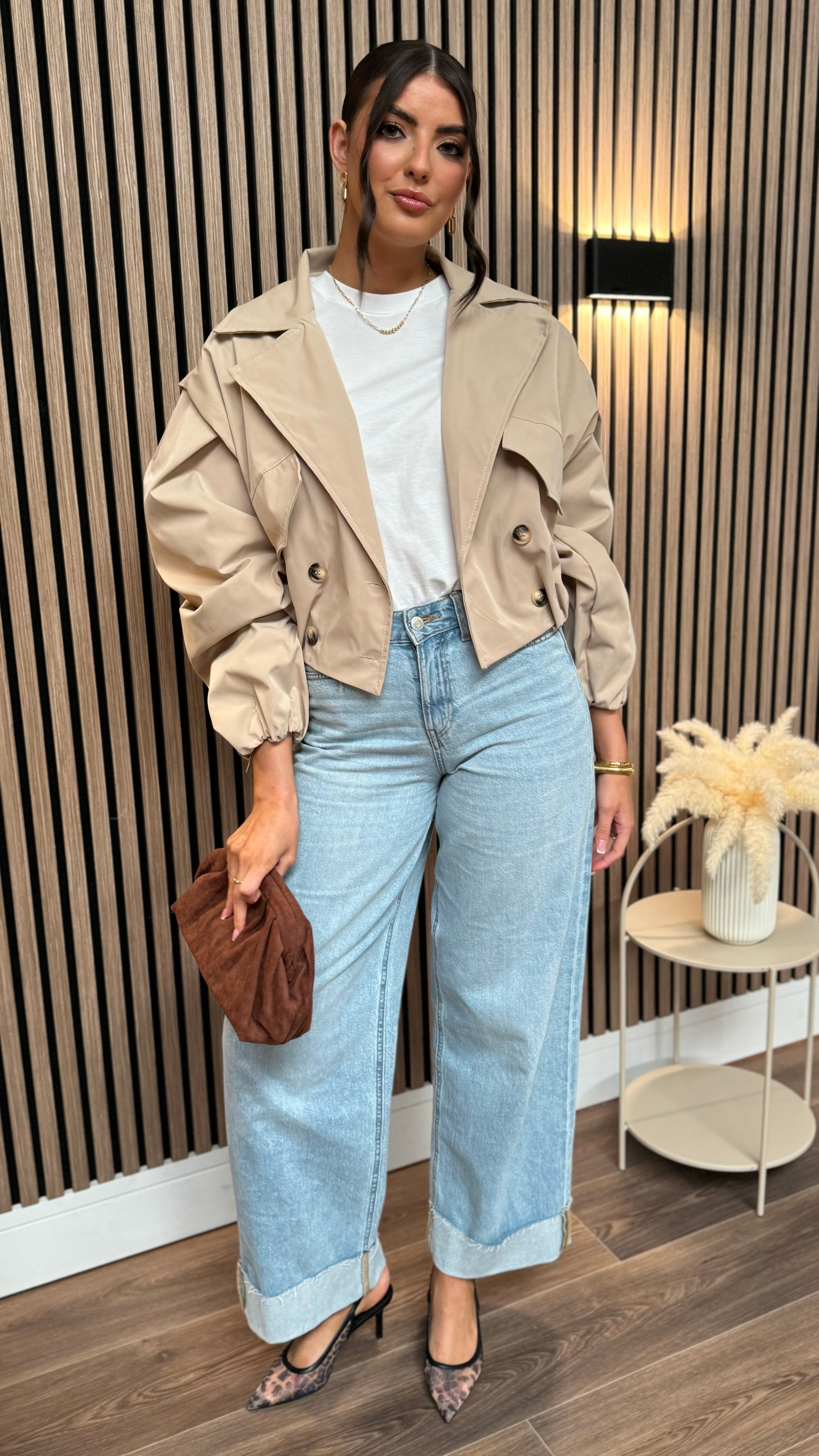 Look chic and playful with the Alyssa Beige Collared Jacket! This stylish jacket features button detailing, wide sleeves, and an elasticated waist and cuffs for a comfortable and flattering fit. Perfect for adding a pop of fun to any outfit. ✨🧥 #FashionForward