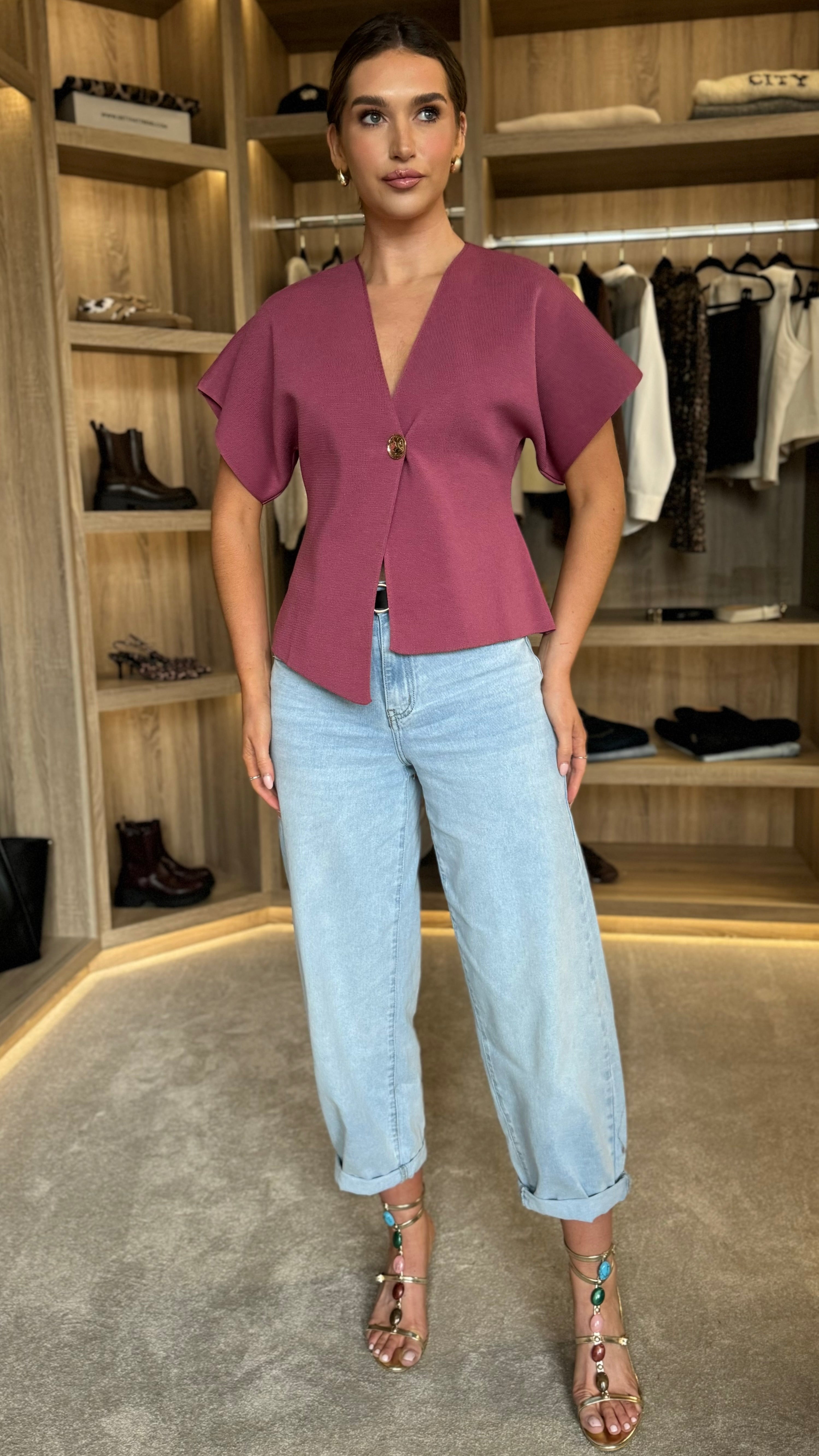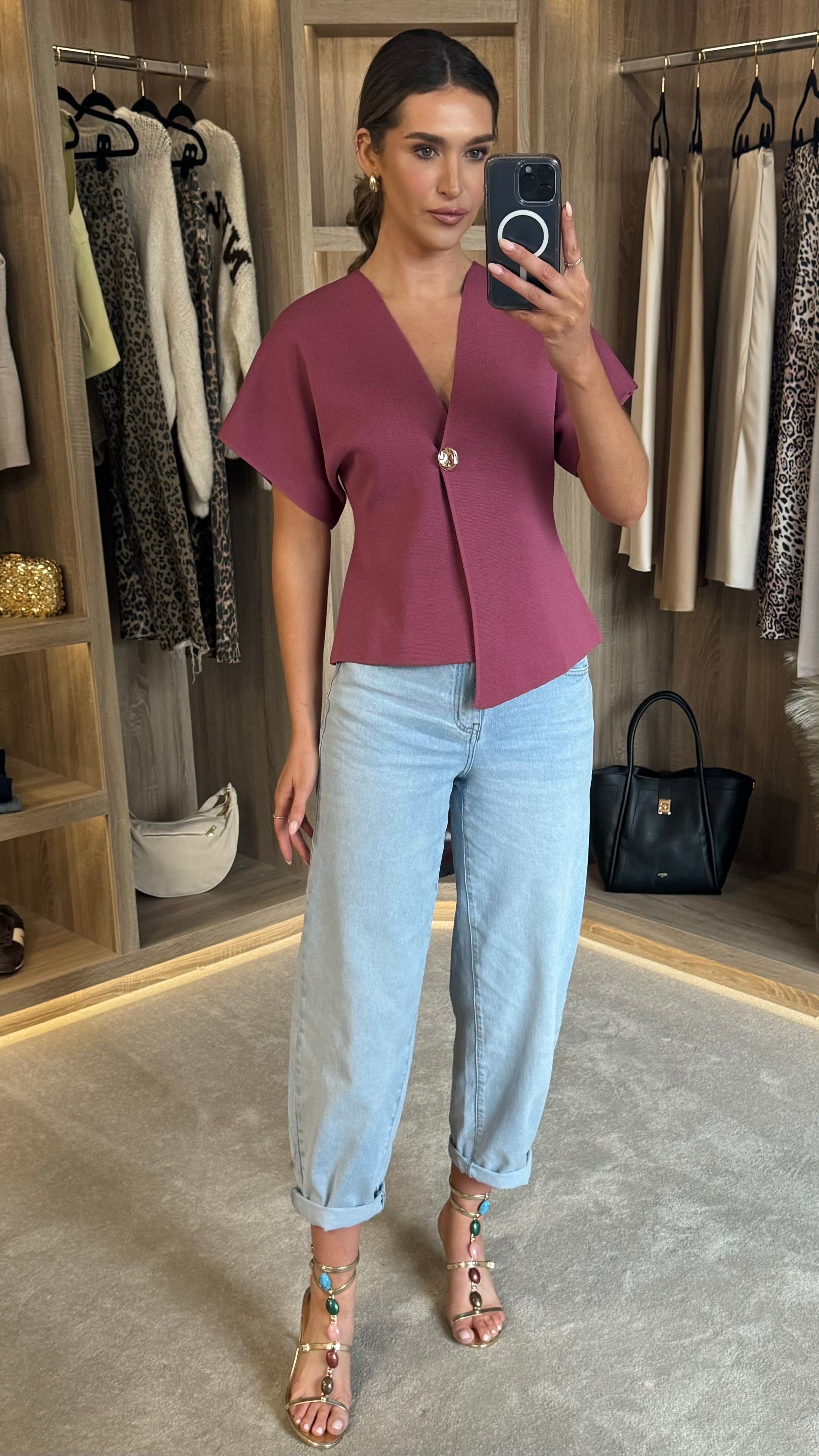 Alyssa Plum Gold Button Kimono Cardigan (PRE-ORDER)