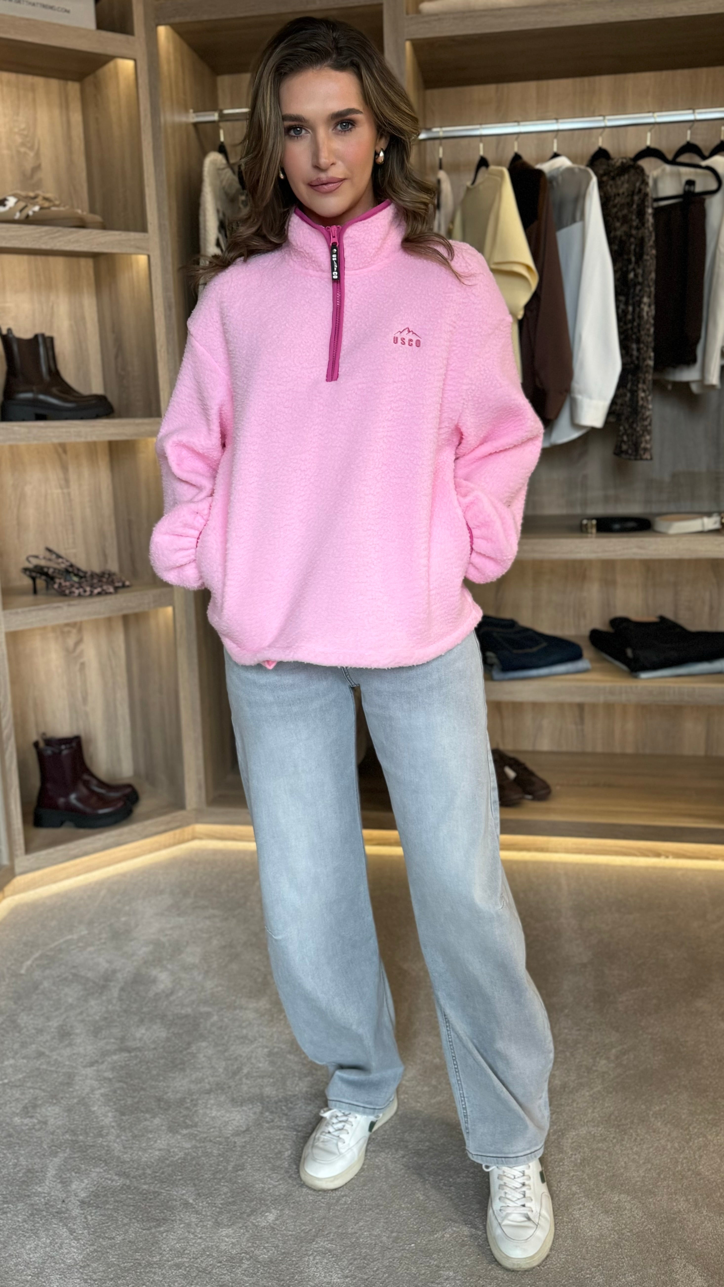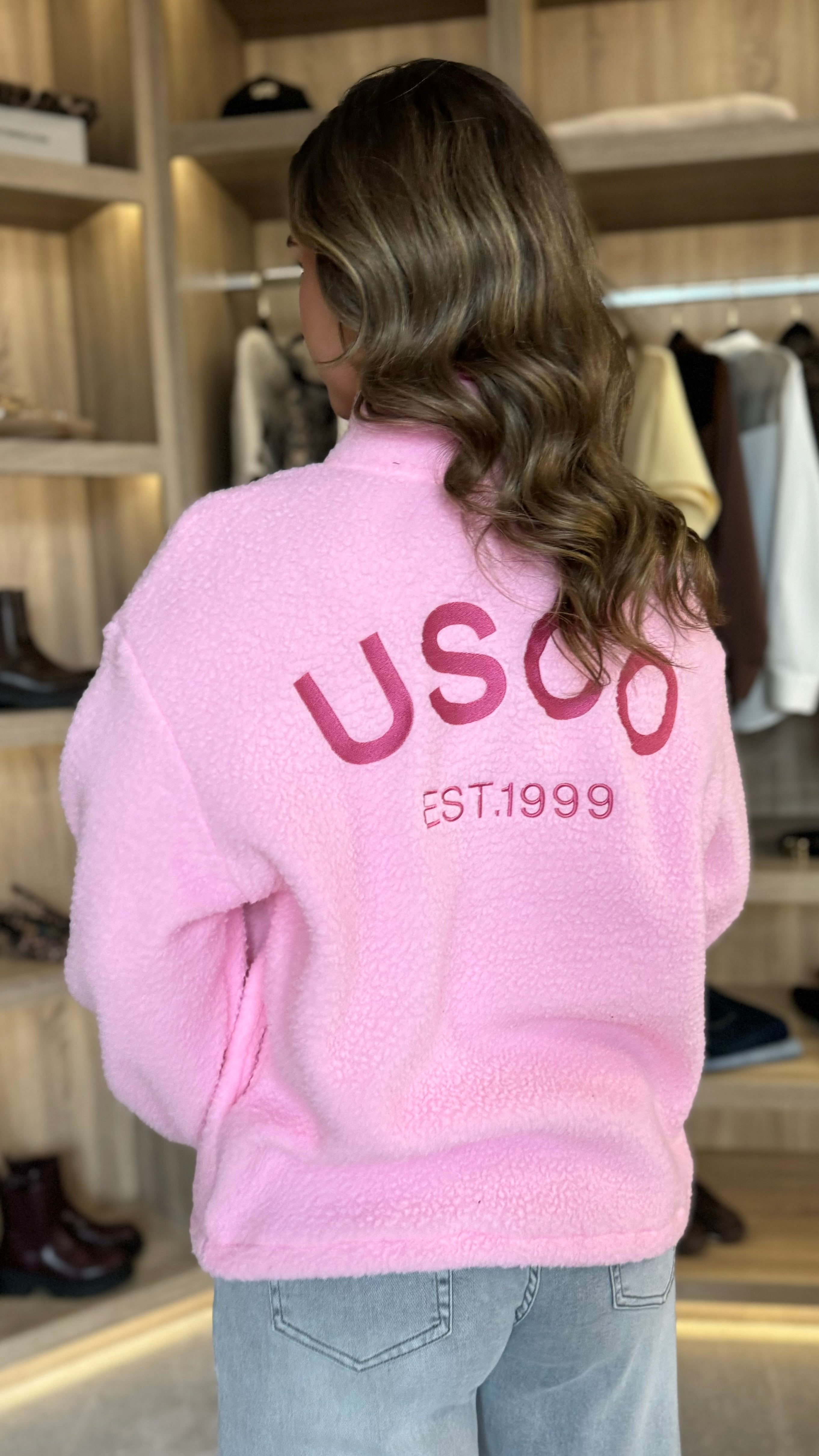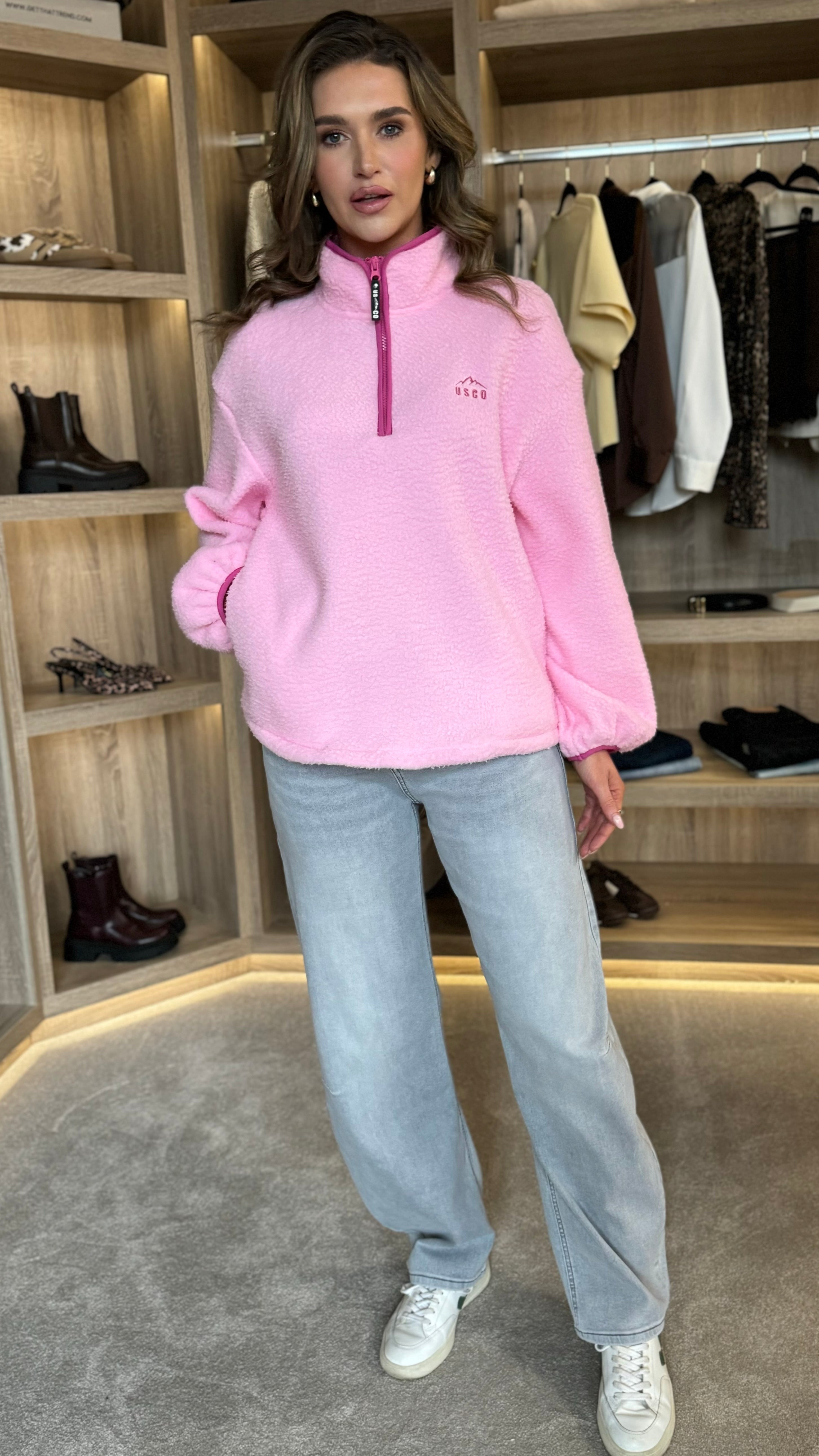 Cosy up in effortless style with the Contrast Detail 1/4 Zip Fleece. Crafted from soft borg material, this relaxed layer features signature stripes and a practical quarter-zip for easy layering. The fresh pink hue pairs beautifully with everything in your wardrobe, while USCO branding adds that premium touch. Perfect for weekend lounging or throwing over your favourite outfit when you need an extra cuddle of warmth.