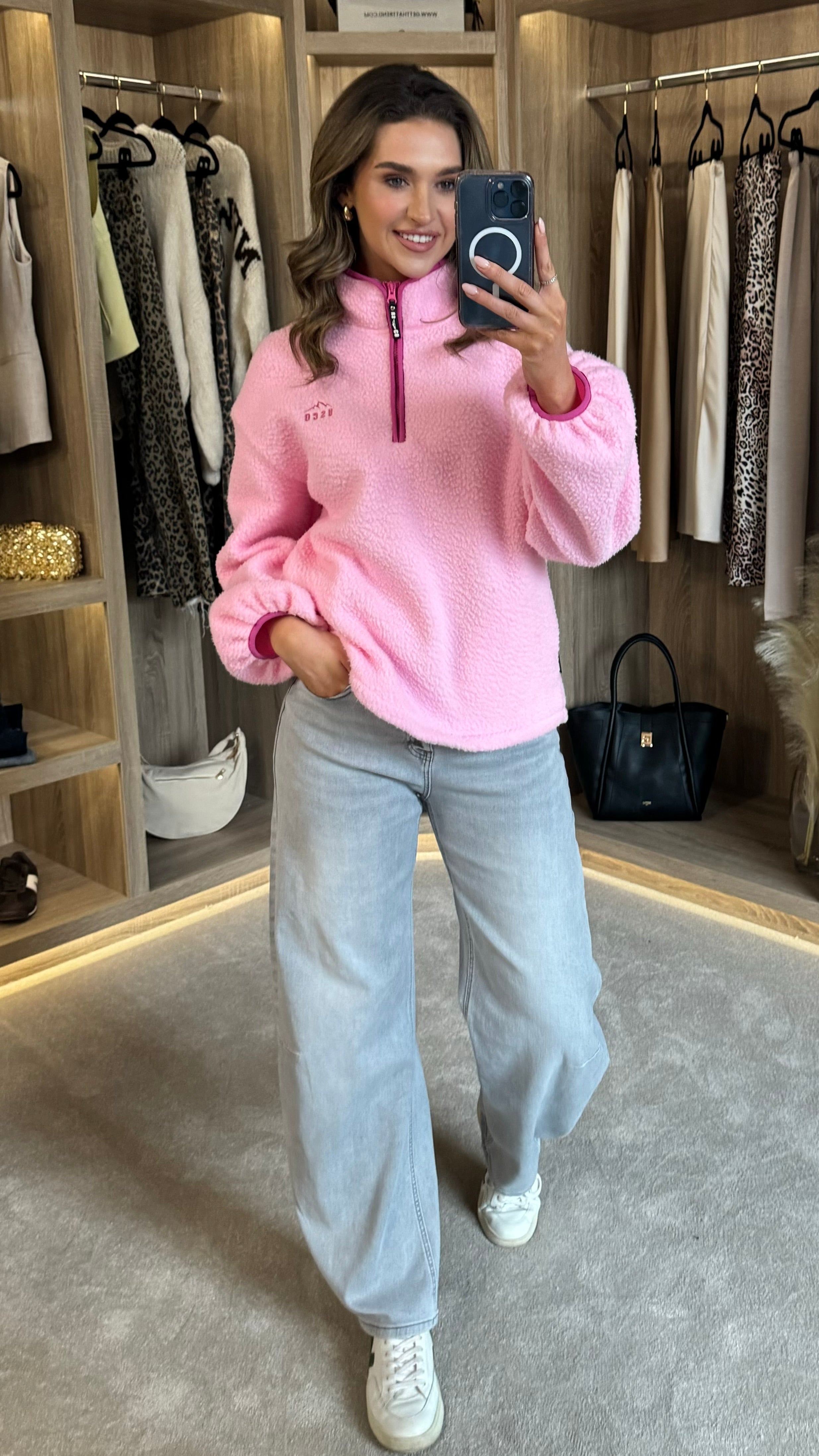 Amora Pink Contrast Design 1/4 Zip Fleece