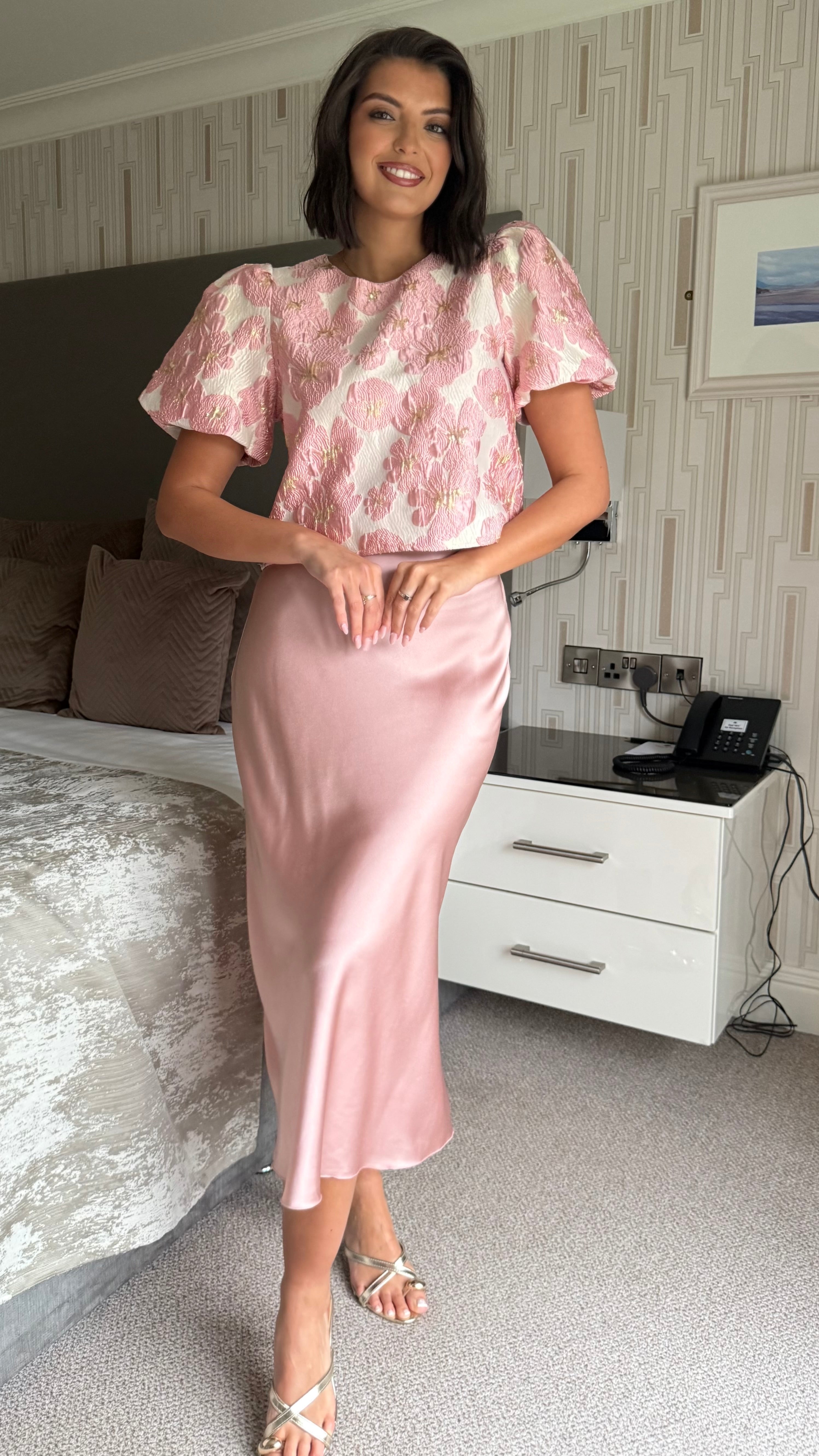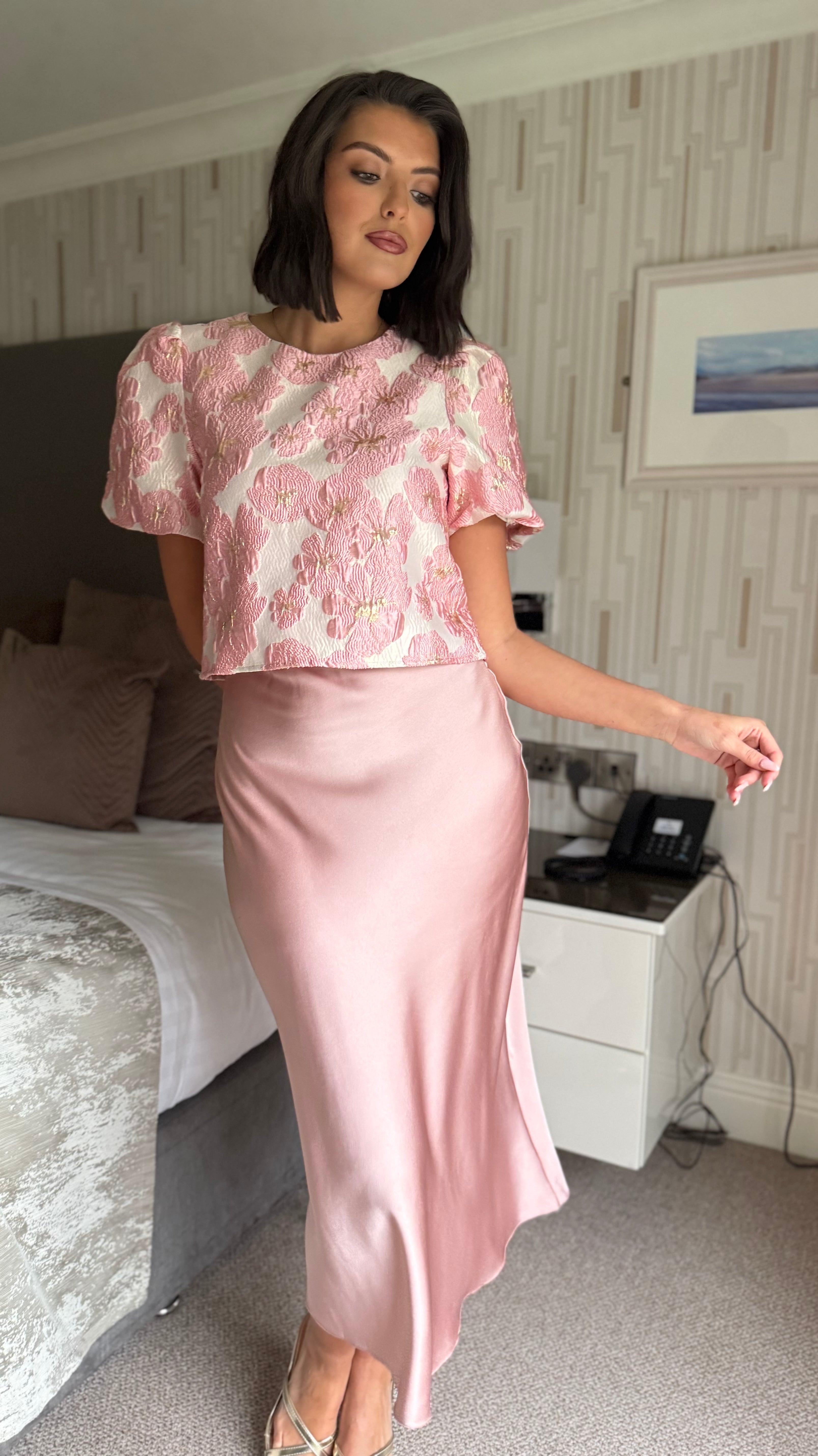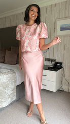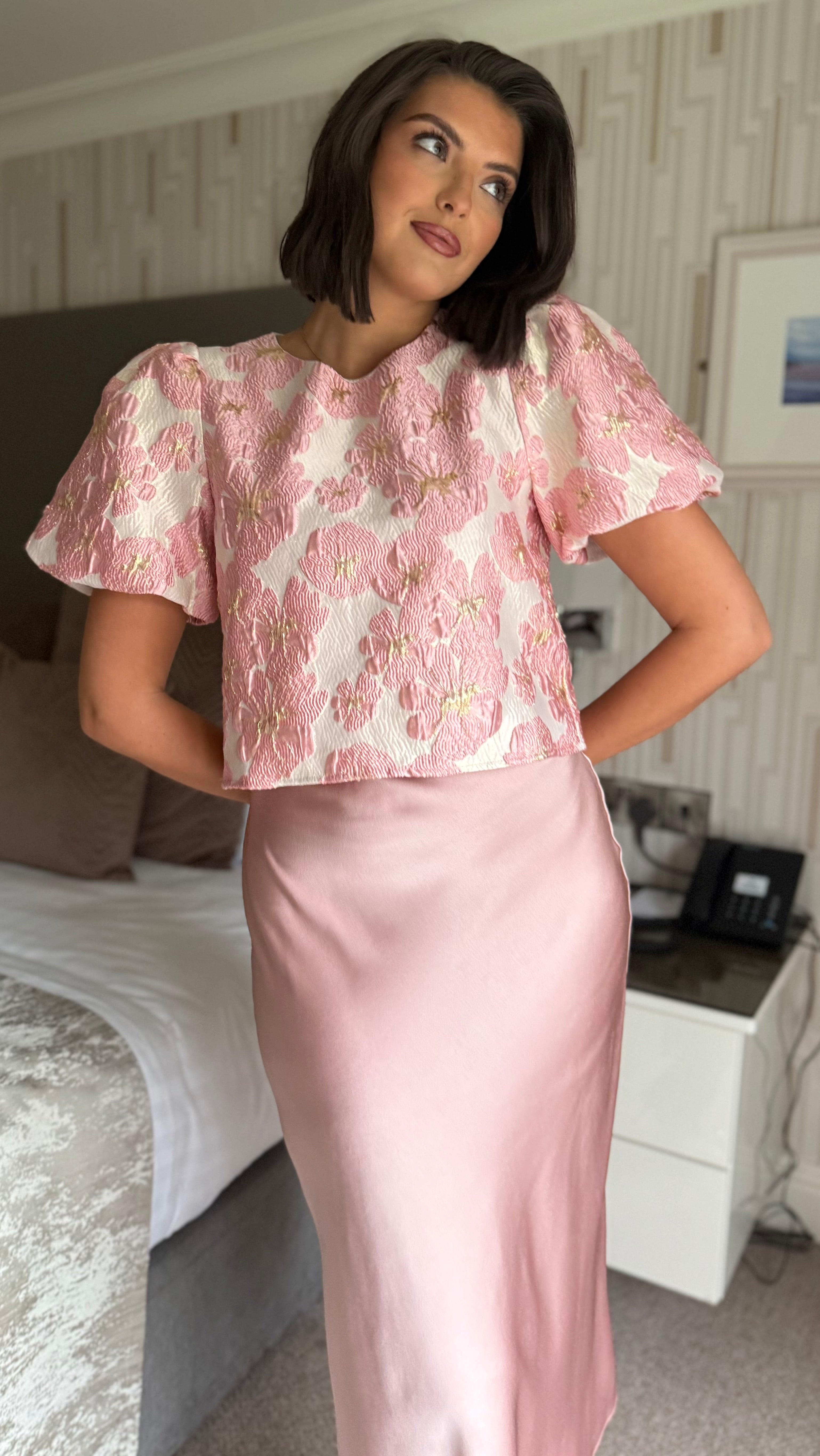 Anaya Light Pink Floral Brocade Puff Sleeve Top (PRE ORDER)