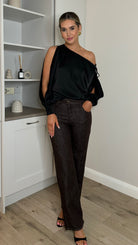 Turn heads in the Billie Black Asymmetric Long Sleeve Top! Showcasing open sleeves and the perfect balance of one shoulder and one tie detail shoulder, this top adds an edgy twist to any ensemble. Complete with cuffed sleeves, it's the ultimate blend of style and practicality.