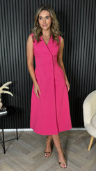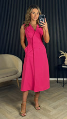Brody Pink Tailored Sleeveless Midi Dress