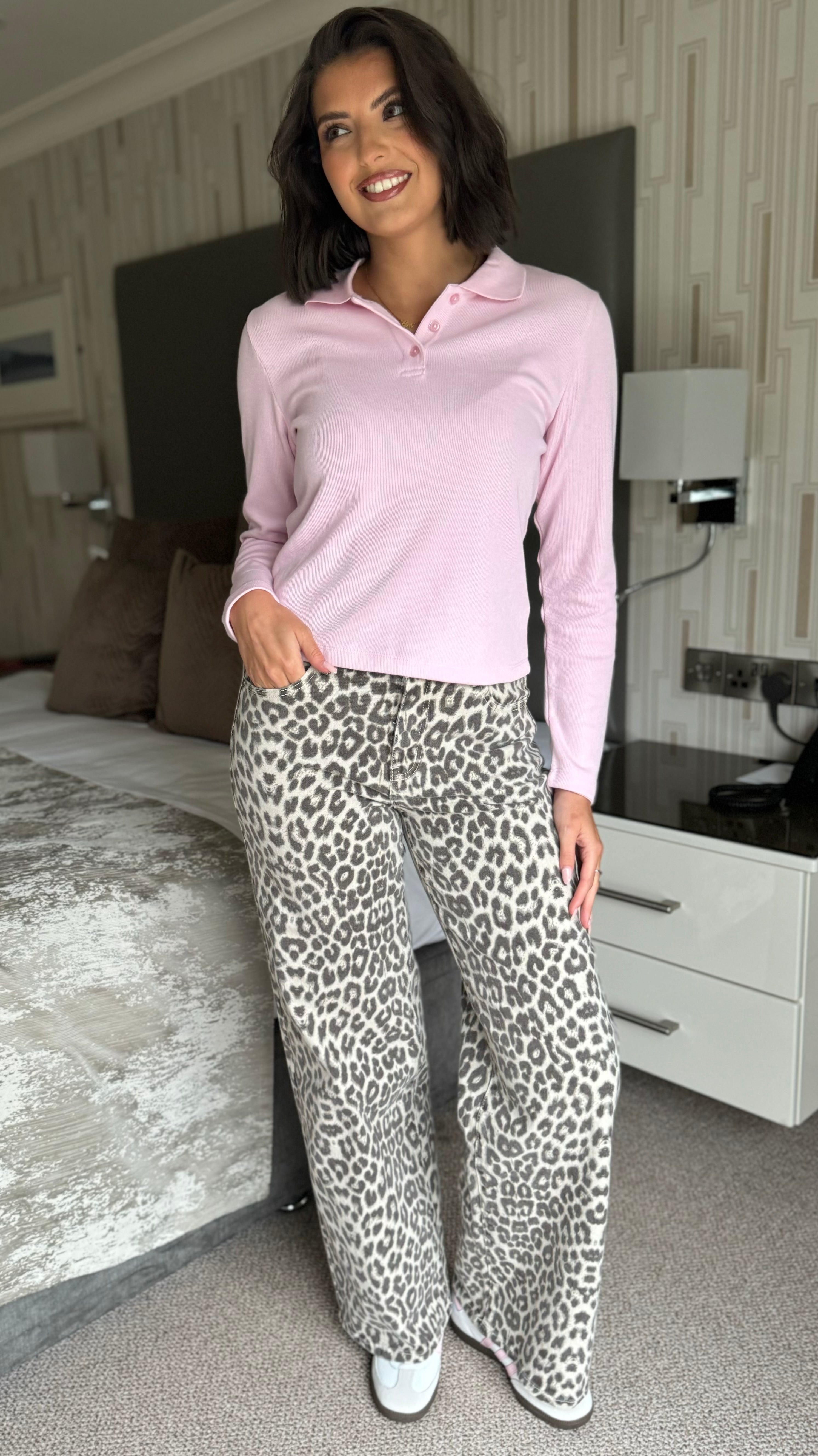 Cali Pink Long Sleeve Polo Top