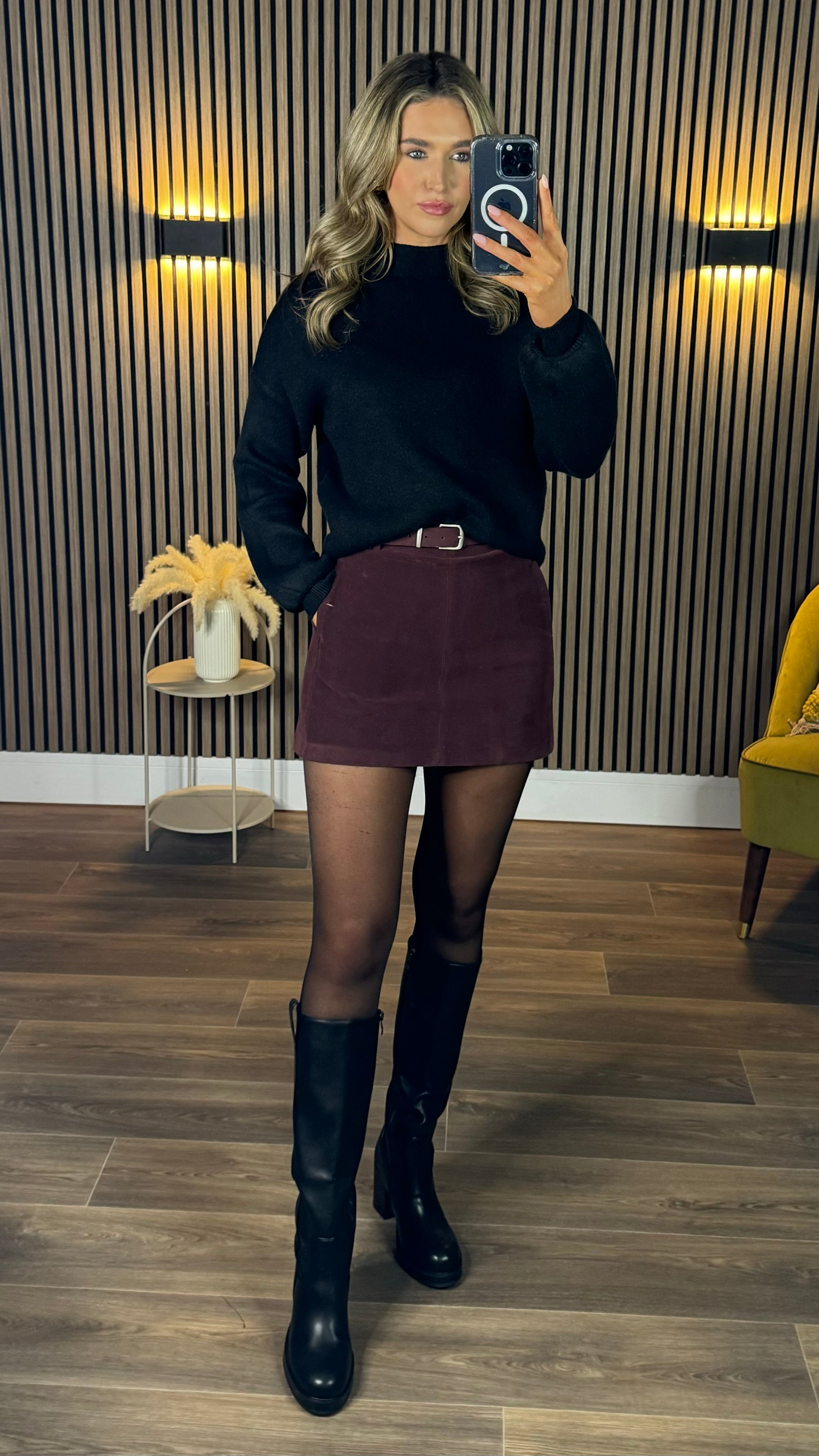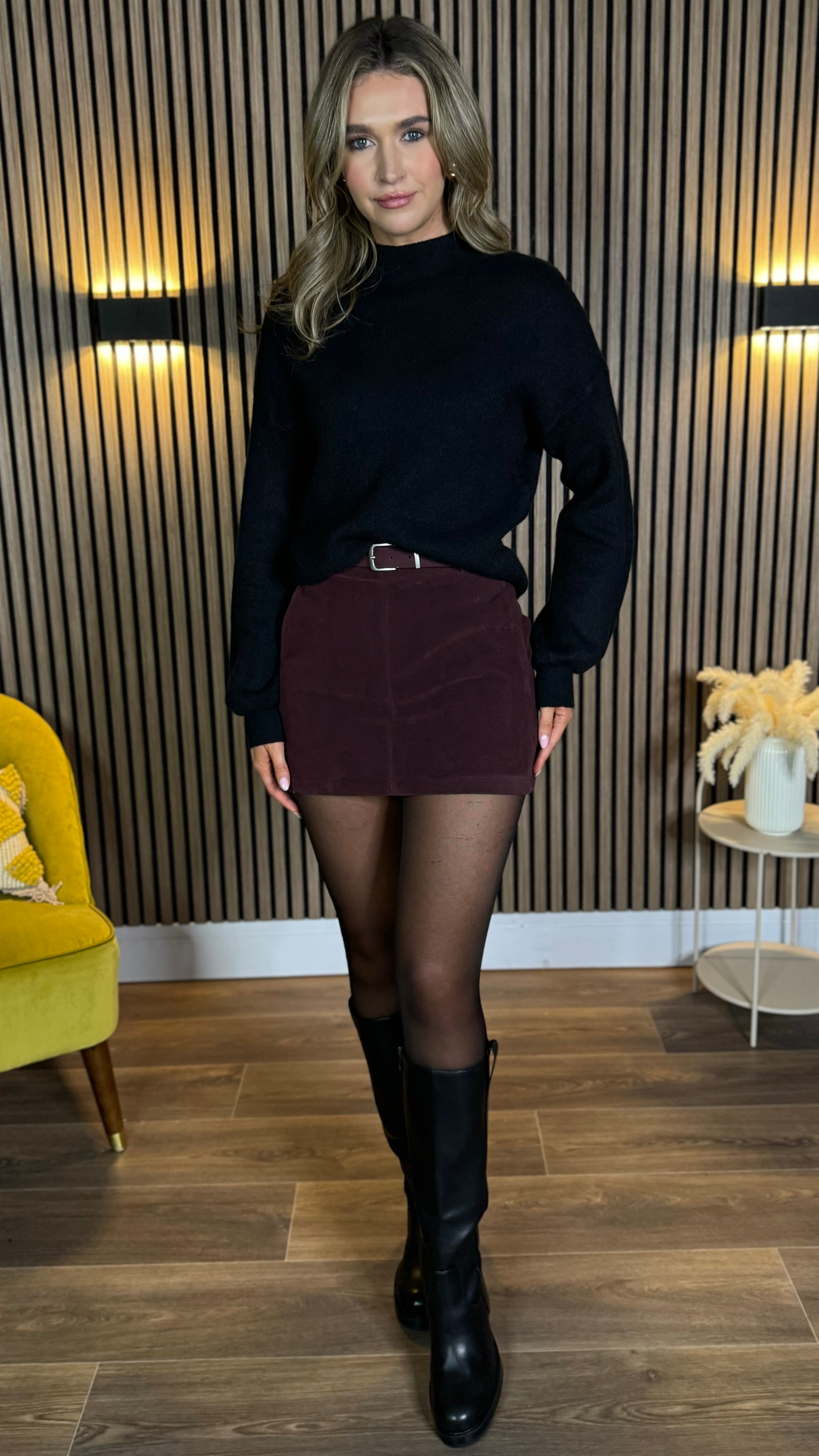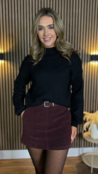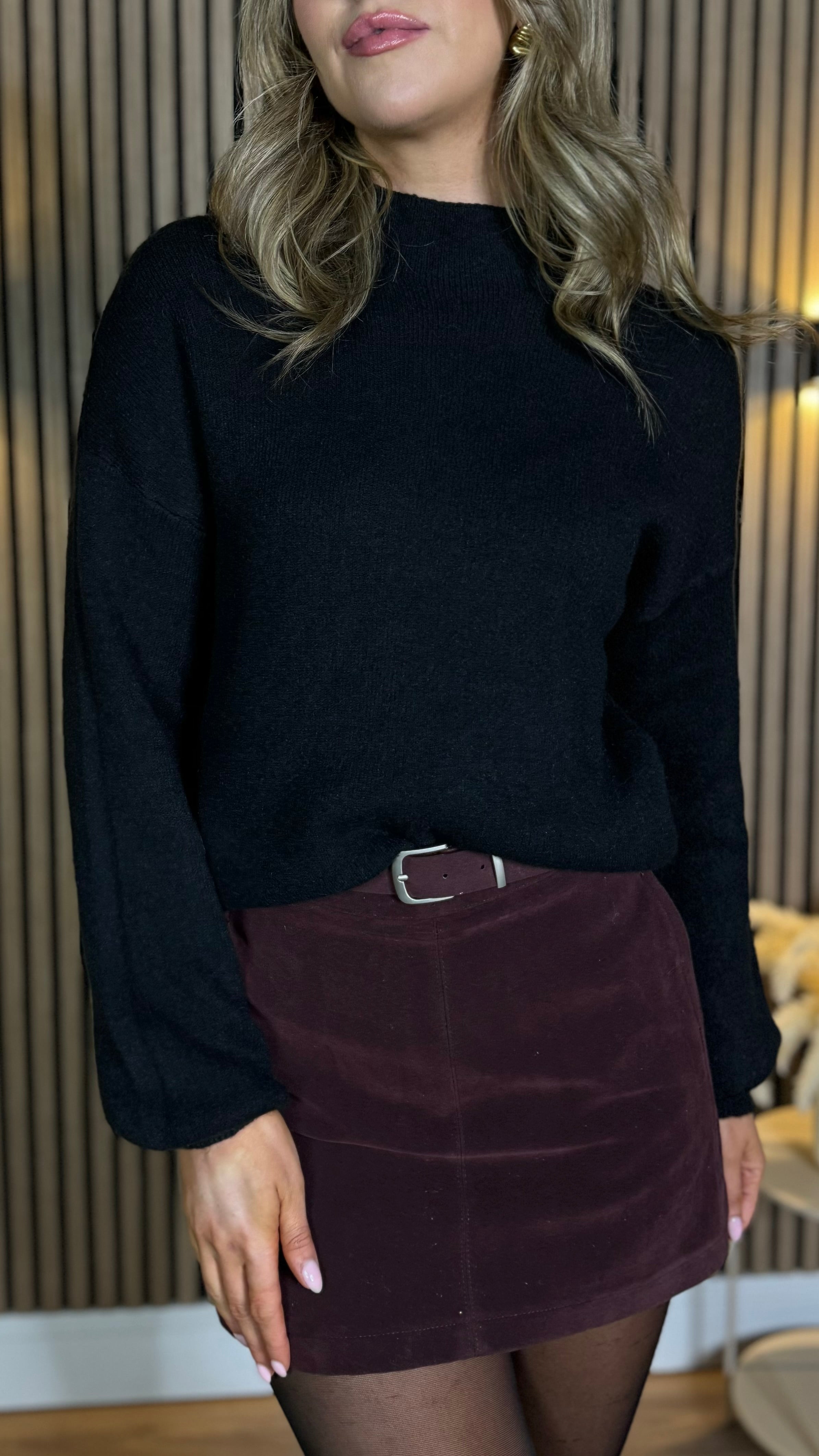 Charee Black Soft Knit High Neck Puff Sleeve Jumper