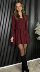 Get ready to turn heads in the Chloe Burgundy Square Neck Skater Mini Dress! With a unique square neck and full skater style skirt, this dress is perfect for any occasion. The long sleeves and panel waist detail add a touch of elegance while still keeping things fun and playful. You'll feel confident and stylish in this one-of-a-kind dress!
