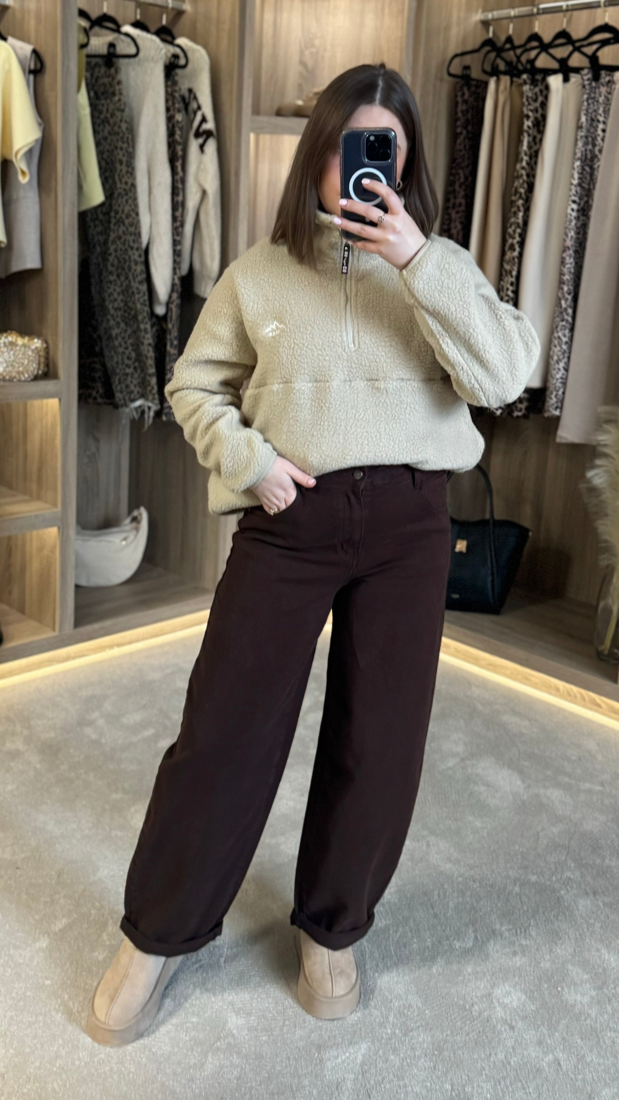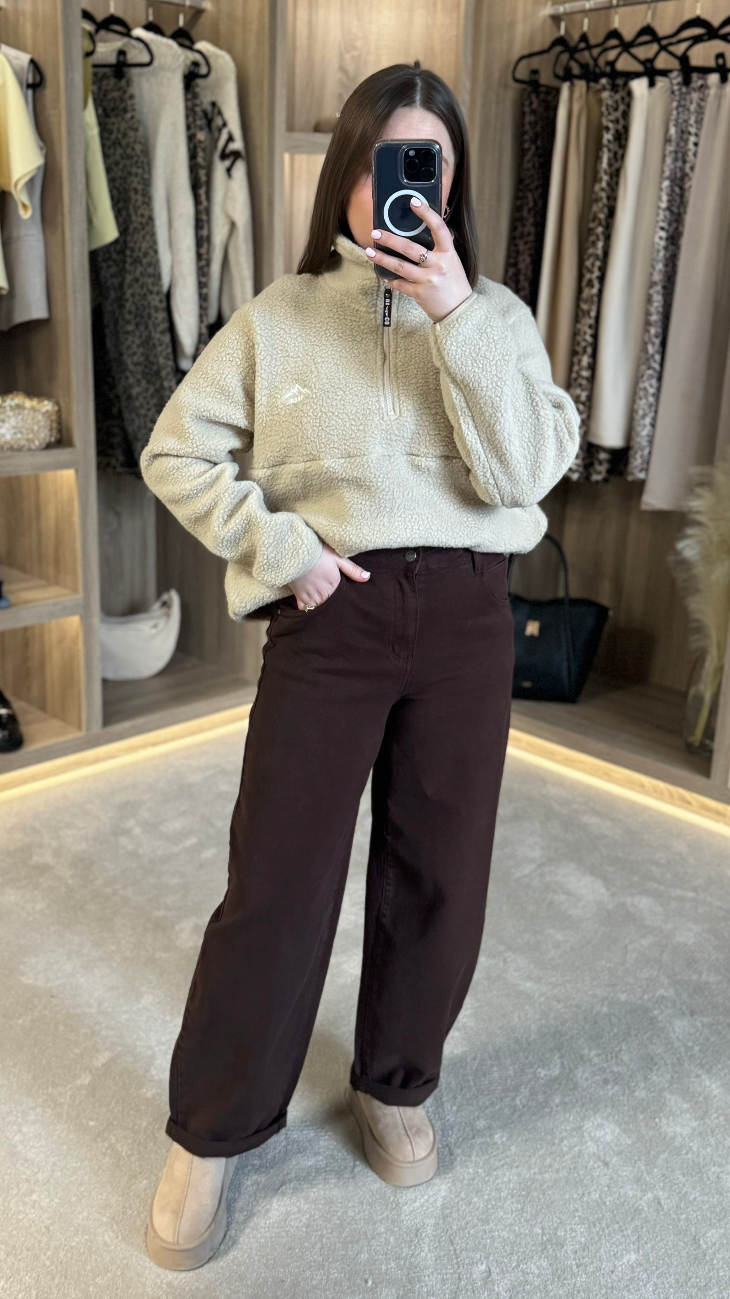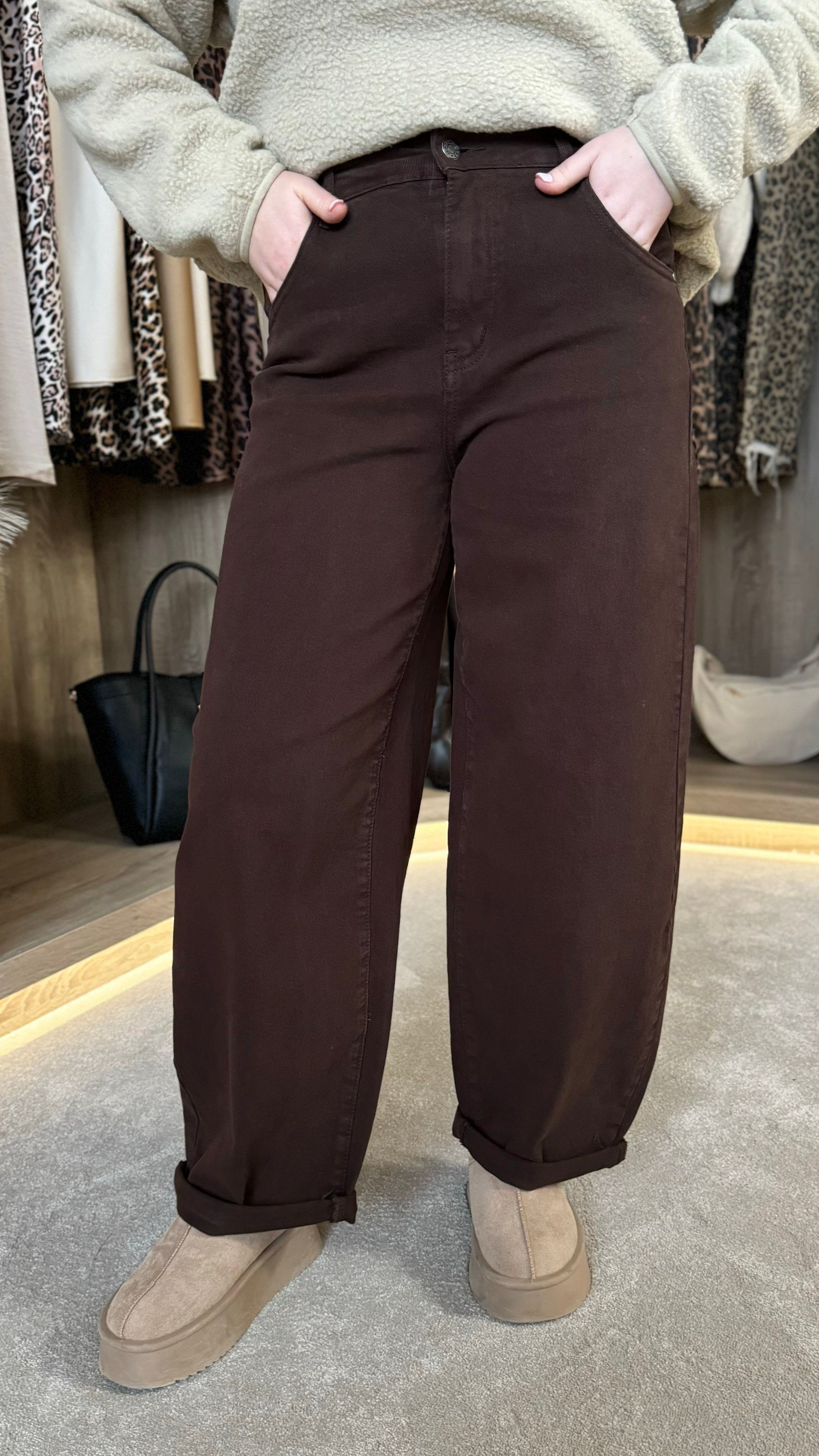 Introducing the Cliona Brown Mid-Rise Barrel Jeans – your new go-to for effortless cool. These jeans feature a flattering mid-rise waist paired with a trendy barrel silhouette that's equal parts comfy and chic. The cuffed hems add a playful finishing touch, while practical front and back pockets keep your essentials close. Zip and fly fastening ensures a secure fit every time. Perfect for dressing up or down, these versatile jeans are about to become your wardrobe favourite.