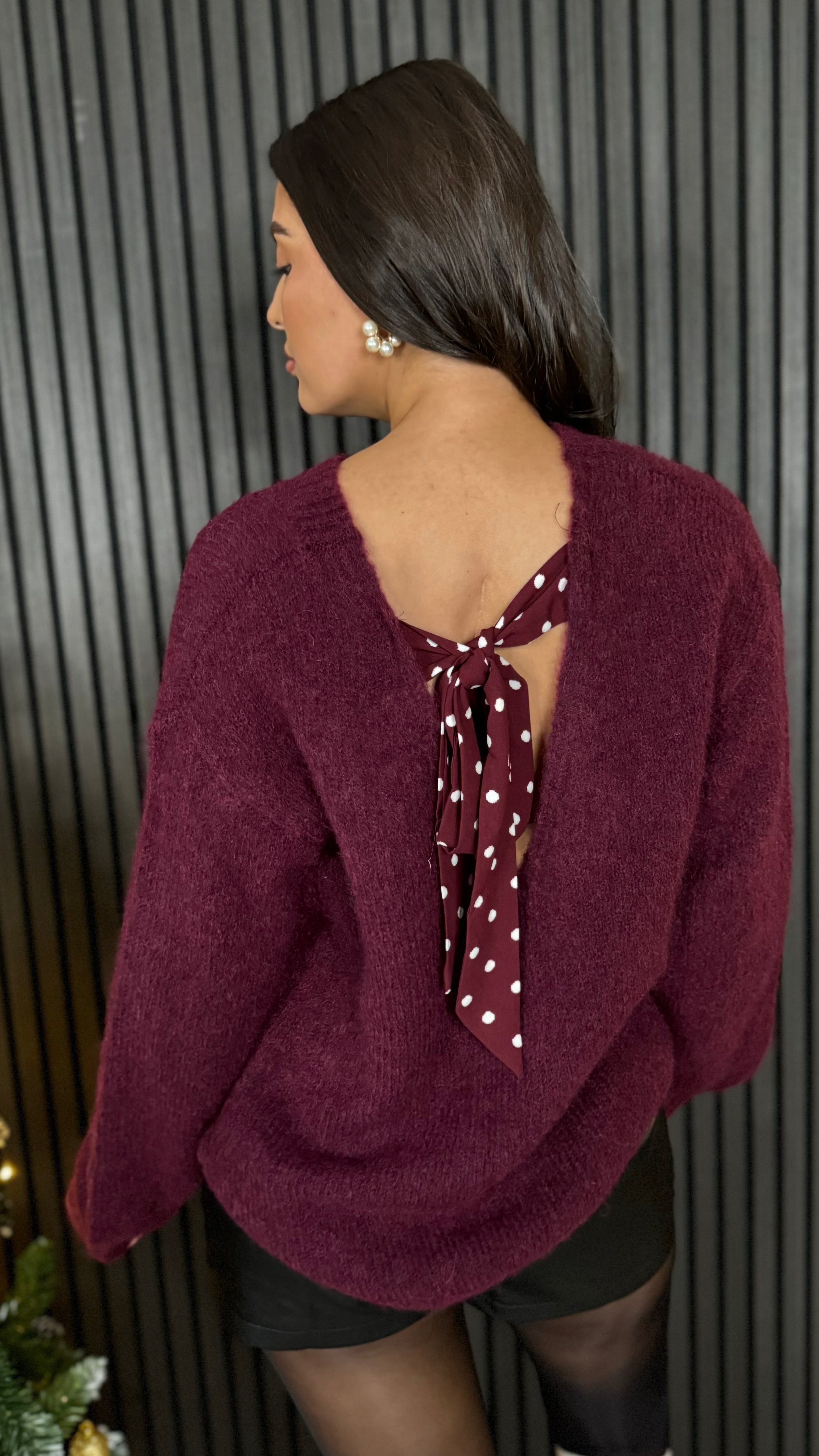 Cullen Burgundy Polka Dot Bow Back Jumper