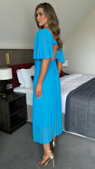 Dahlia Aqua Blue V Neck Draped Sleeve Midaxi Dress