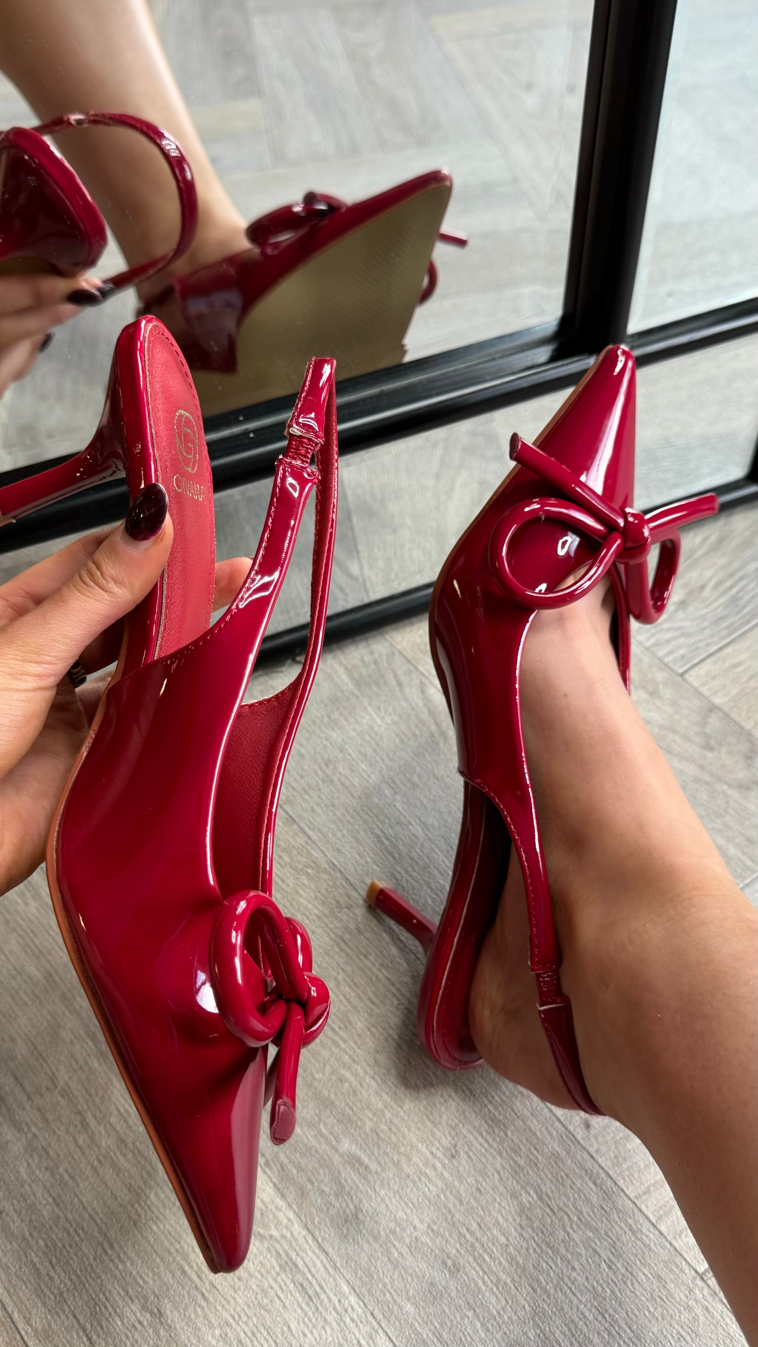 Dakotah Red Patent Bow Detail Slingback Stiletto Heel Shoes