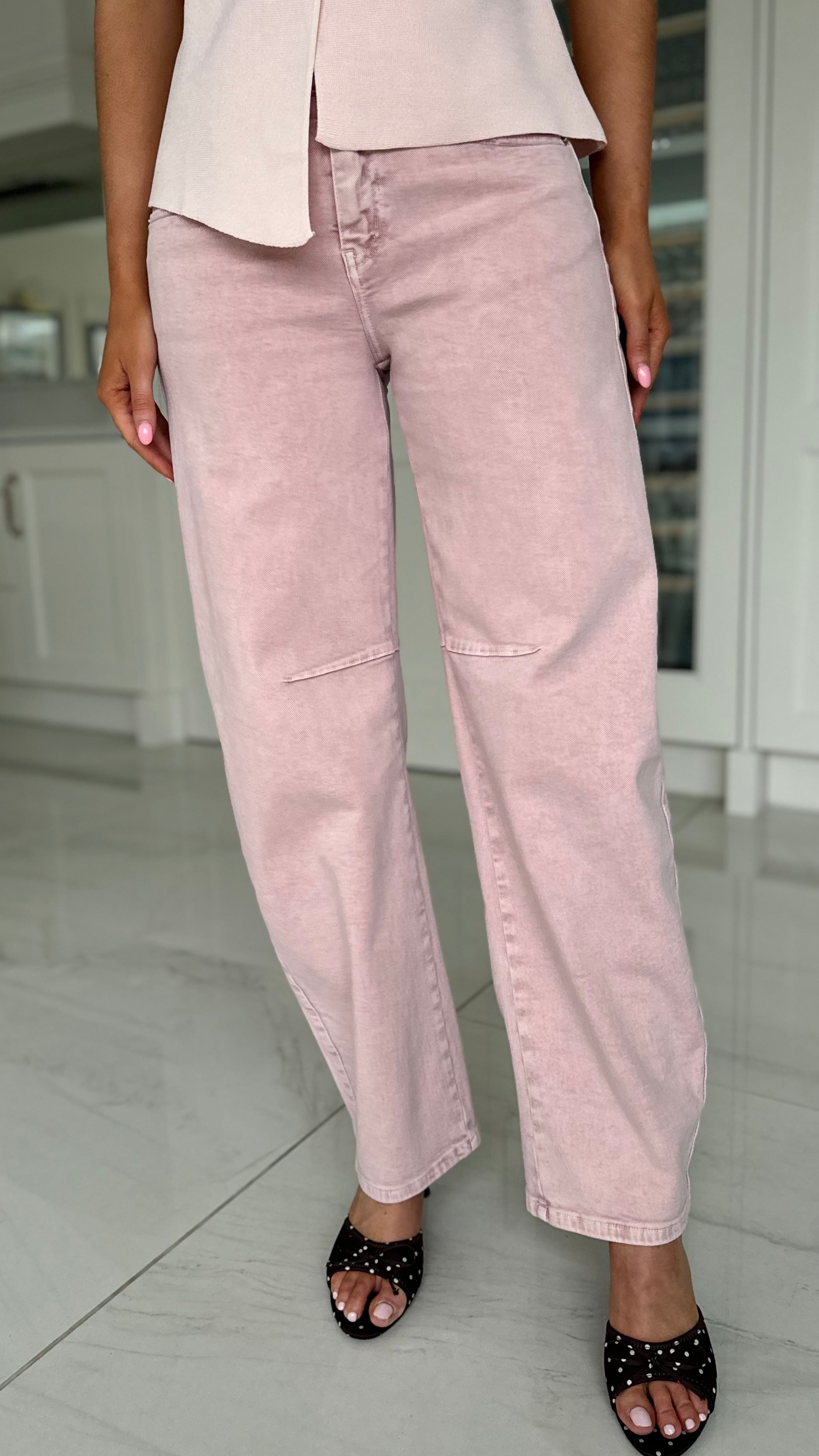 Dina Pink Mid-Rise Barrel Jeans combine a relaxed, contemporary silhouette with practical everyday functionality. The barrel leg offers a modern, comfortable fit that works effortlessly with trainers or heels. Detailed with front and back pockets for secure storage and belt loops for styling versatility, these jeans deliver both form and function. The mid-rise cut flatters and sits comfortably at the waist. Perfect for building a capsule wardrobe with pieces that transition seamlessly from day to night.