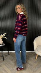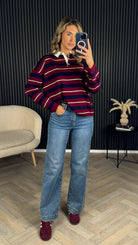 Elodie Burgundy & Navy Rugby Stripe Jumper