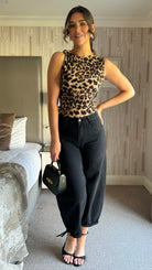 Effortless elegance meets bold style with the Elouise Boat Neck Top. This sleeveless essential features a flattering boat neckline and soft ribbed fabric that moves with you throughout the day. The striking leopard print adds a playful edge to your everyday wardrobe—dress it up with tailored trousers or keep it casual with your favourite denim. A versatile piece that works as hard as you do.