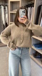 Wrap yourself in pure comfort with the Emerson Taupe Button Detail Ribbed Jumper. This cosy knit features charming button details that add a touch of personality, while the ribbed texture and snug ribbed cuffs keep you warm and hugged all day long. Perfect for lazy weekends or effortless everyday style—because looking good shouldn't mean sacrificing comfort!
