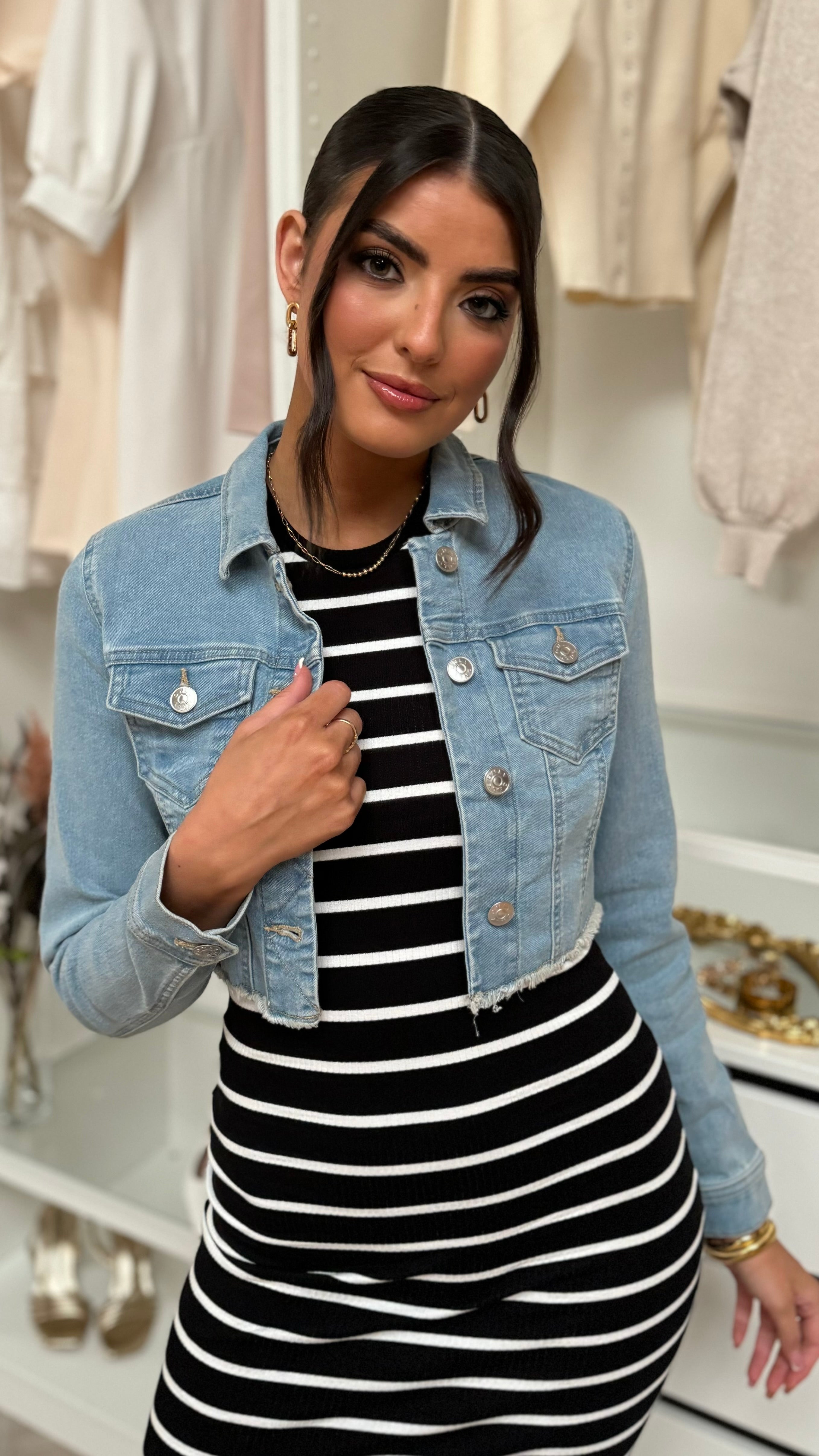 Stay cool and stylish in the Fergie Light Blue Denim Cropped Denim Jacket. This denim jacket features a frayed hem for a touch of edgy charm. Perfect for completing any casual or dressy outfit. 🔥👌