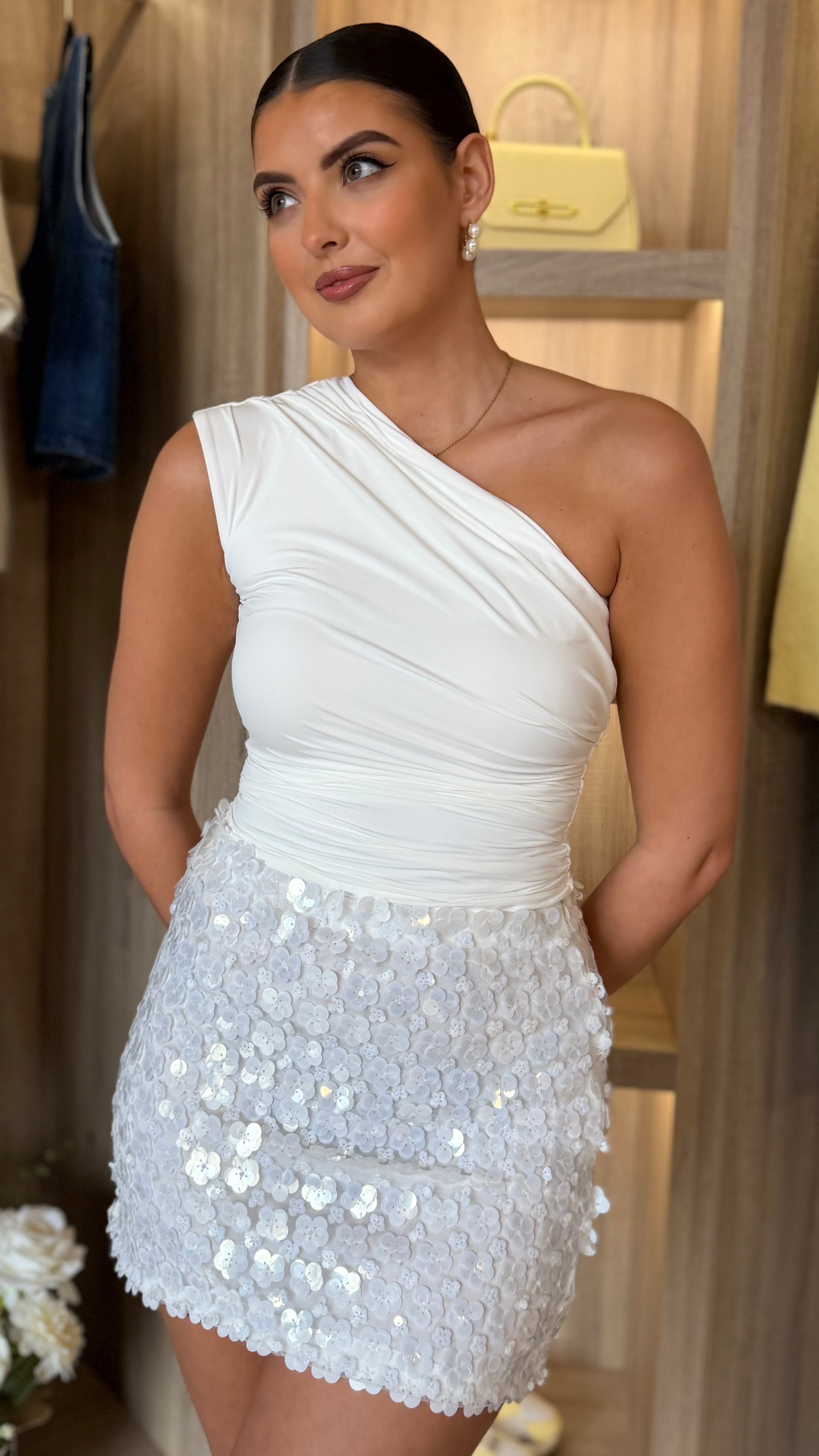 Elevate your evening look with this stunning white sequin mini skirt. Crafted with all-over sequin detailing for maximum sparkle and impact, this piece delivers premium glamour for any occasion. The lined interior ensures comfort and confidence, while the concealed zip fastening creates a sleek, polished silhouette. Perfect for nights out, parties, or when you want to make a statement. Pair with a fitted top and heels to complete the look.