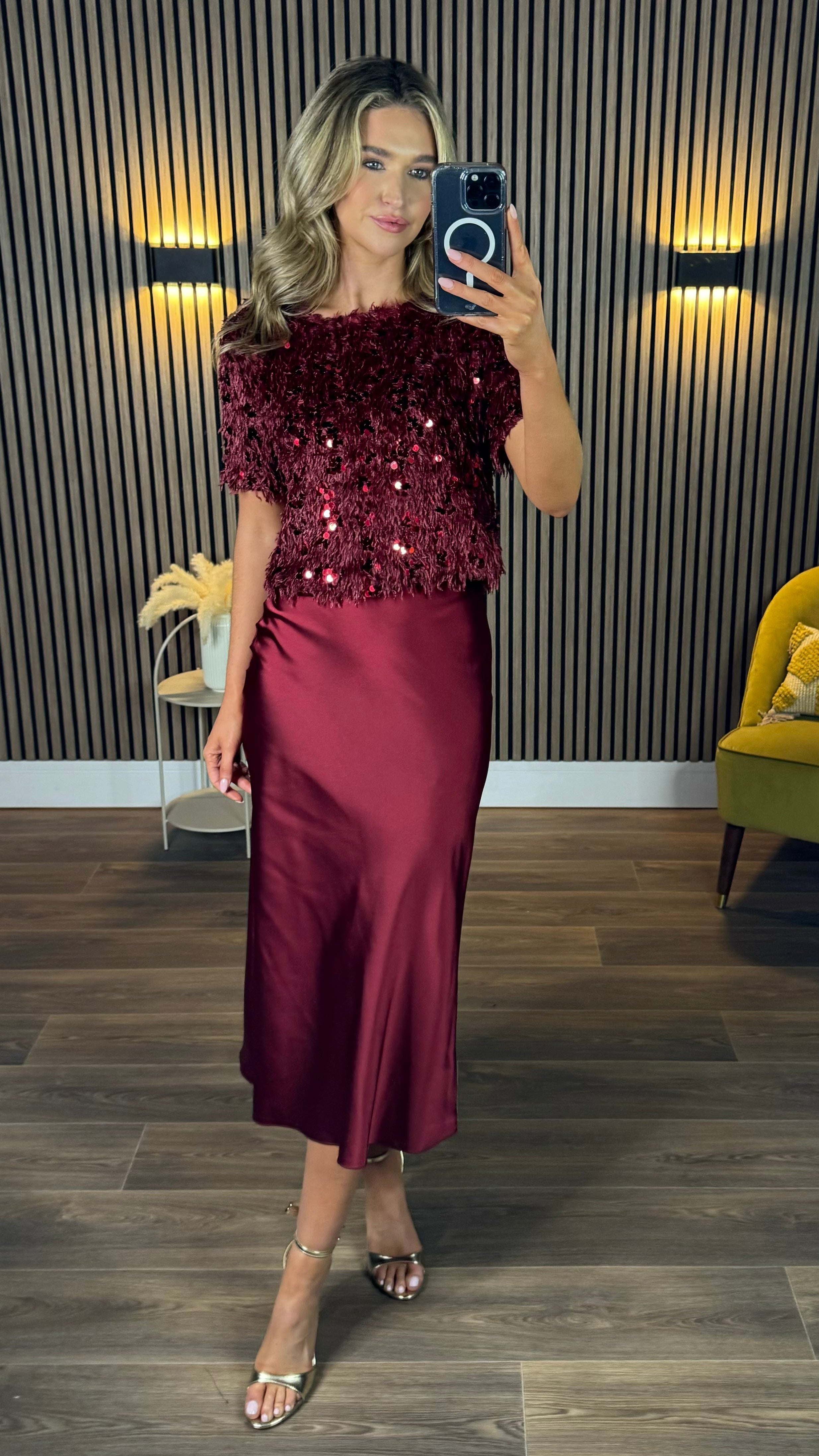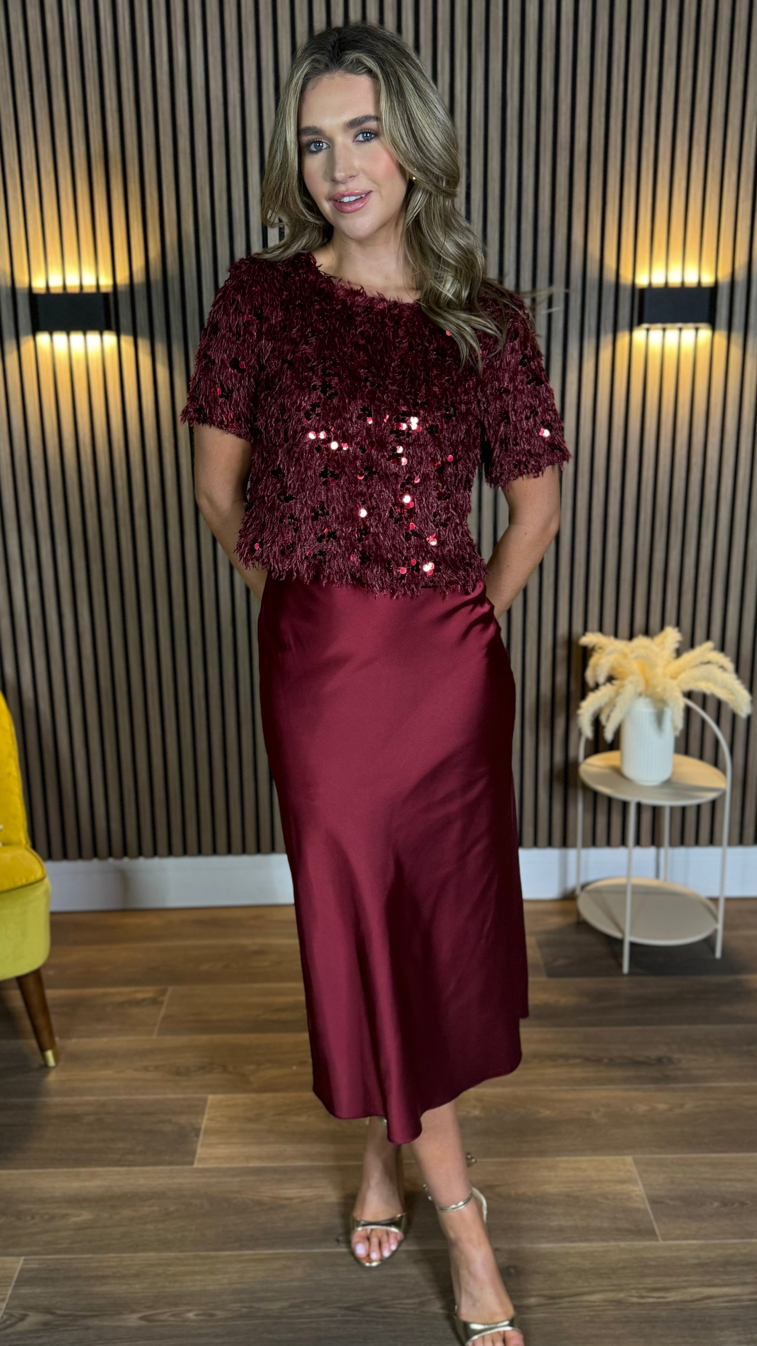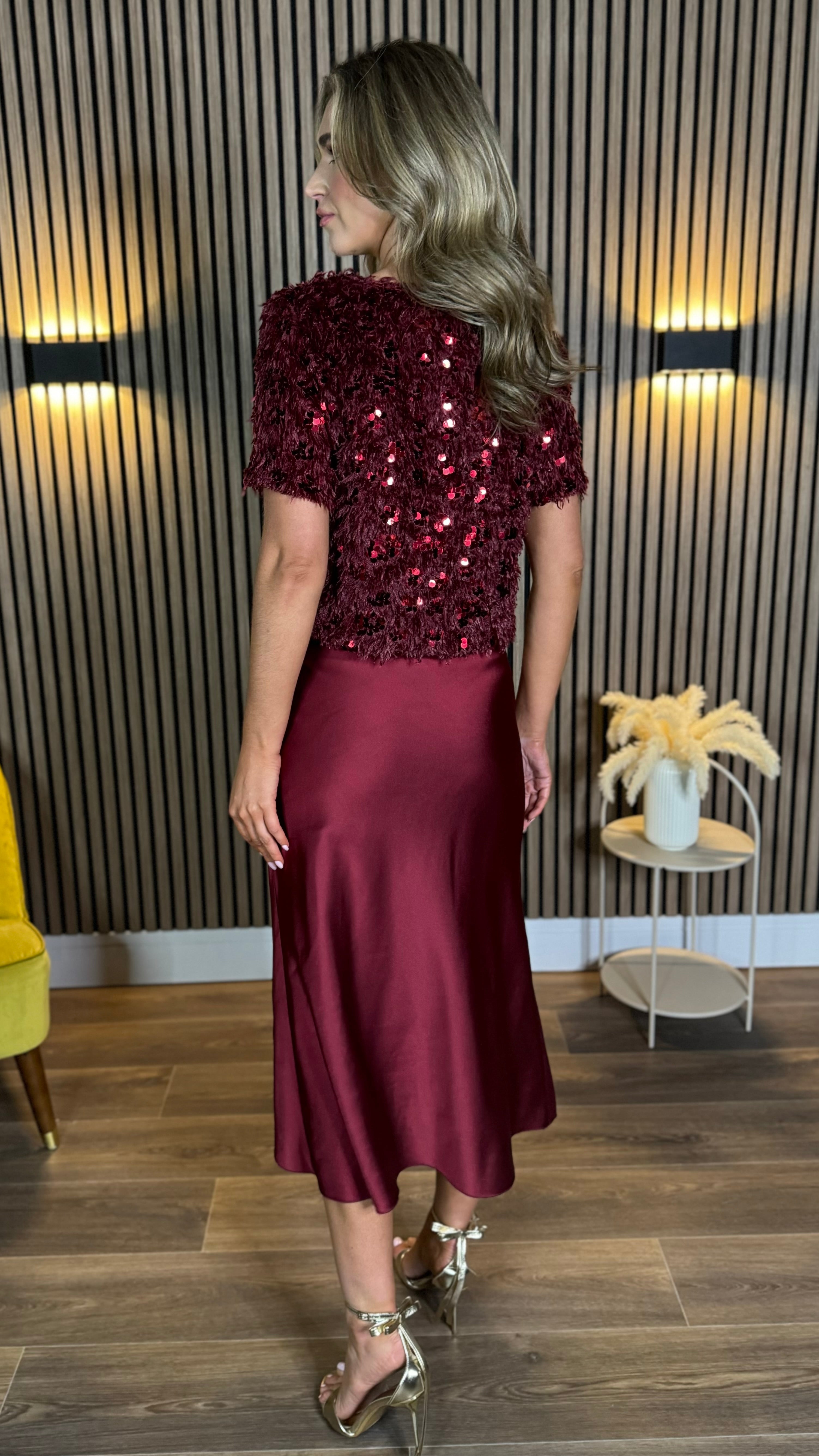 Georgette Burgundy Sequin Detail Top