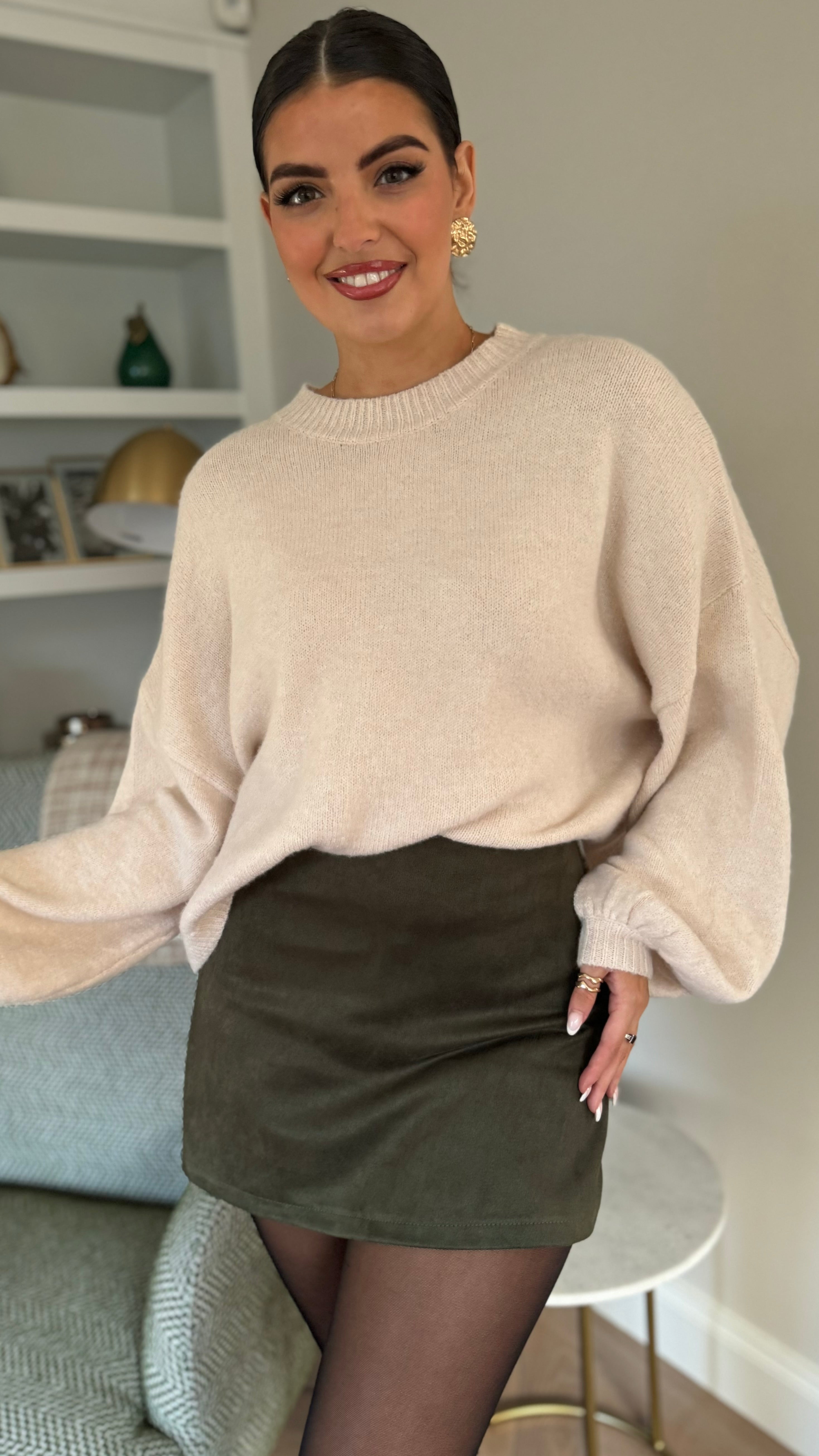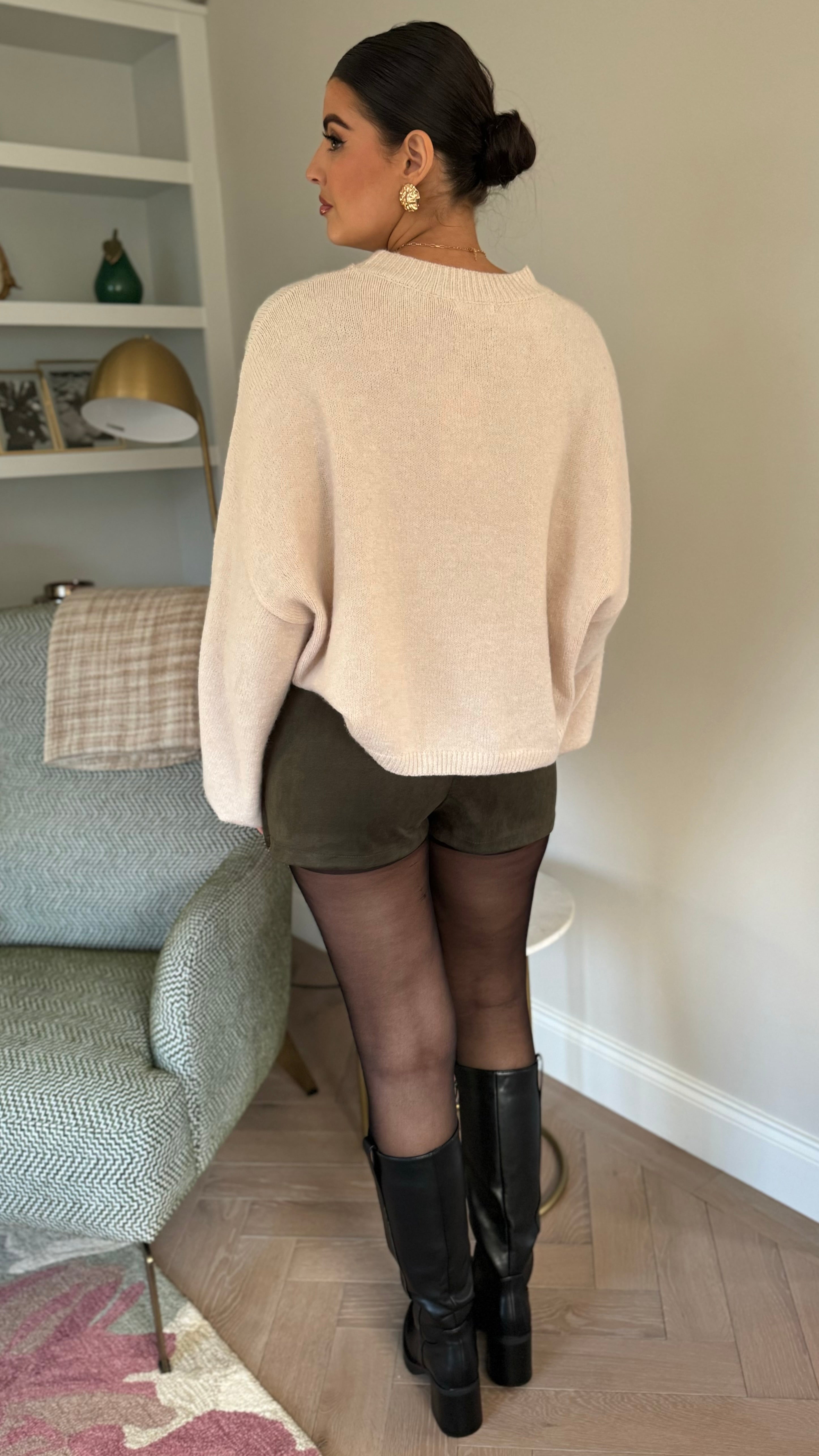 Goldie is your go-to skort for effortless style! This mini beauty features a structured high waist that flatters and a sleek straight cut in luxe faux suede. The concealed side zip keeps things streamlined while the khaki tone pairs with literally everything. Perfect for those days when you want shorts comfort with skirt vibes.