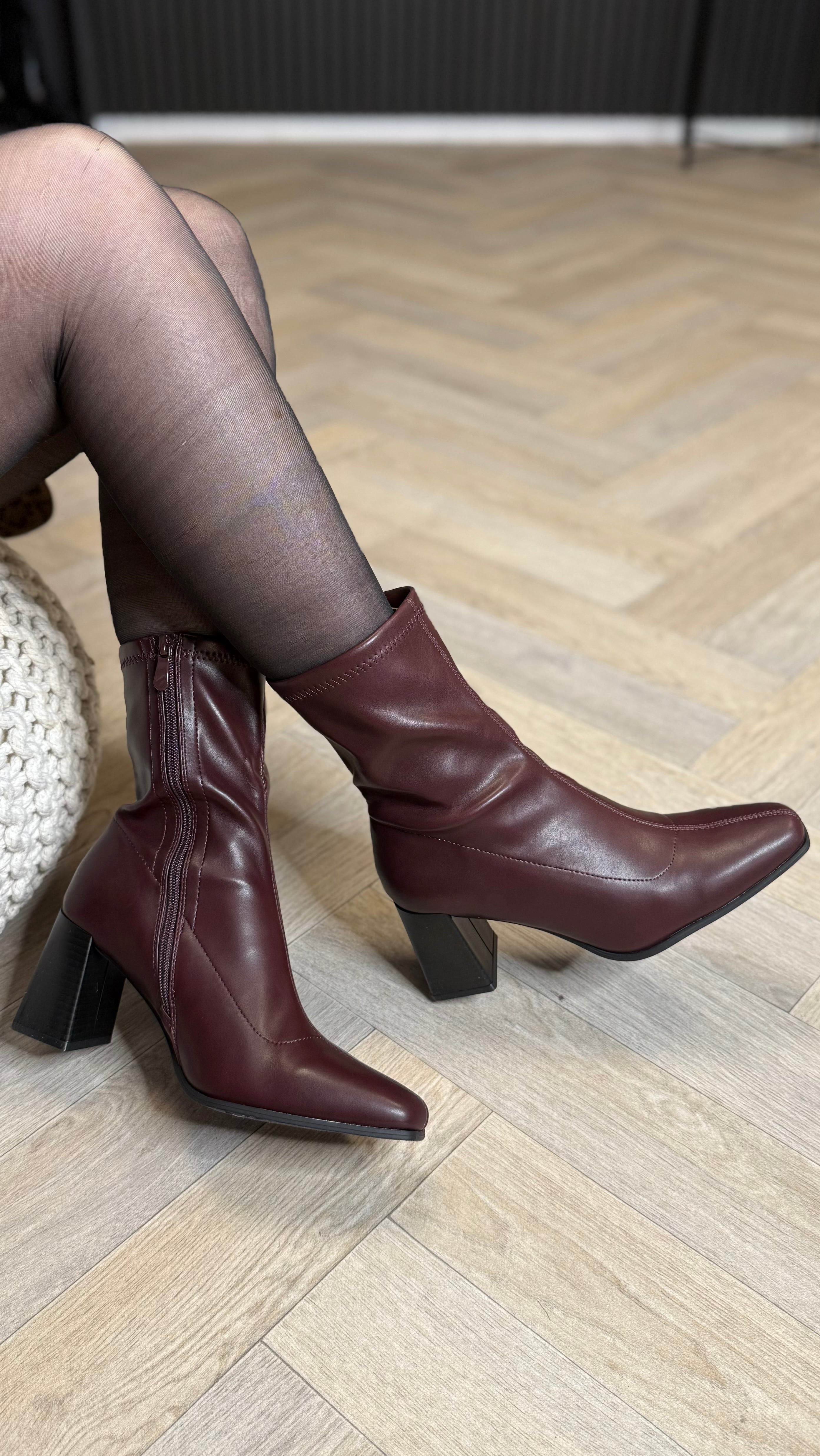 Step into style with the Jemma Wine Faux Leather Ankle Boots—your new go-to for effortless cool. Featuring a chic square toe that's totally on-trend, these boots are crafted from sleek faux leather that looks luxe without the fuss. The convenient side zip makes slipping them on and off a breeze, so you can dash from day to night without missing a beat. Whether you're pairing them with jeans, dresses, or anything in between, the Jemmas are ready to elevate your everyday look.