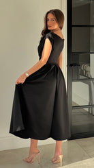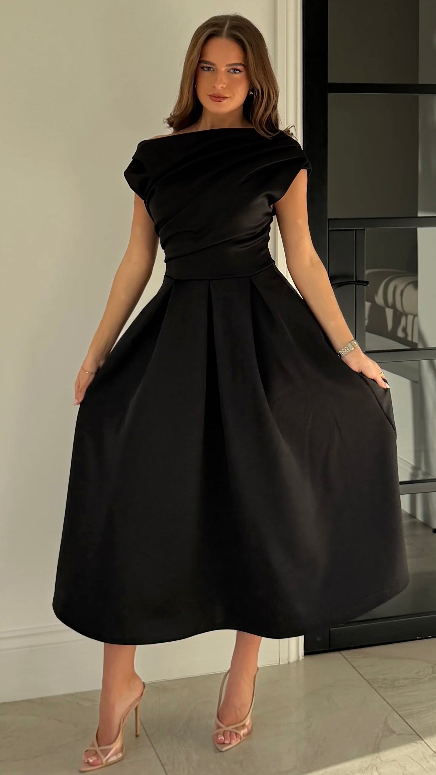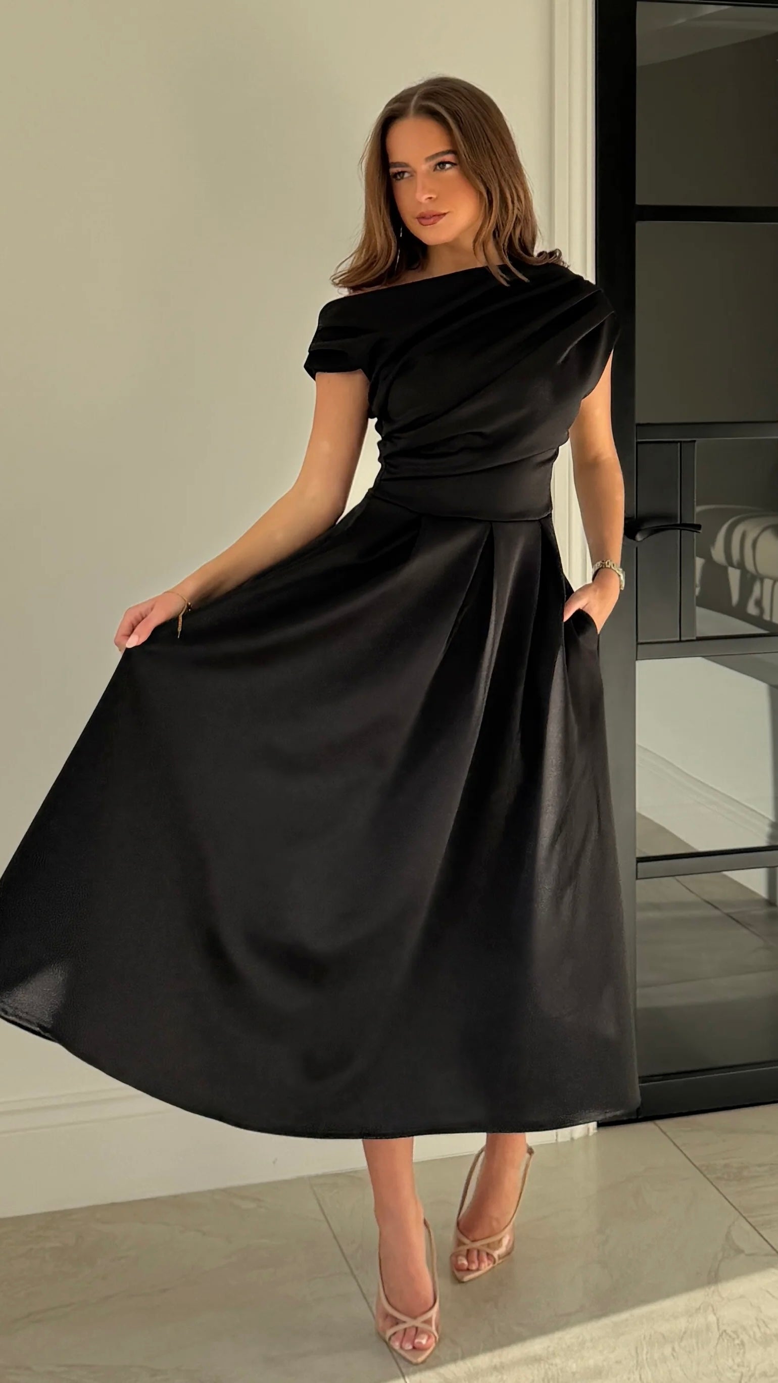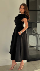 Turn heads with the Jezebel Black Asymmetric Neck Skater Dress. Featuring a fun asymmetric neckline and a flattering skater skirt, it brings playful charm to any occasion. The concealed zip fastening keeps your silhouette sleek, while handy pockets add a touch of practicality to this flirty, vibrant dress. Perfect for dancing the night away or a spontaneous adventure!
