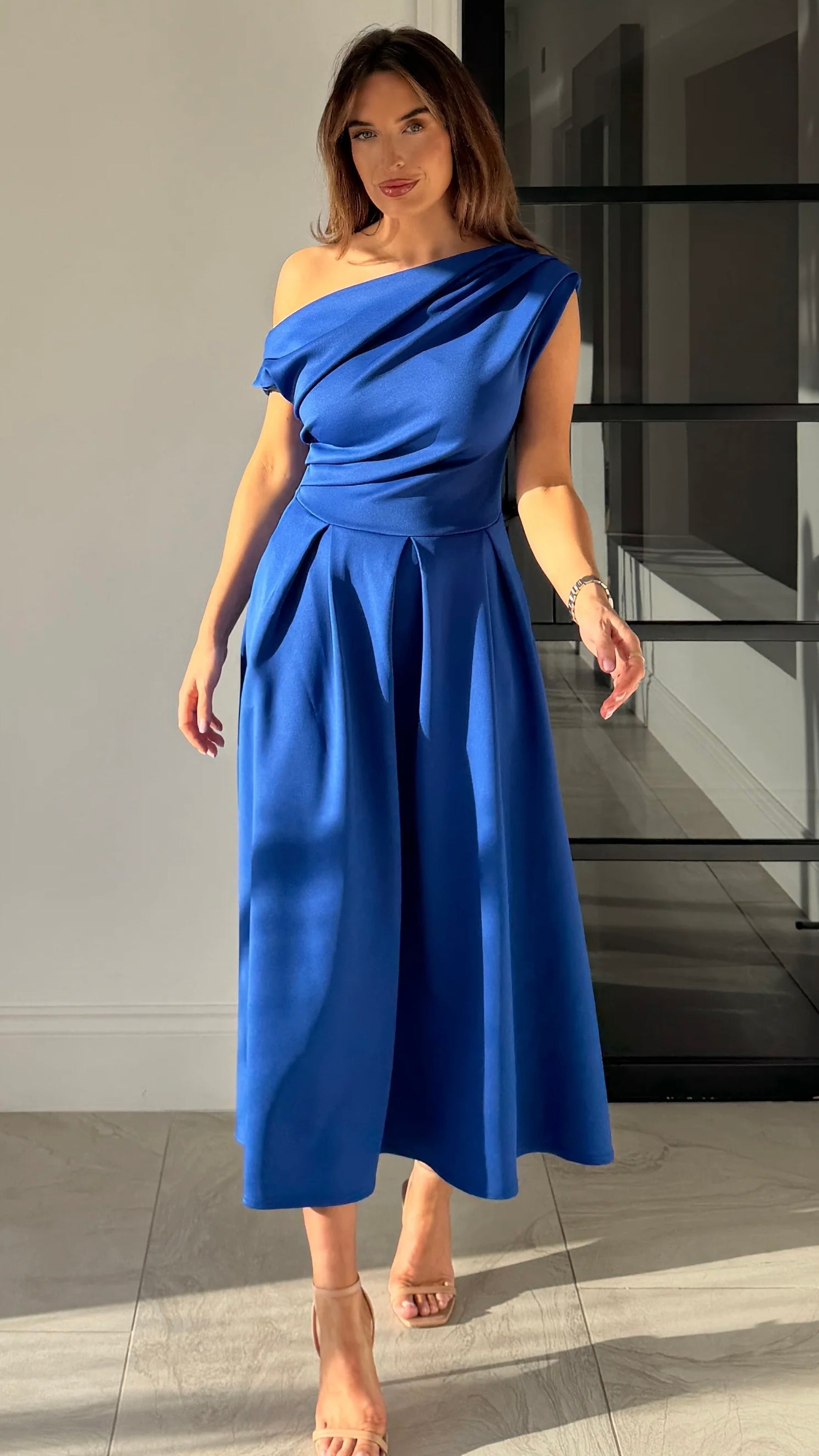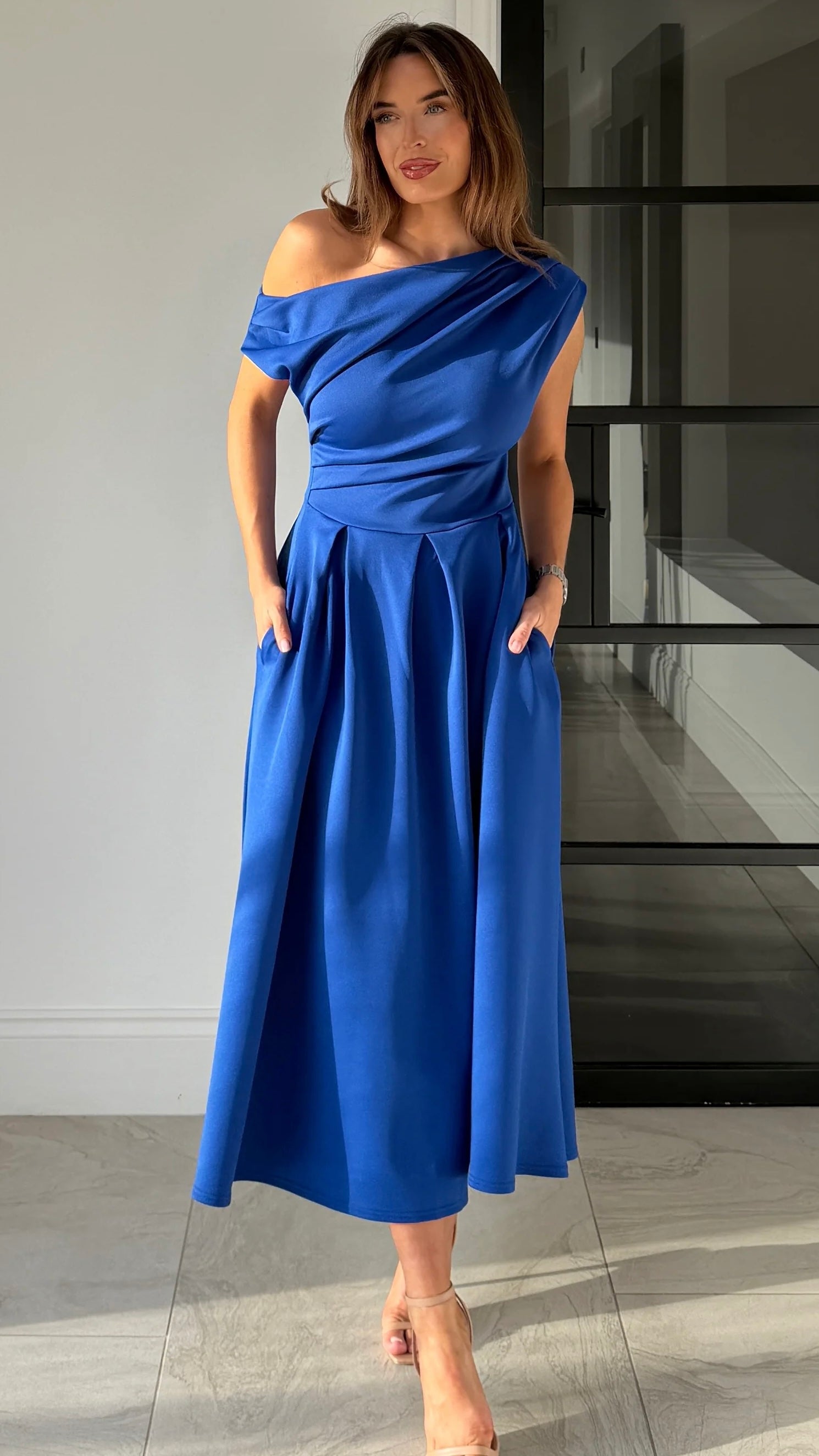 Turn heads with the Jezebel Blue Asymmetric Neck Skater Dress. Featuring a fun asymmetric neckline and a flattering skater skirt, it brings playful charm to any occasion. The concealed zip fastening keeps your silhouette sleek, while handy pockets add a touch of practicality to this flirty, vibrant dress. Perfect for dancing the night away or a spontaneous adventure!
