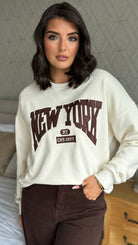 Cozy up in this cream and brown 'New York' sweatshirt that screams effortless style! 🗽 Perfect for those days when you want to channel big city vibes without leaving your couch. The classic colour combo works with literally everything in your wardrobe, while the relaxed fit keeps you comfortable all day long. Whether you're grabbing coffee, running errands, or just vibing at home, this Journee piece is your new go-to. 🧡 Soft, stylish, and totally Instagram-worthy! ✨