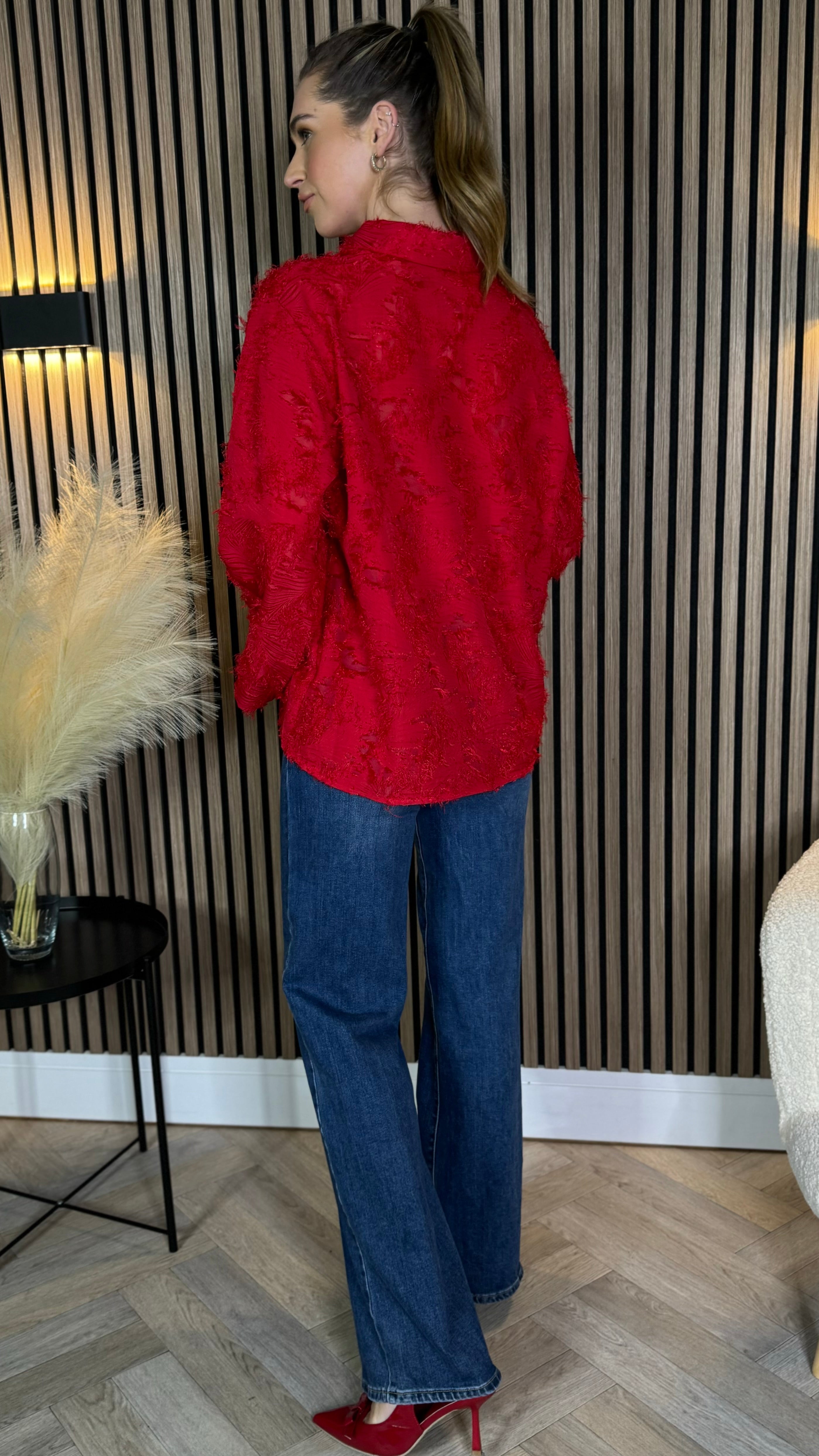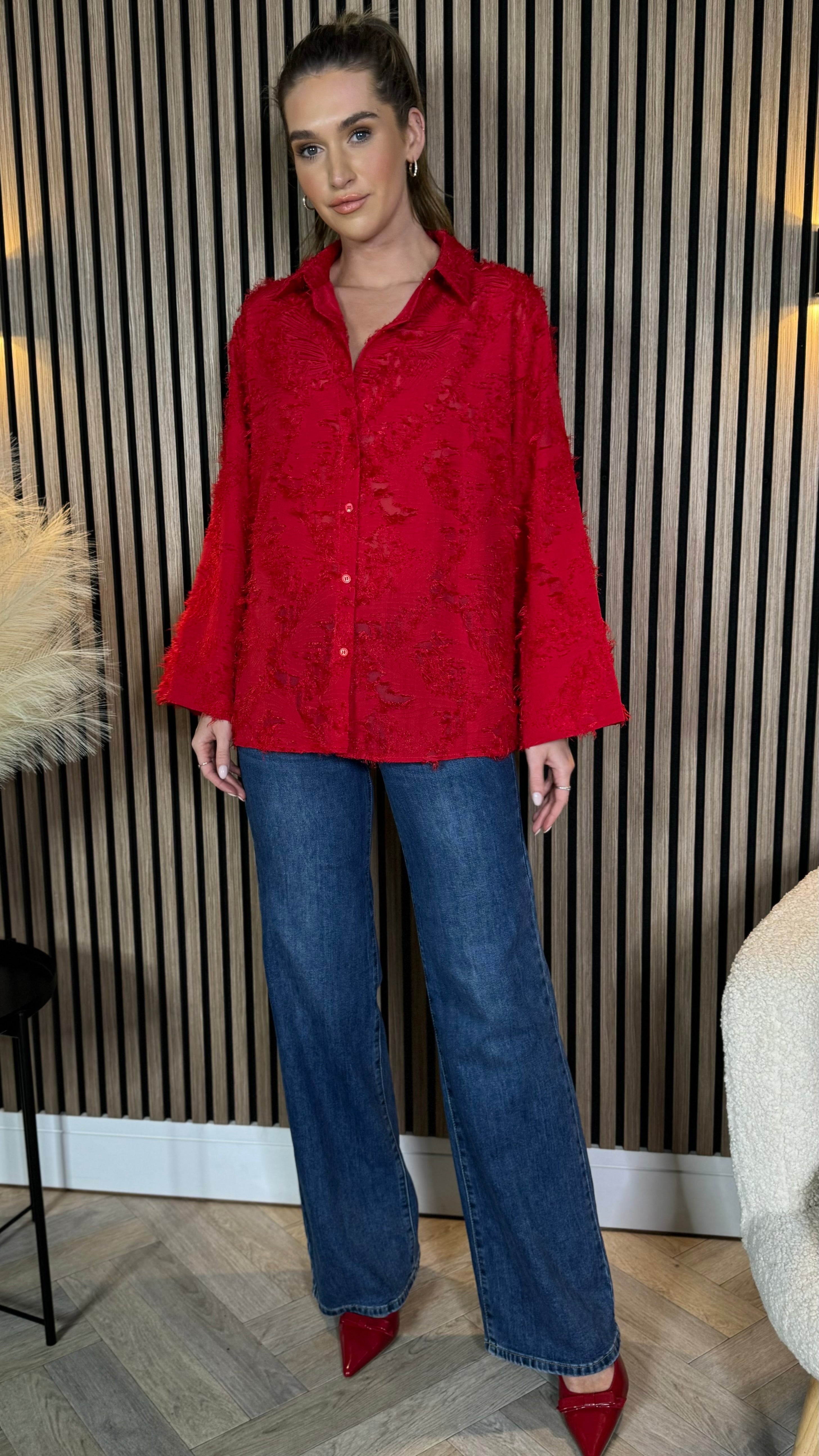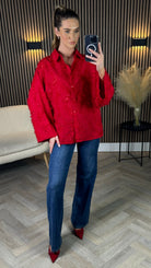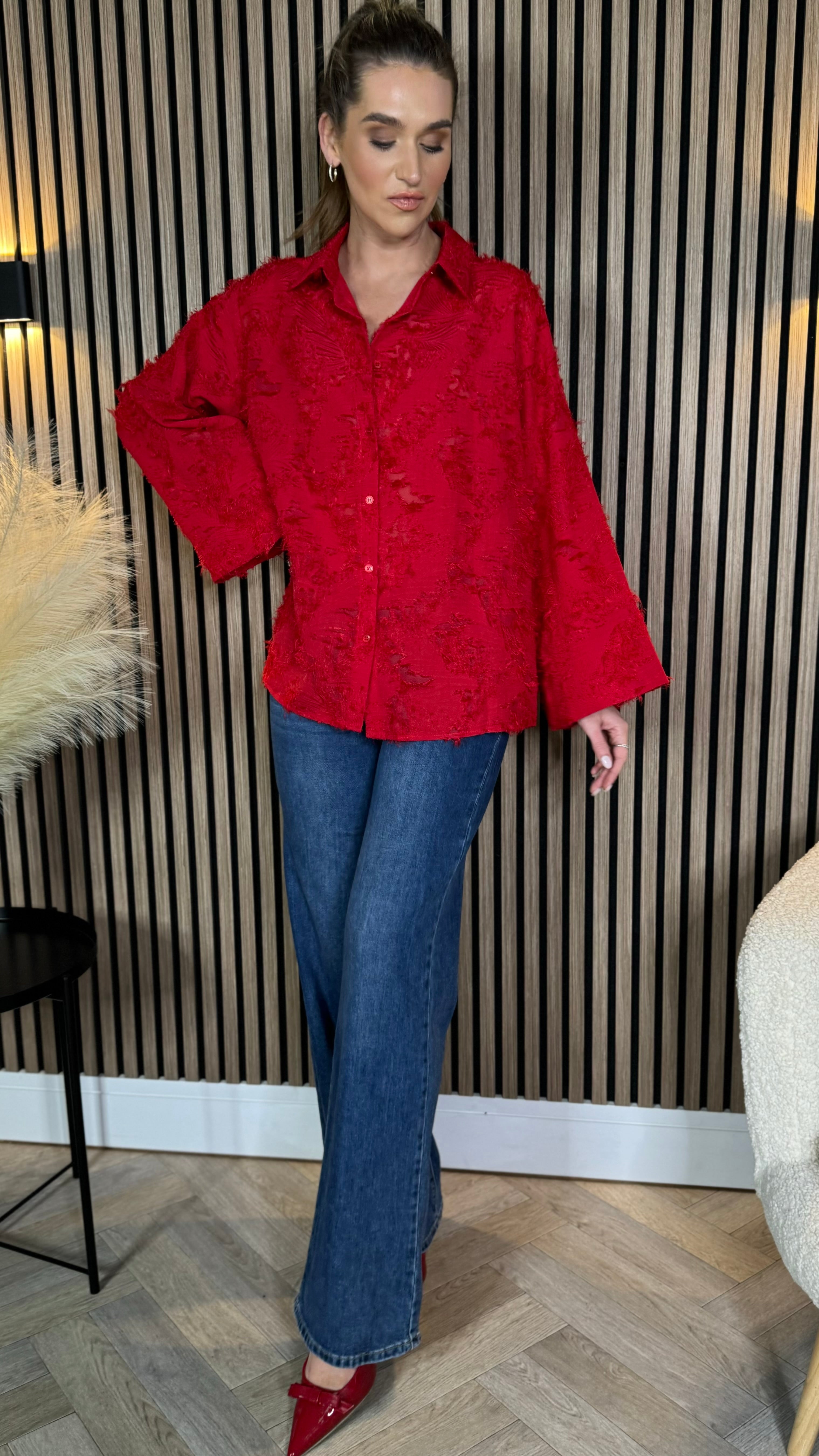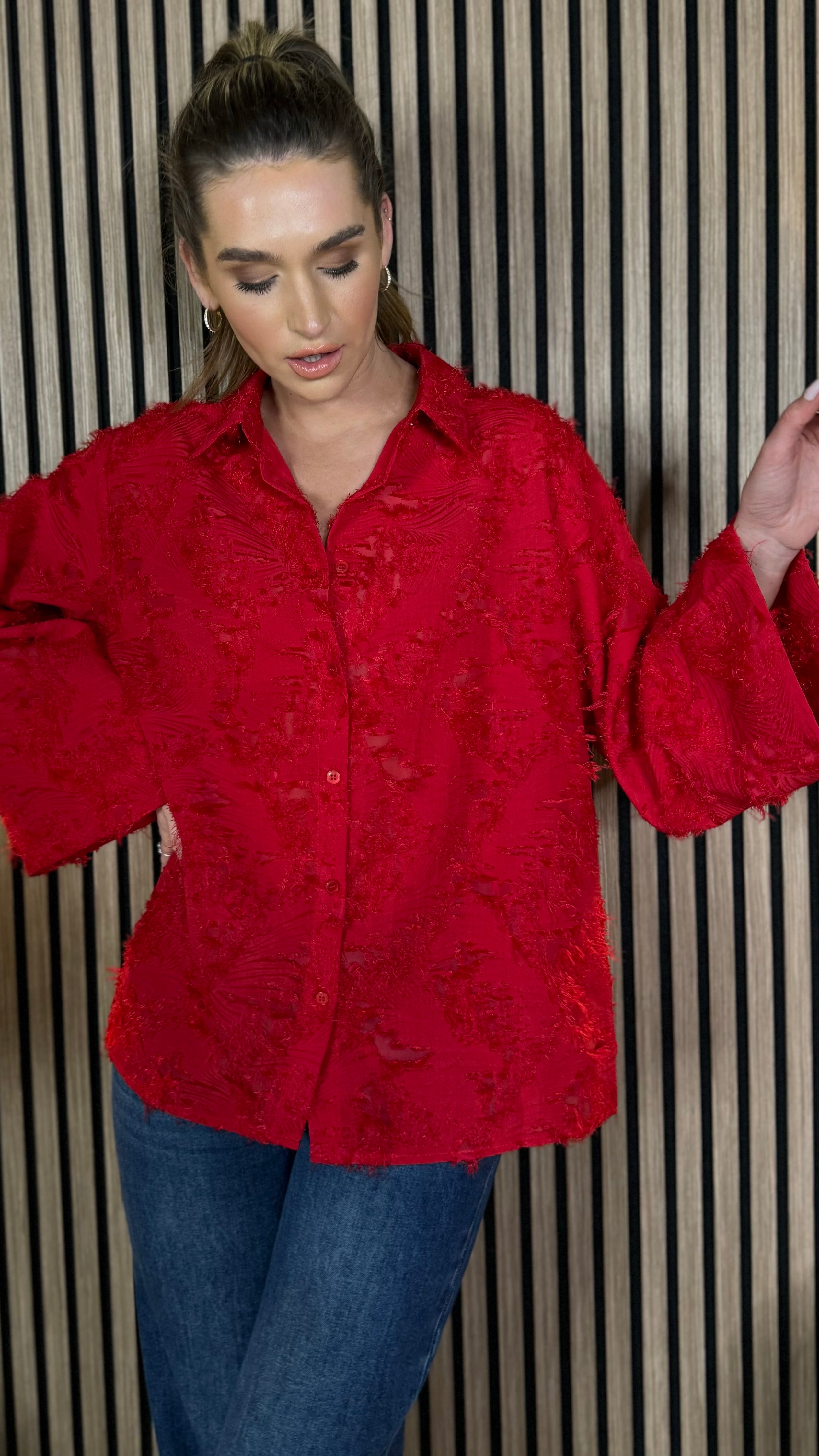 Unleash your inner fashionista with the Jovie Red Textured Oversized Shirt! This top is not just your basic cream shirt, it features intricate embroidery and a unique textured design. A perfect balance of elegance and playfulness, this shirt will make you stand out from the crowd. 😍👀