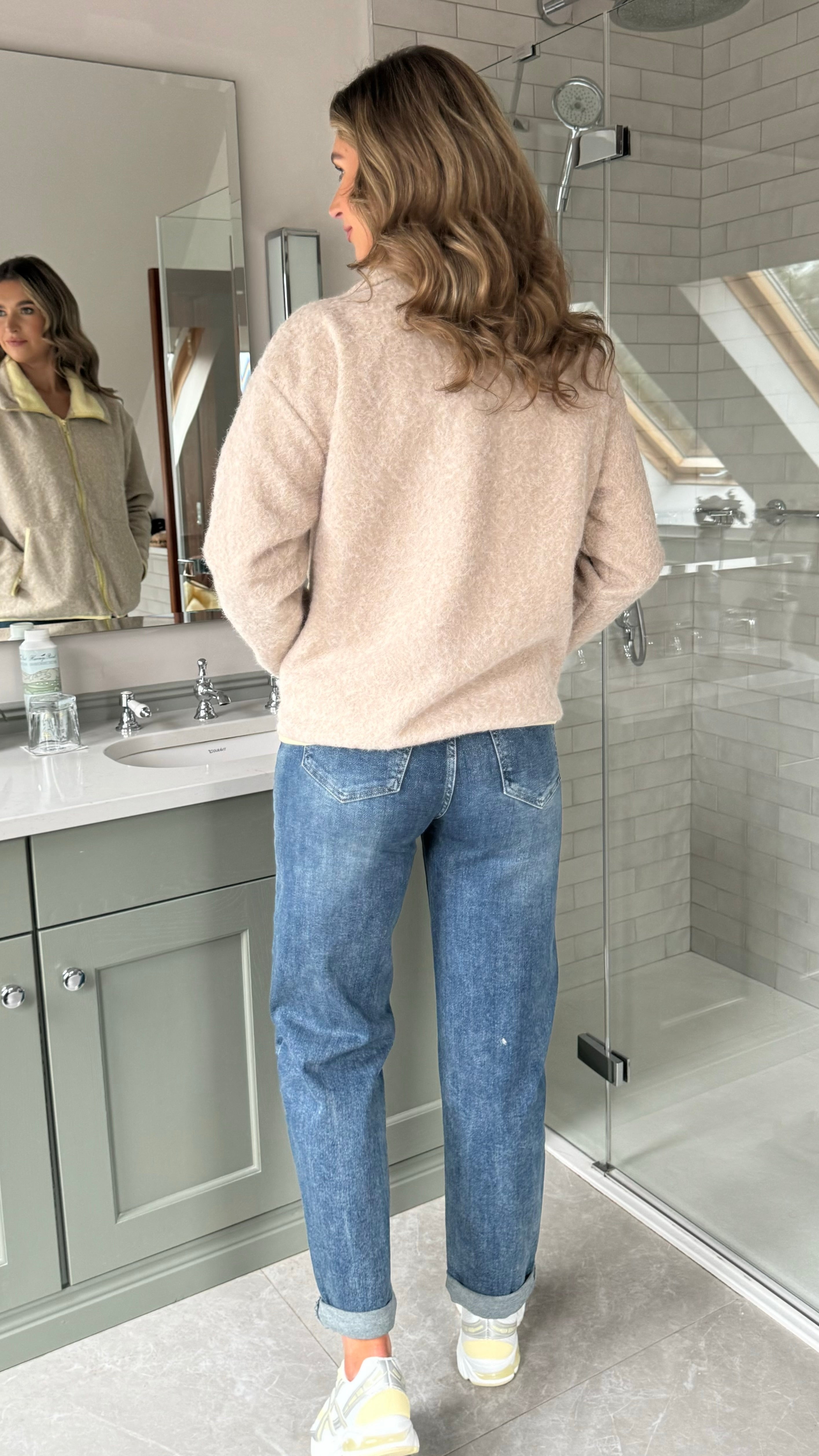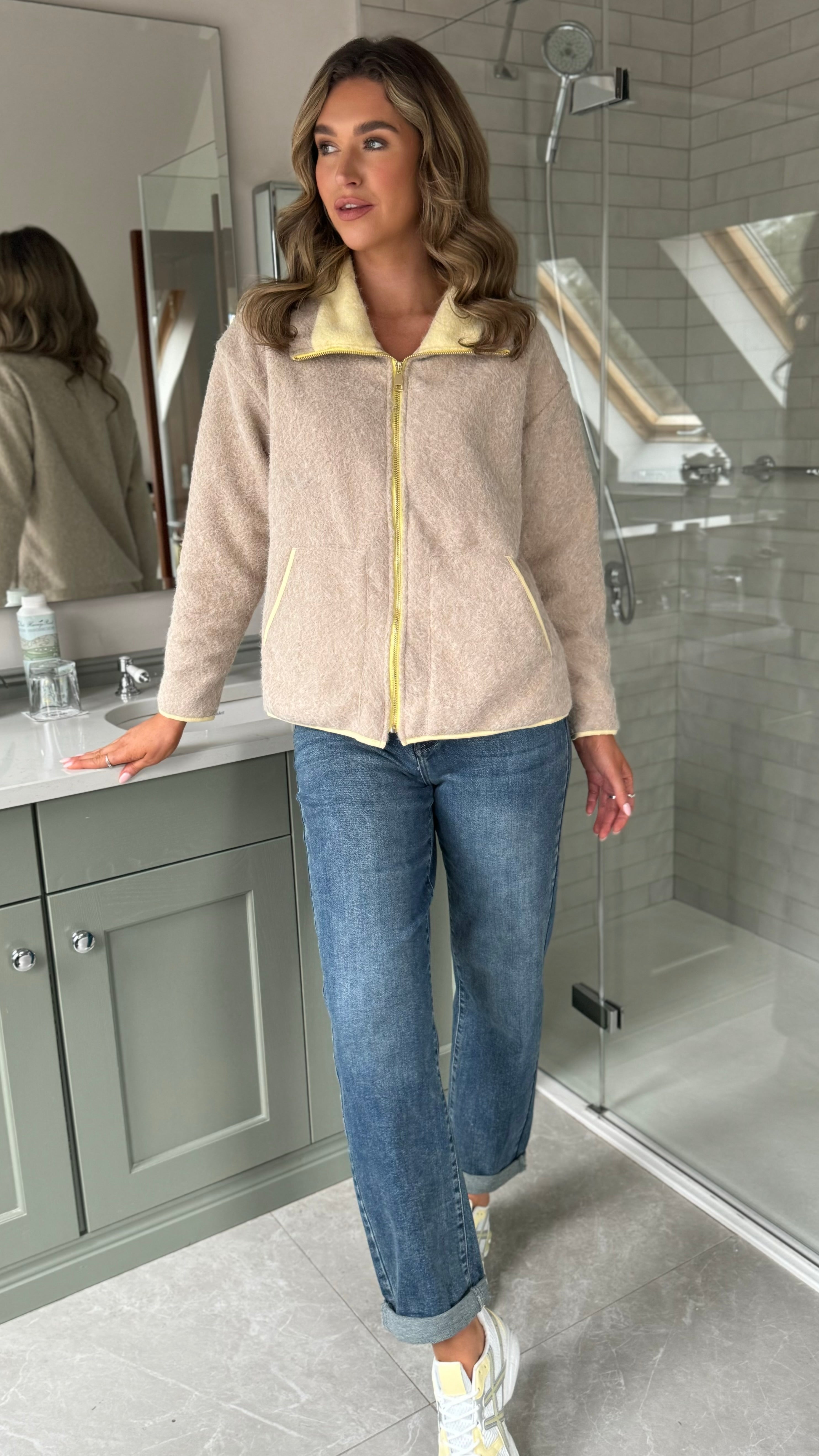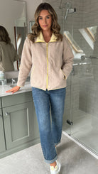 Karen Taupe & Yellow Lined Zip Up Fleece