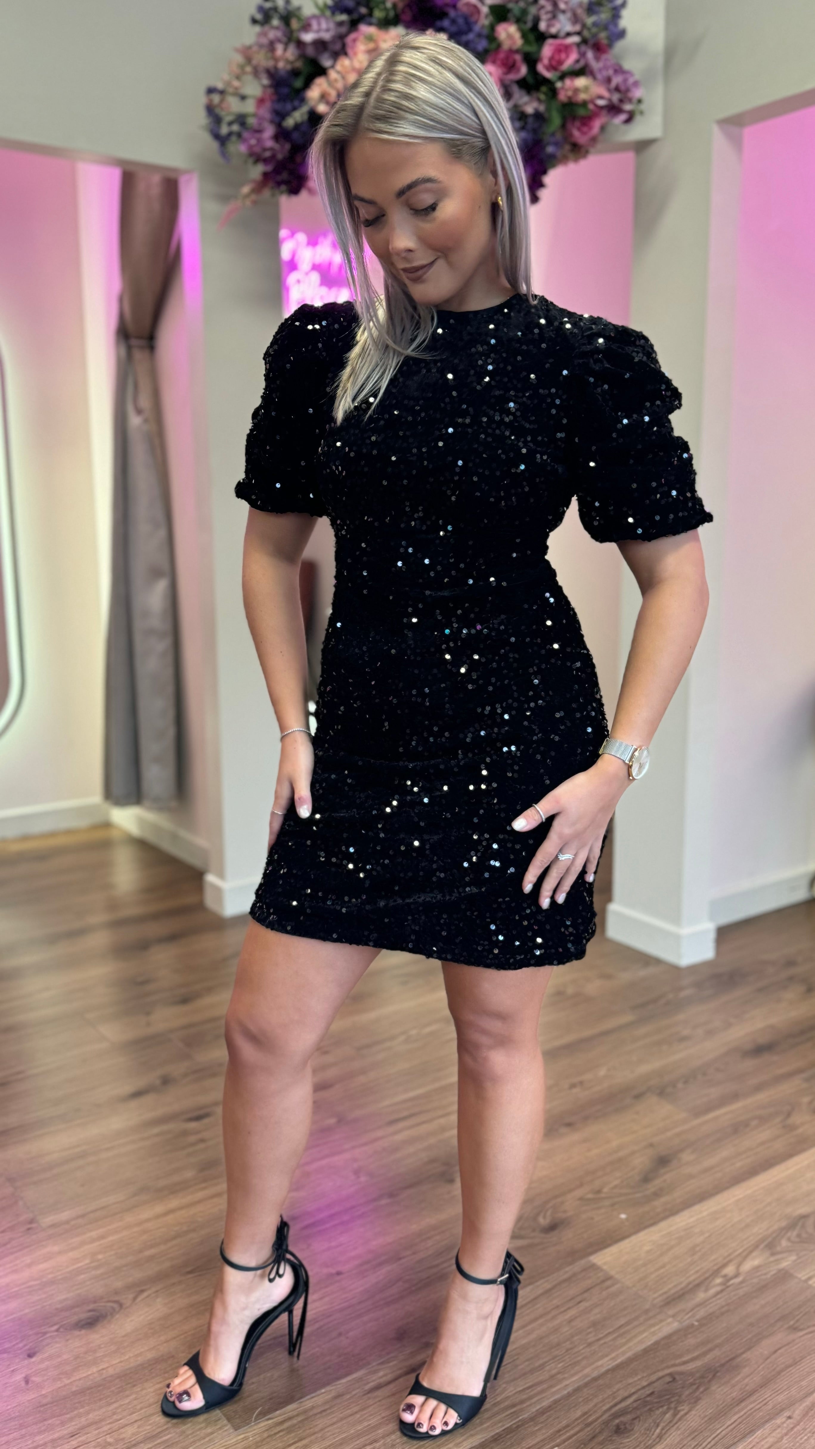 Make a statement in the Katana Black Sequin Mini Dress 😍 With its playful cut out back and unique puff sleeves, this quirky dress is sure to turn heads and add a fun touch to your wardrobe. Get ready to stand out and have a blast in this stylish and flirty dress! 💜