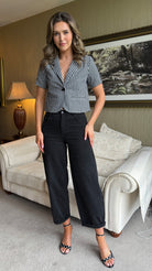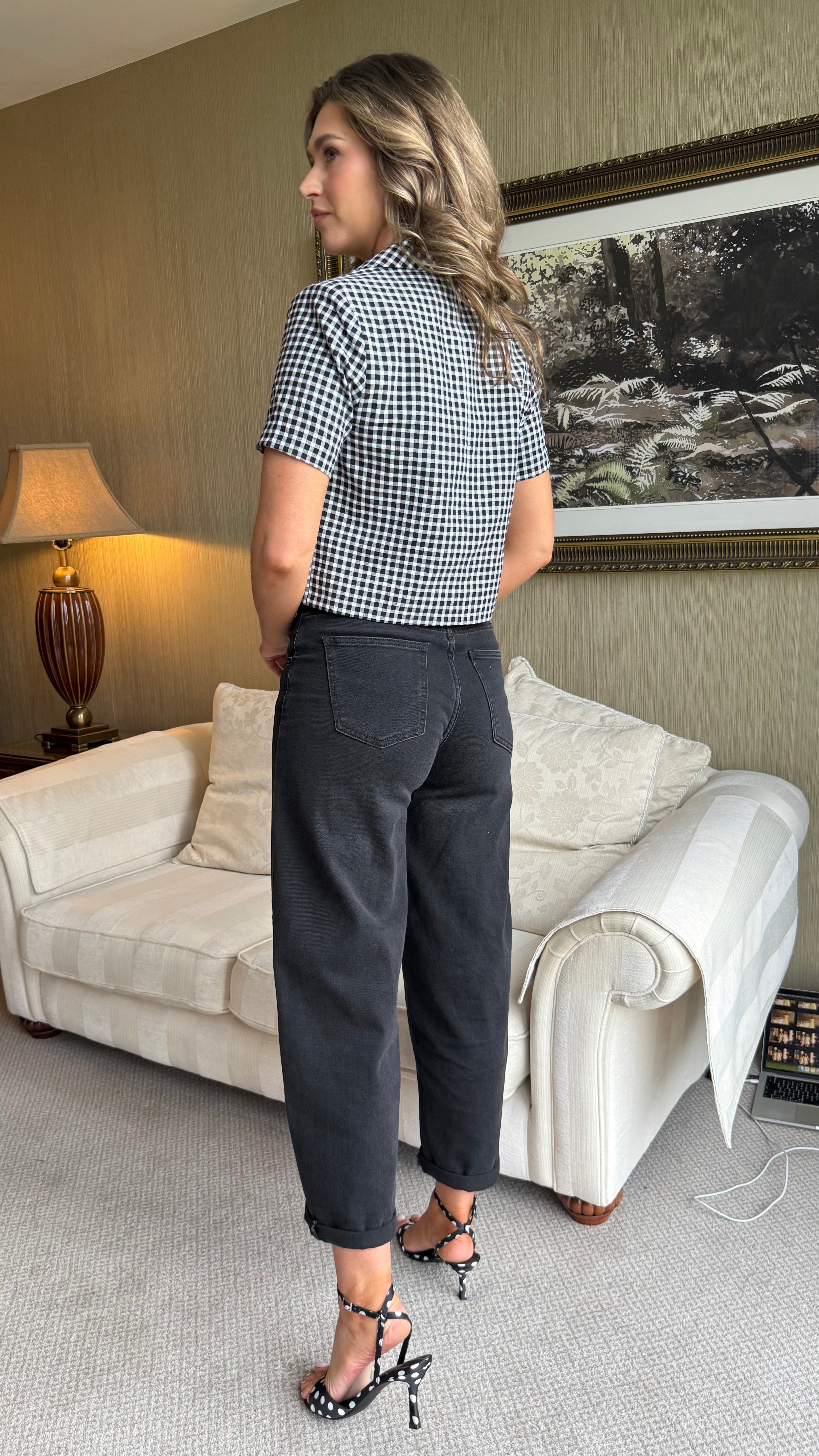 Elevate your everyday wardrobe with the Kyla Black & White Gingham Button Detail Top. This versatile piece features a crisp collar detail and short sleeves for effortless styling across seasons. The black button fastening adds a polished touch, while the lined construction ensures comfort and durability. Perfect for layering or wearing solo, this contemporary top transitions seamlessly from office to weekend.