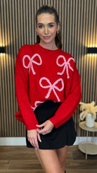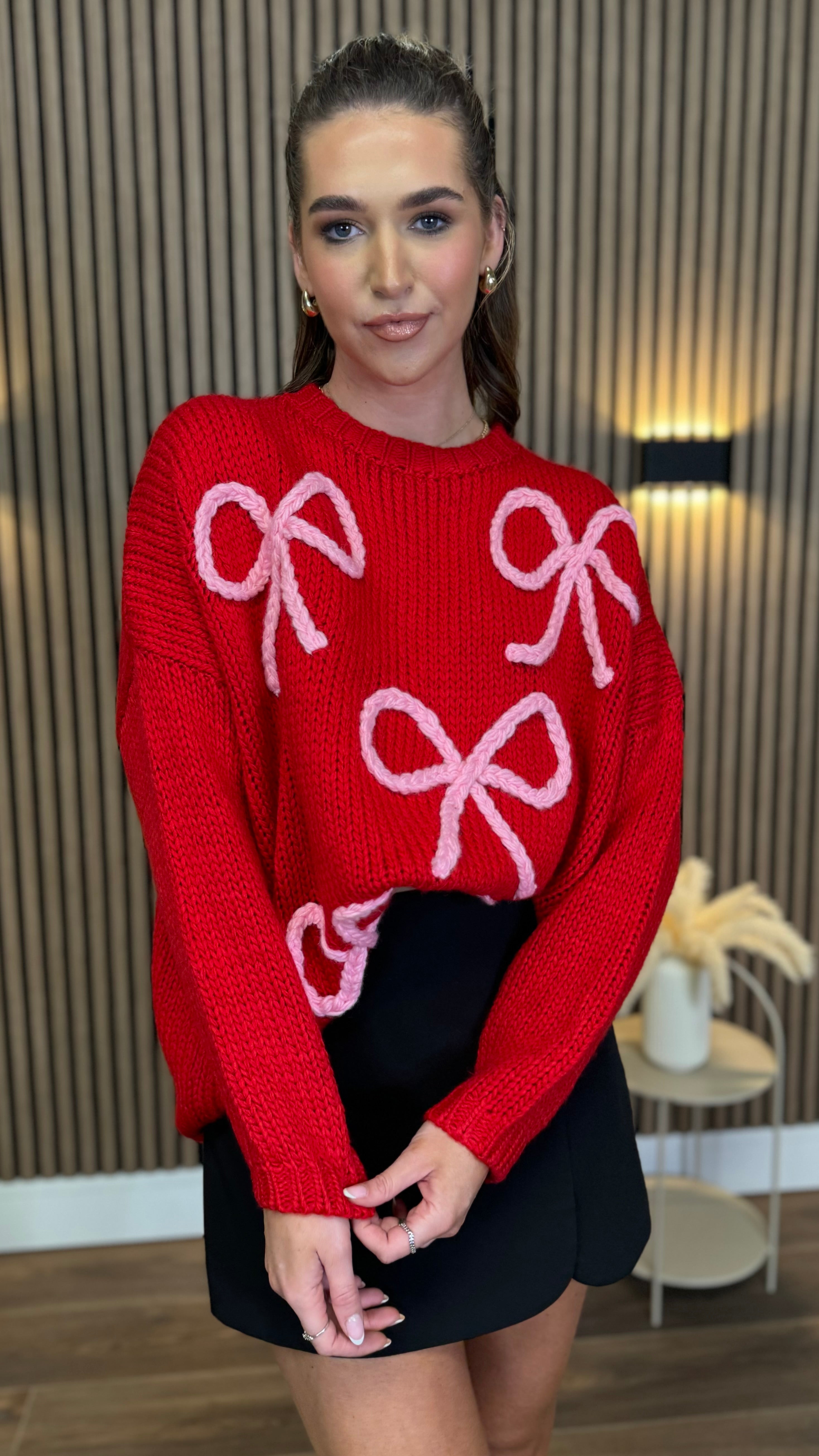 Cozy up in style with the Leigh-Anne Red & Pink Bow Design Jumper! Featuring a playful oversized fit and chunky knit, this jumper wraps you in warmth and comfort. The round neckline and long sleeves add classic charm, while the standout bow design brings a fun, flirty touch to your look. Perfect for layering or wearing solo on cooler days, it’s your new go-to for effortless, cheerful fashion.