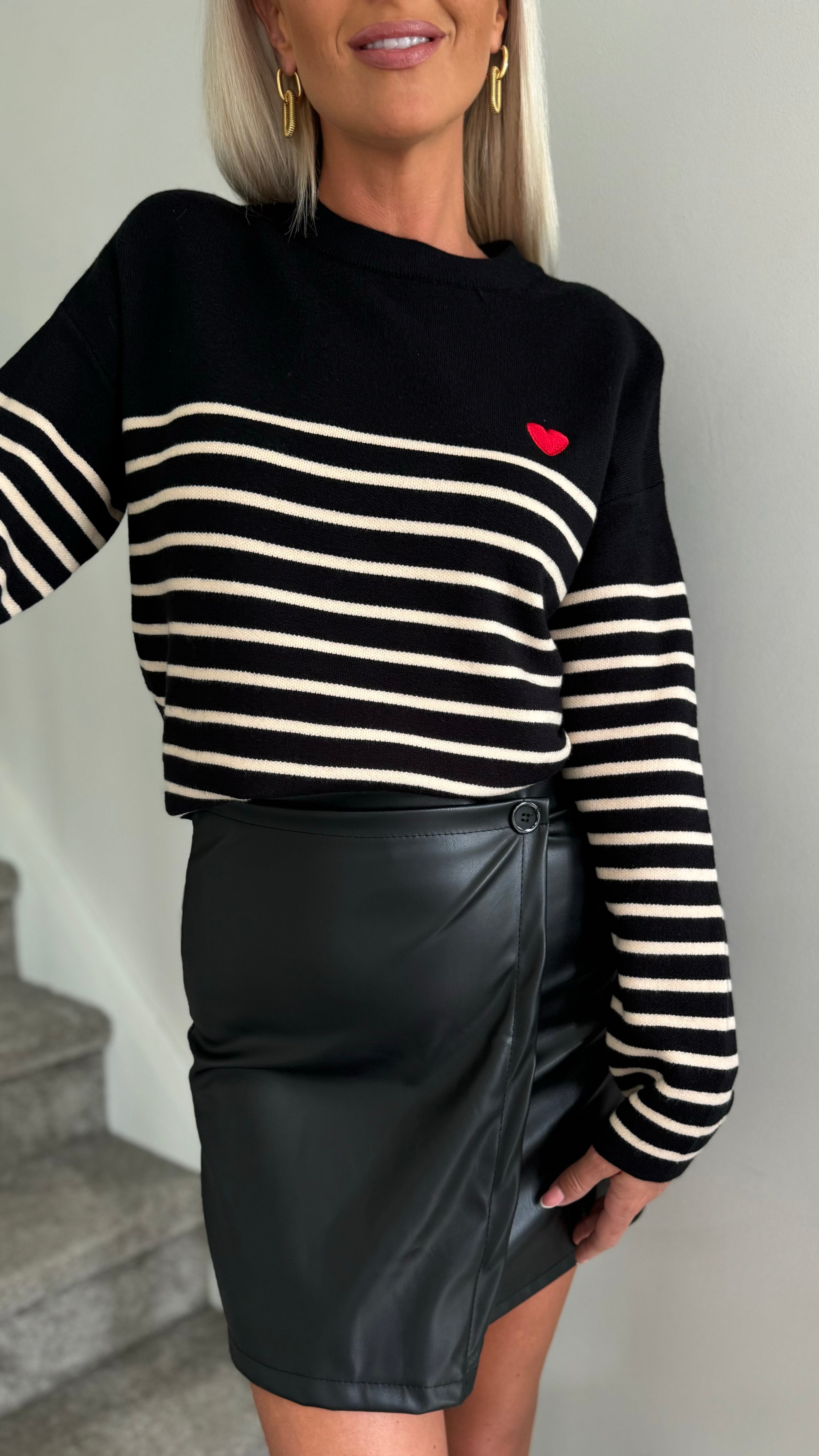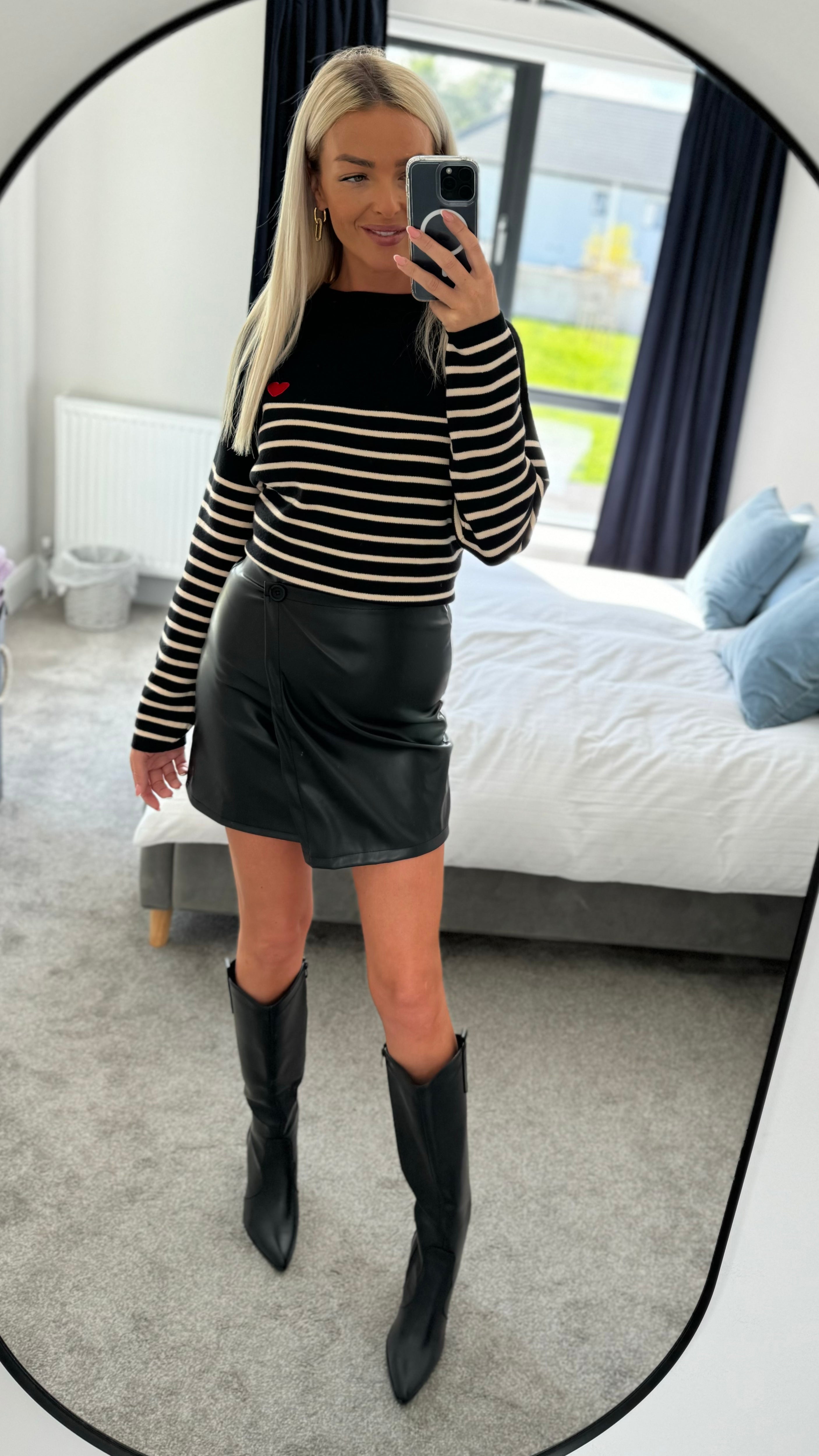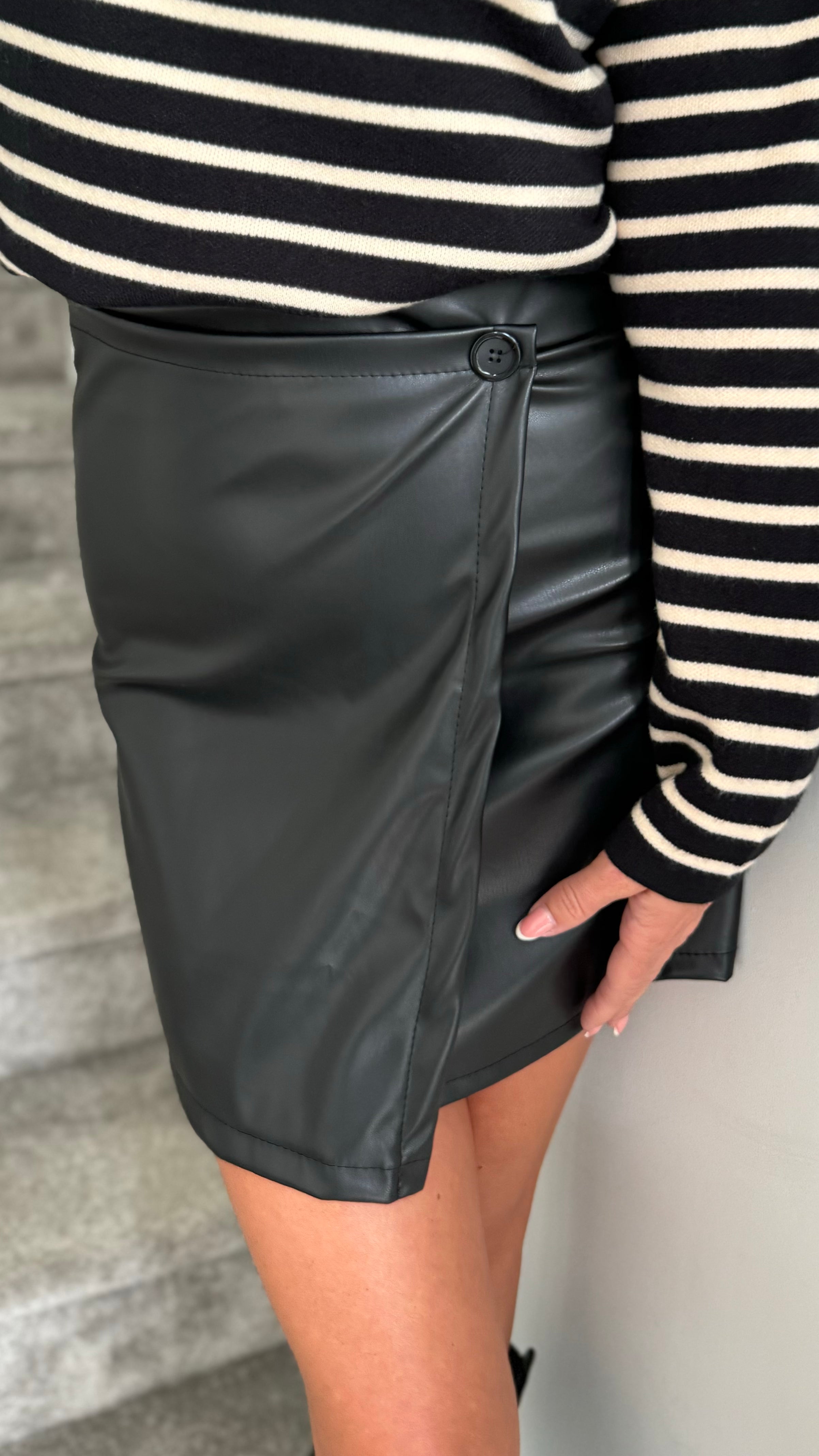 Lissandra Black Leather Look Wrap Detail Mini Skirt