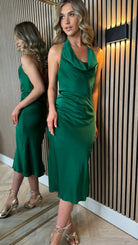 Elevate your style with the Louisa Emerald Green Cowl Neck Midi Dress! π This elegant dress features a flattering cowl neck design and a rich emerald color. Perfect for any special occasion, it will make you feel confident and beautiful. Pair with heels and an updo for a stunning look.