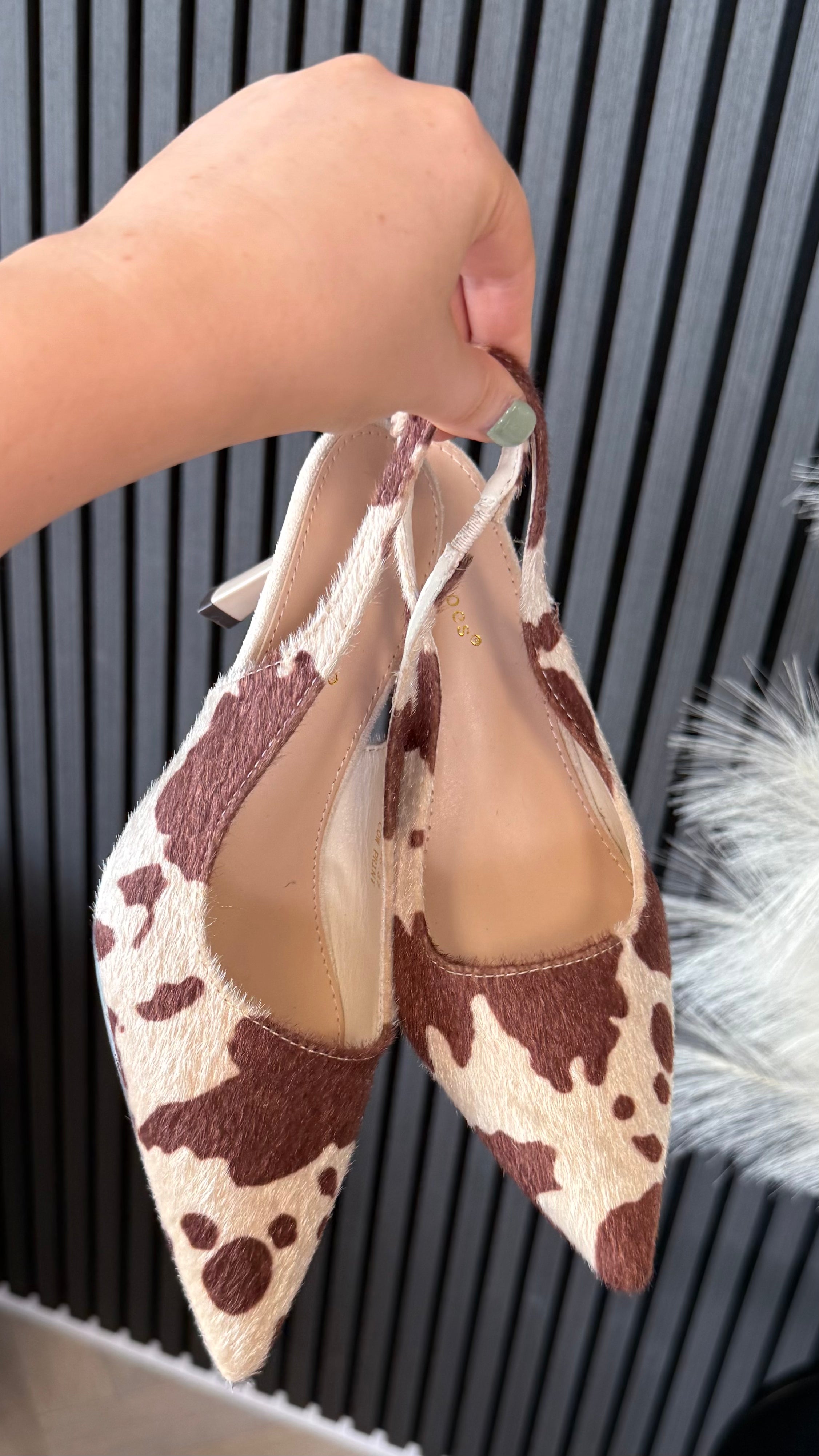 Luisa Beige Cow Print Slingback Stiletto Heel