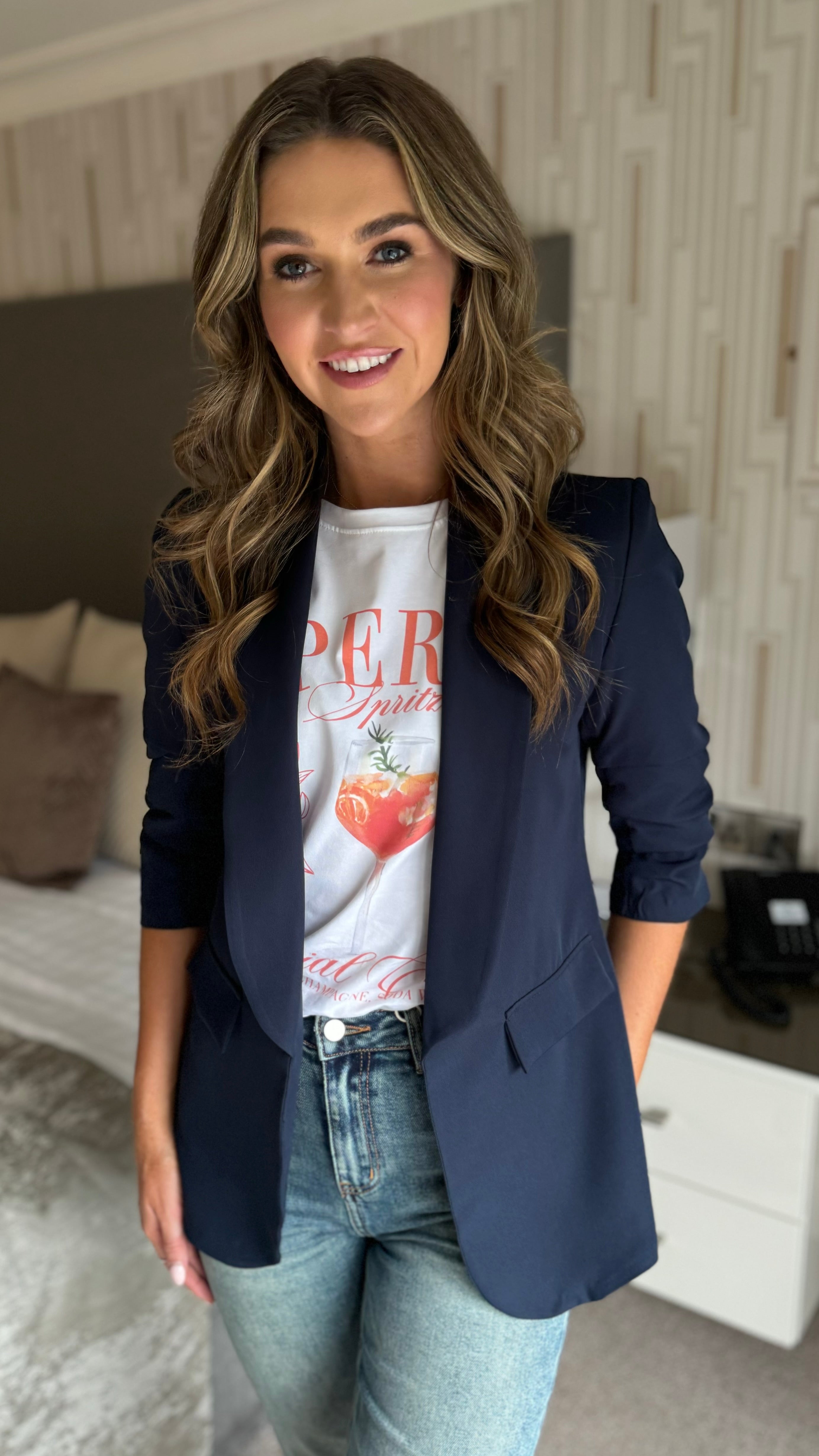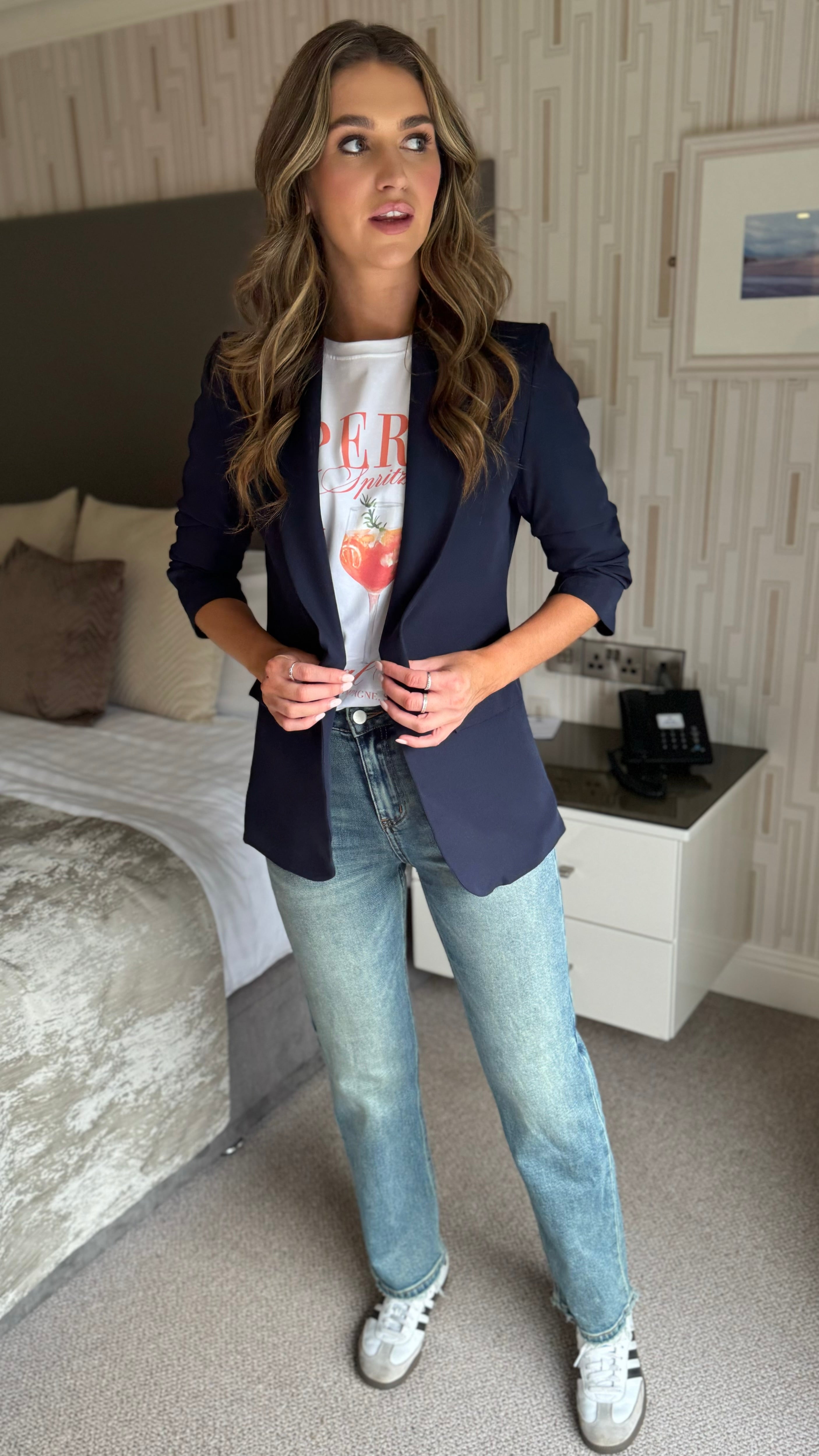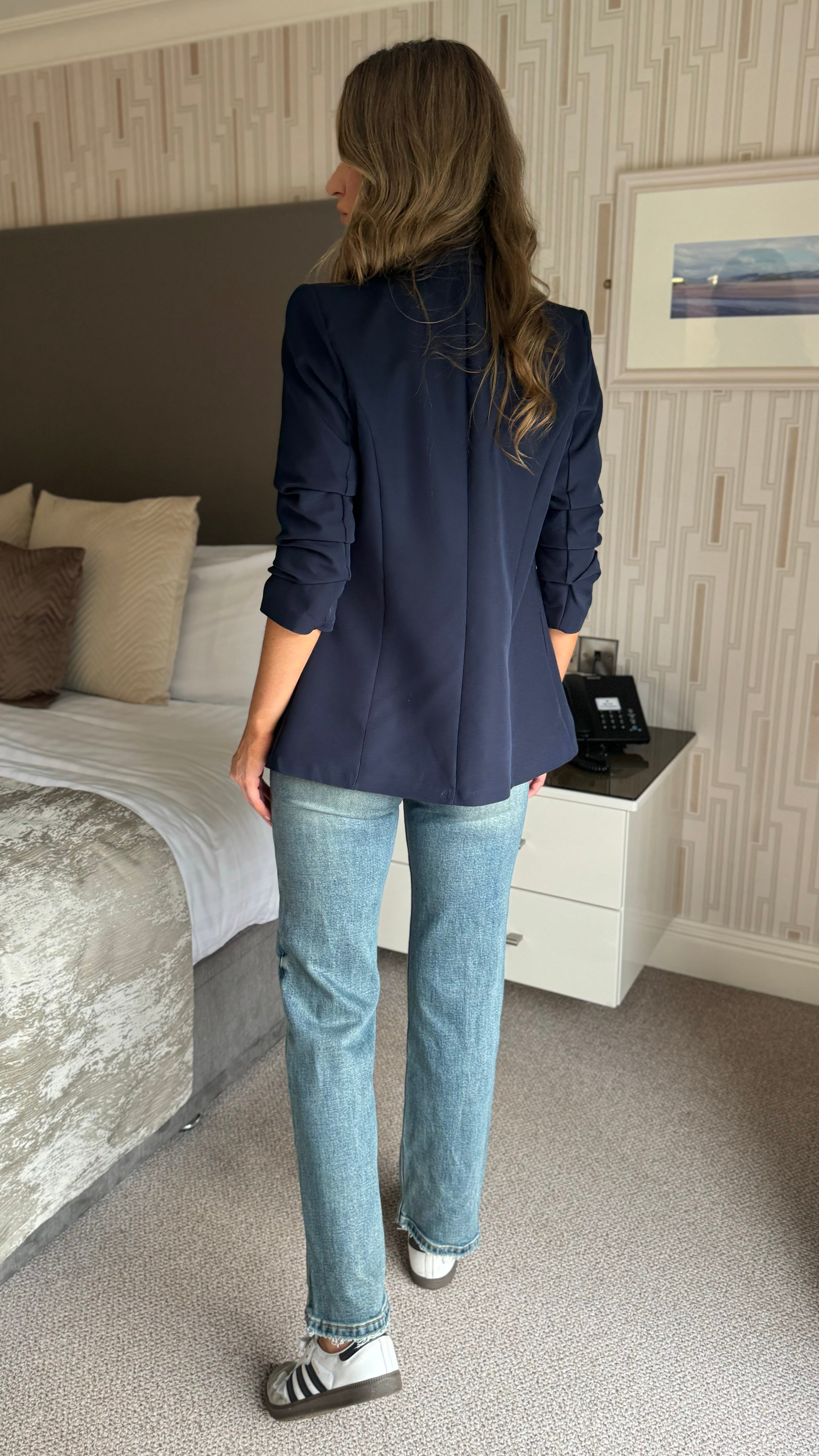 Elevate your wardrobe with the McKinley Navy Ruched Sleeve Blazer ✨. Crafted for a refined silhouette, its ruched sleeves add a subtle yet striking detail that enhances your professional and evening looks. The deep navy hue offers timeless versatility, making it a perfect choice for sophisticated style with a modern twist. Perfect for making a confident statement at any occasion. 🌟