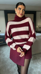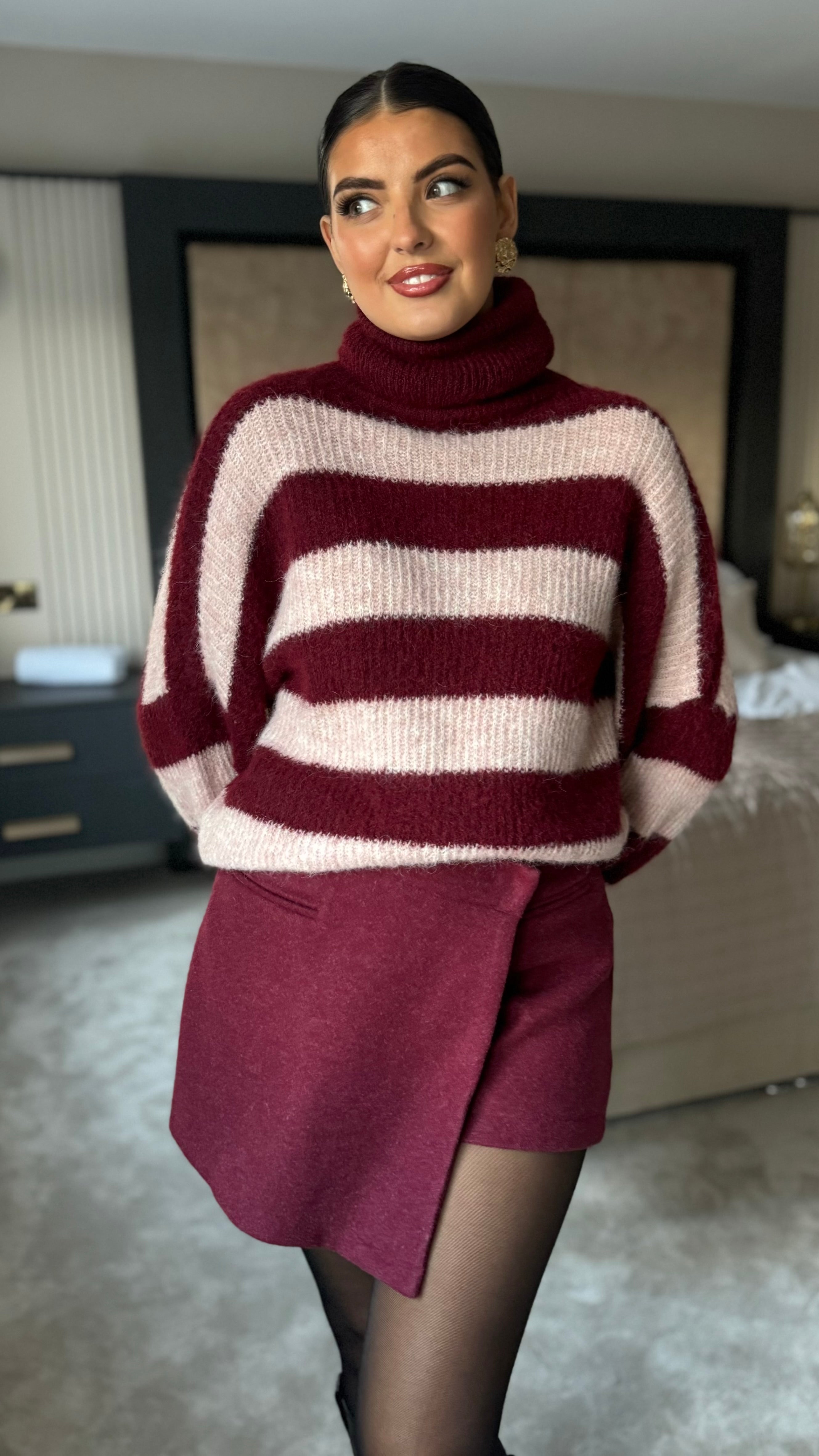 Mella Burgundy & Pink Stripe Roll Neck Jumper