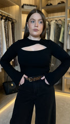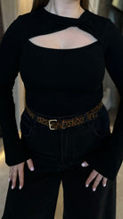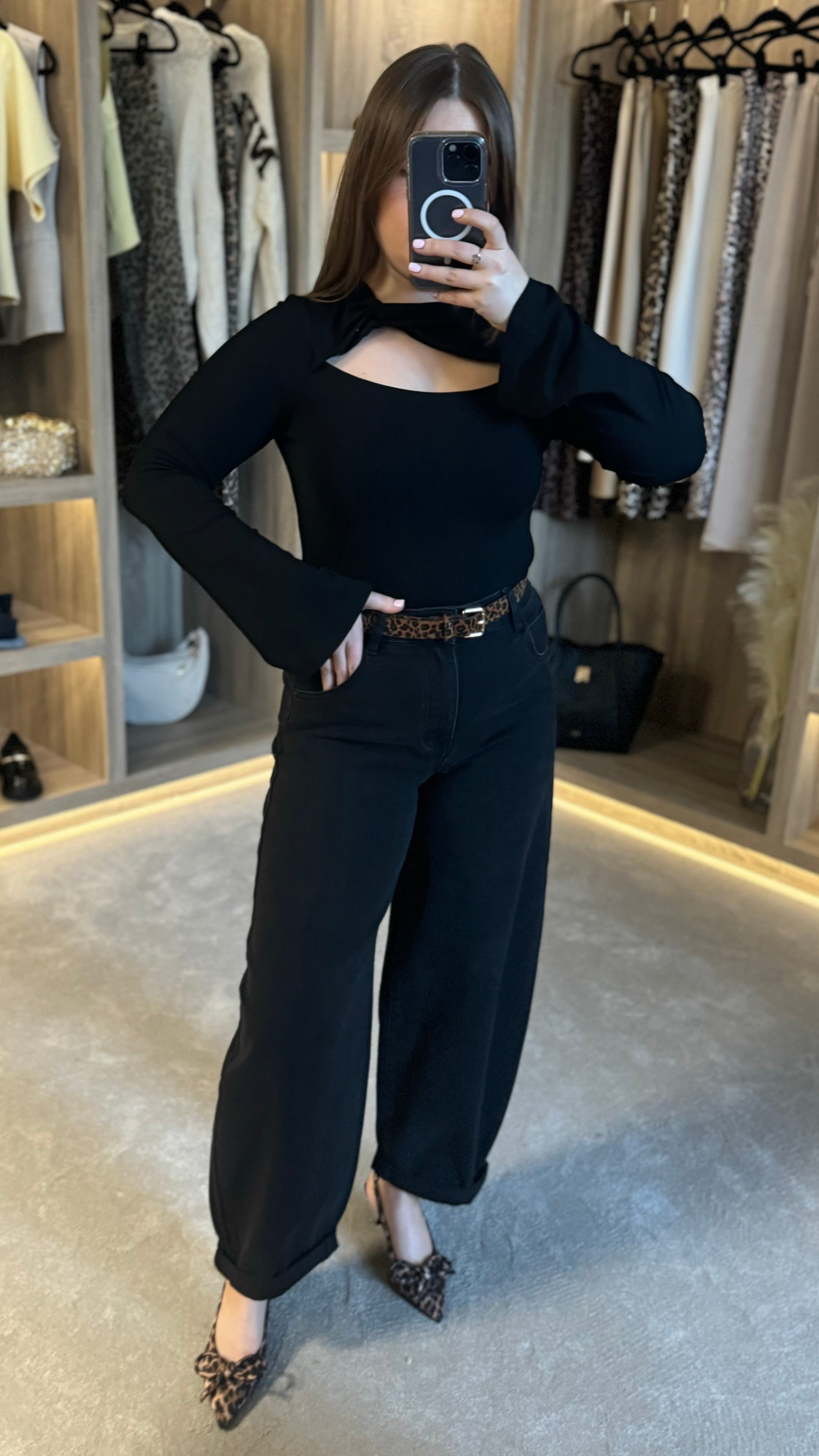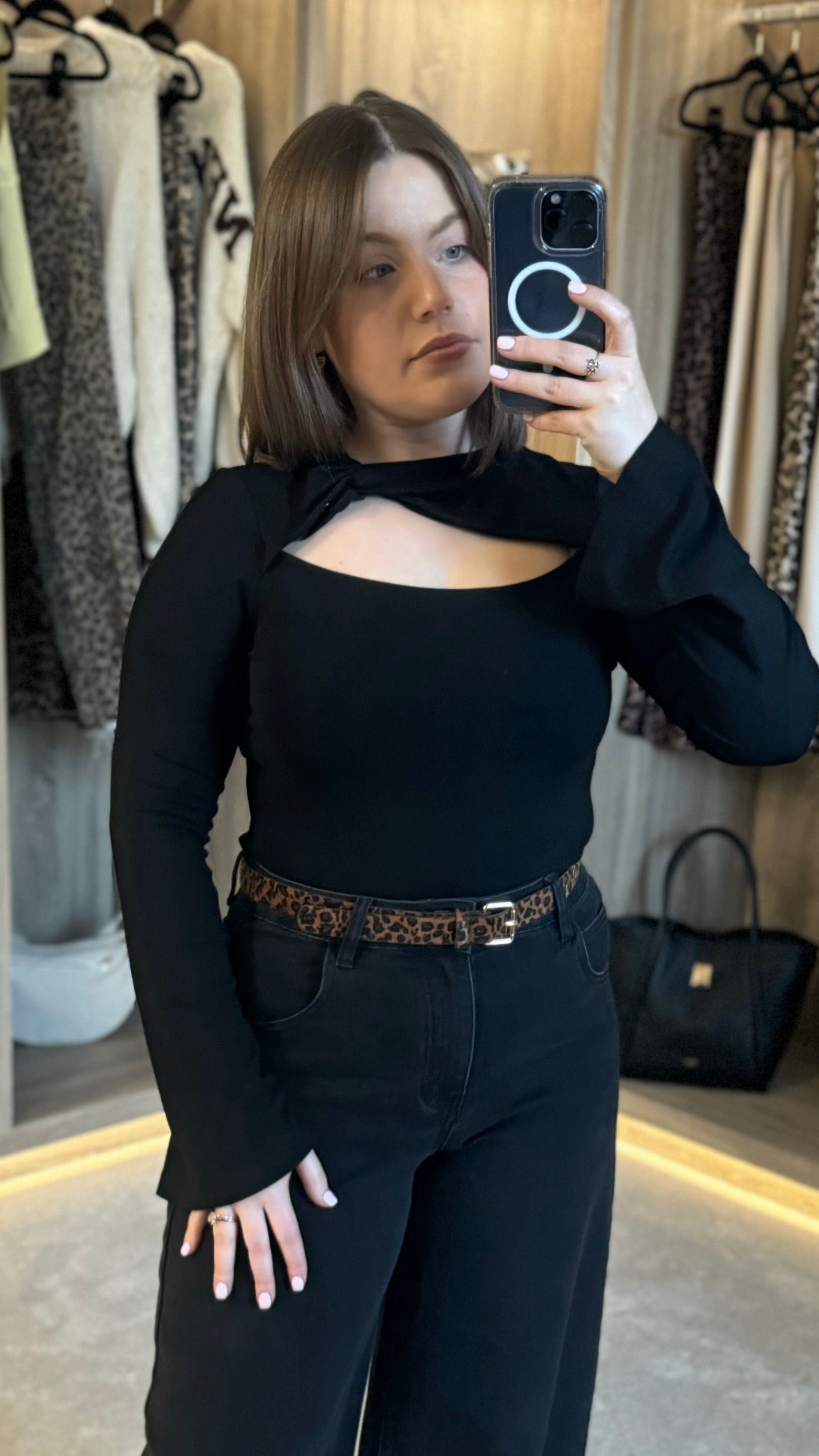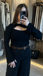 Introducing the Naima Black Cut-Out Long Sleeve Top – your new go-to for effortless style with a cheeky twist! This playful piece features a flattering round neckline and strategic cut-out details that add just the right amount of edge. Crafted from soft, stretchy fabric, it moves with you all day long, while the flare sleeves bring a fun, flirty vibe to any outfit. Perfect for dressing up or down, this versatile top is ready for whatever adventure comes your way.