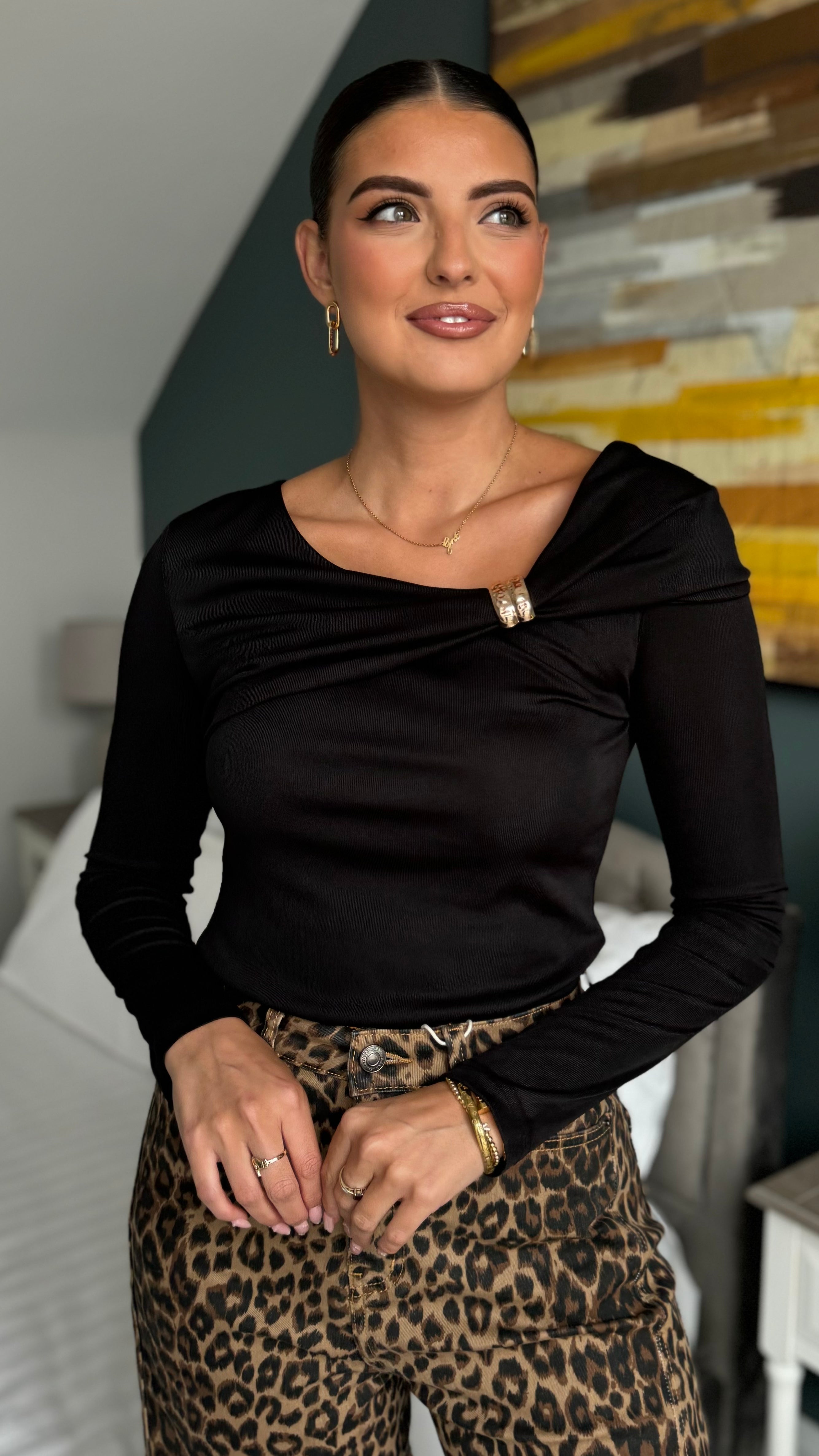 The Nina Off Shoulder Gold Detail Draped Top combines elegance with everyday comfort. Crafted from soft, stretchy fabric that moves with you, this piece features a graceful off-shoulder neckline and long sleeves for versatile styling. Delicate gold detailing adds a touch of sophistication, while the draped silhouette flatters your frame beautifully. Perfect for dressing up or down, this top brings a polished finish to any wardrobe.