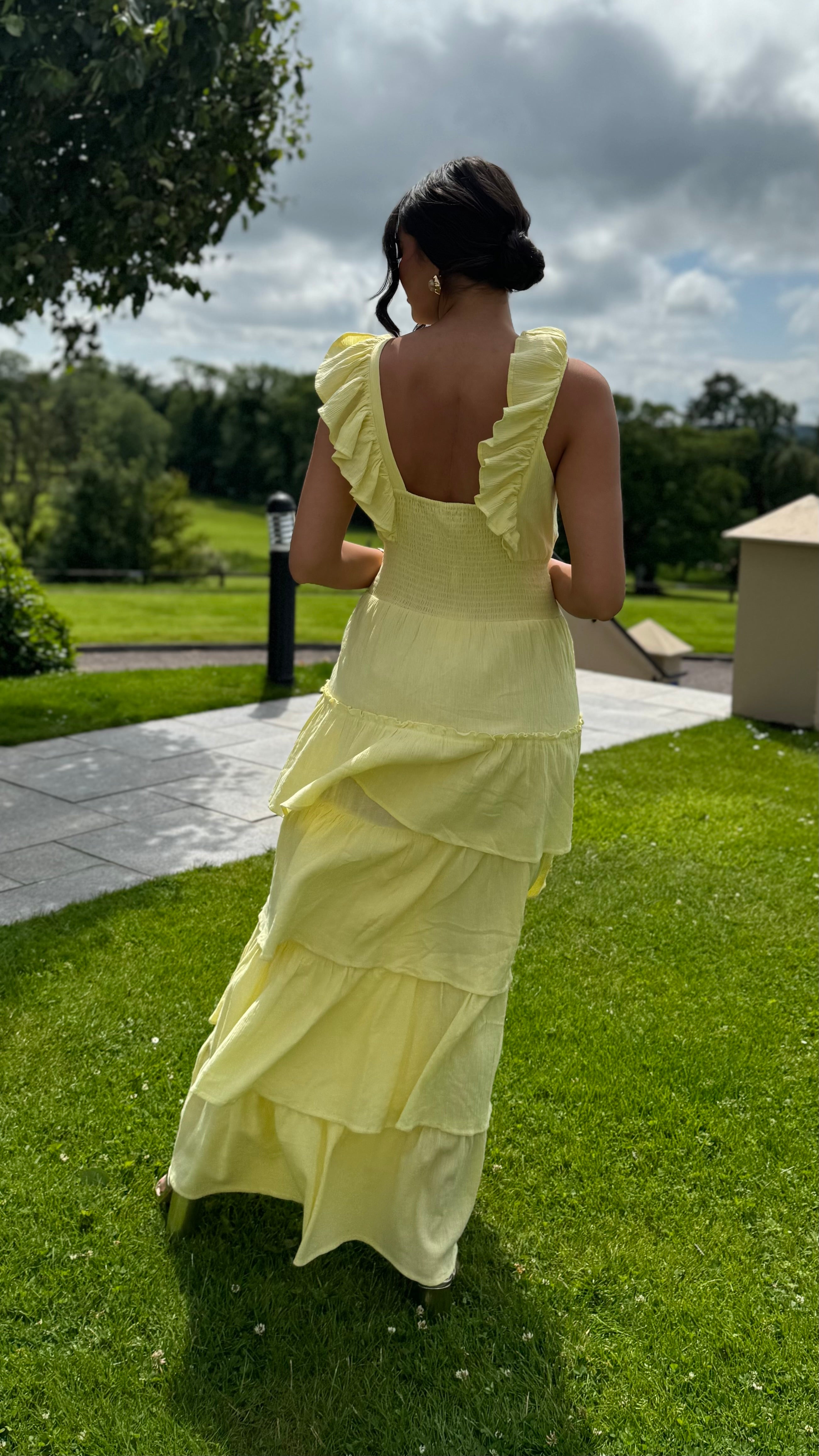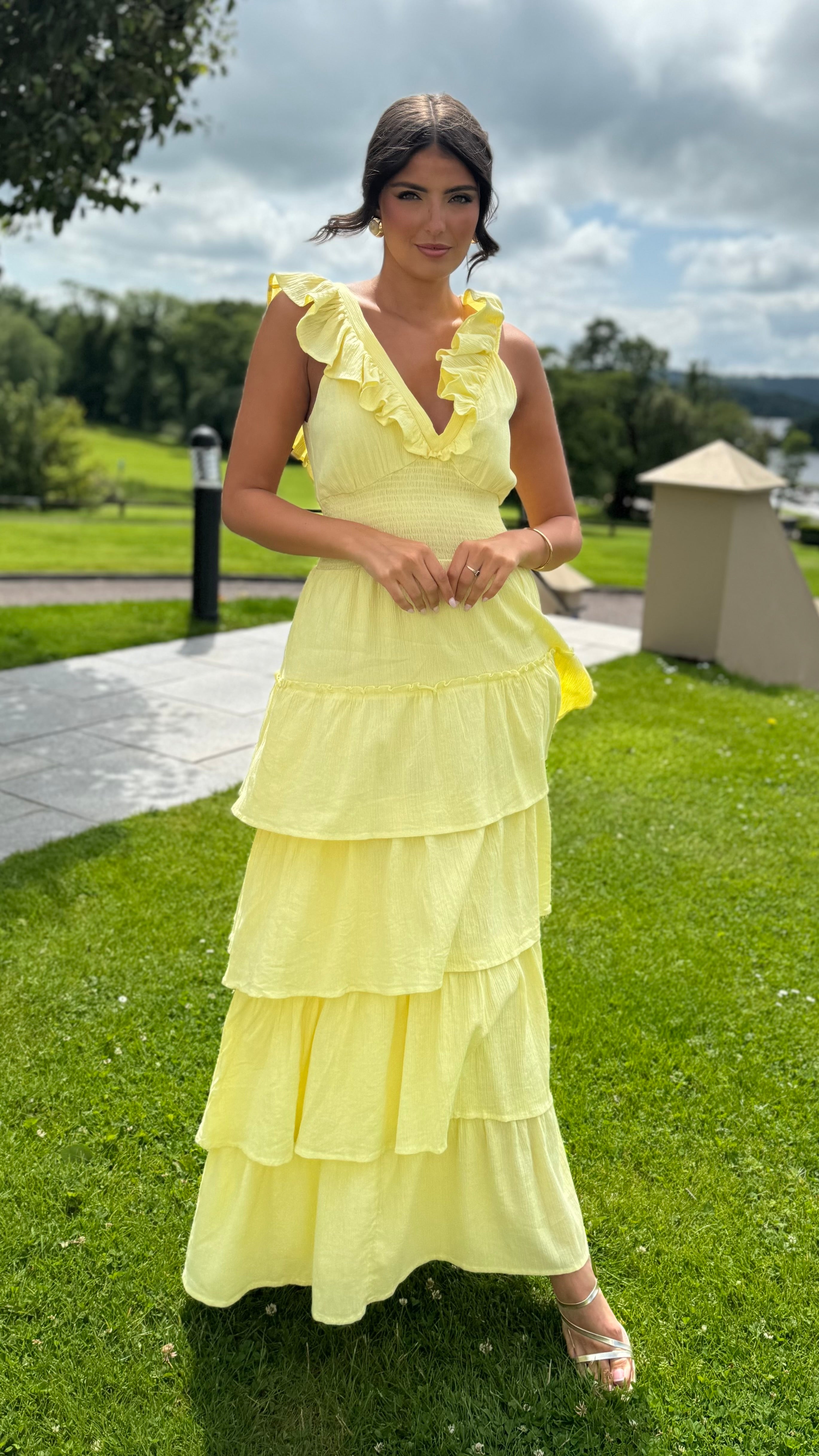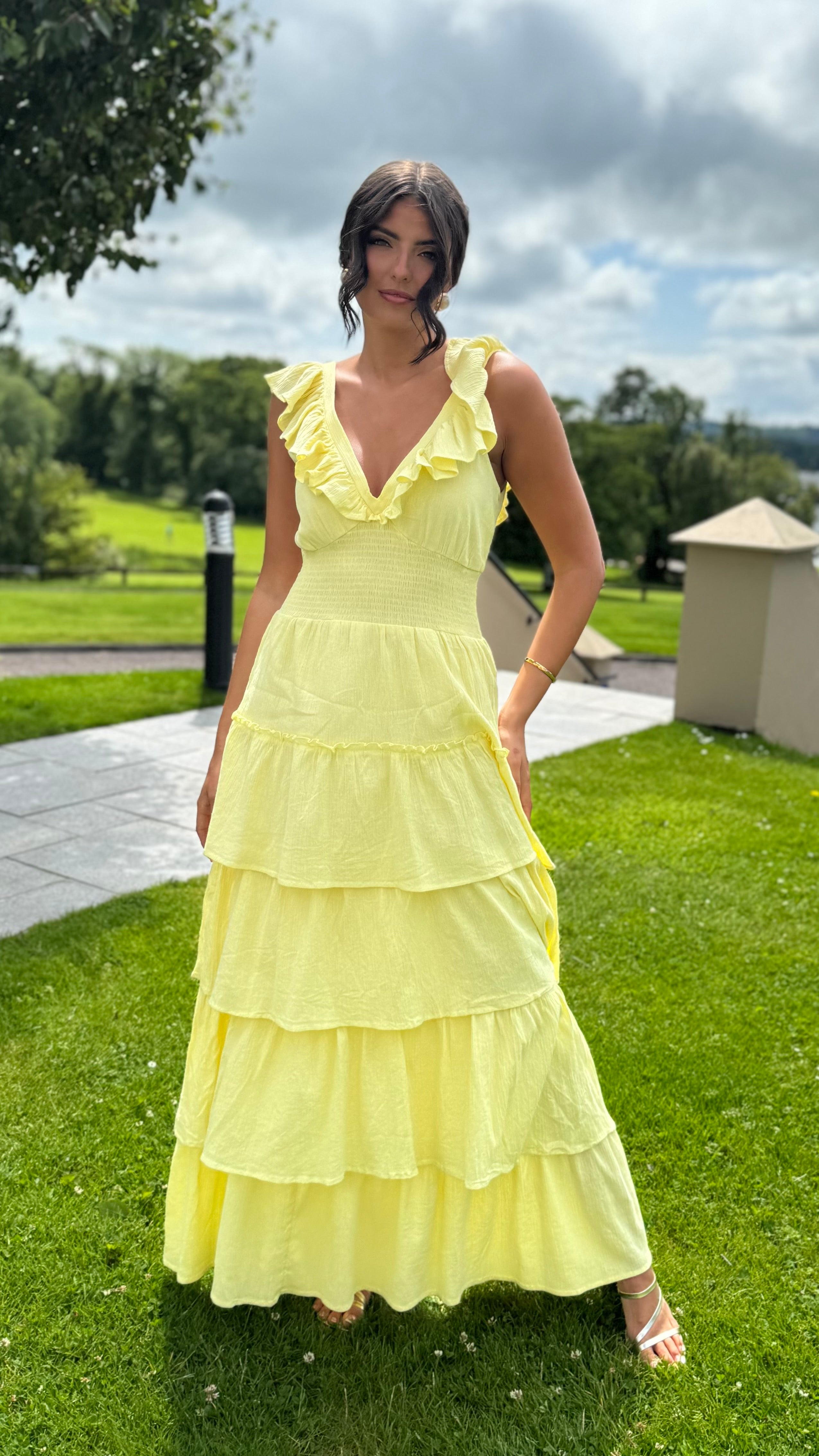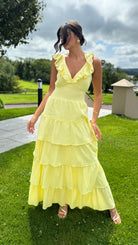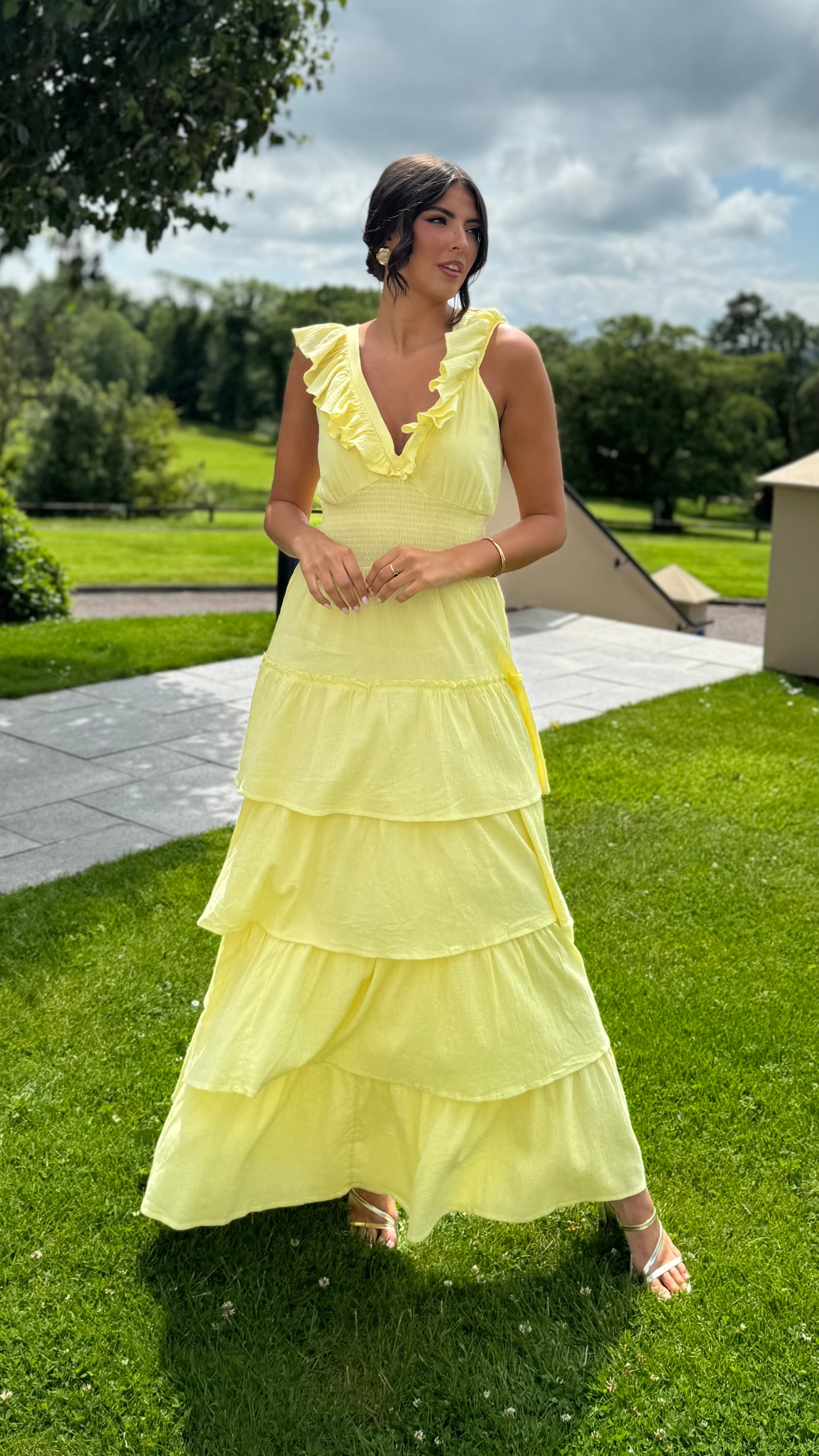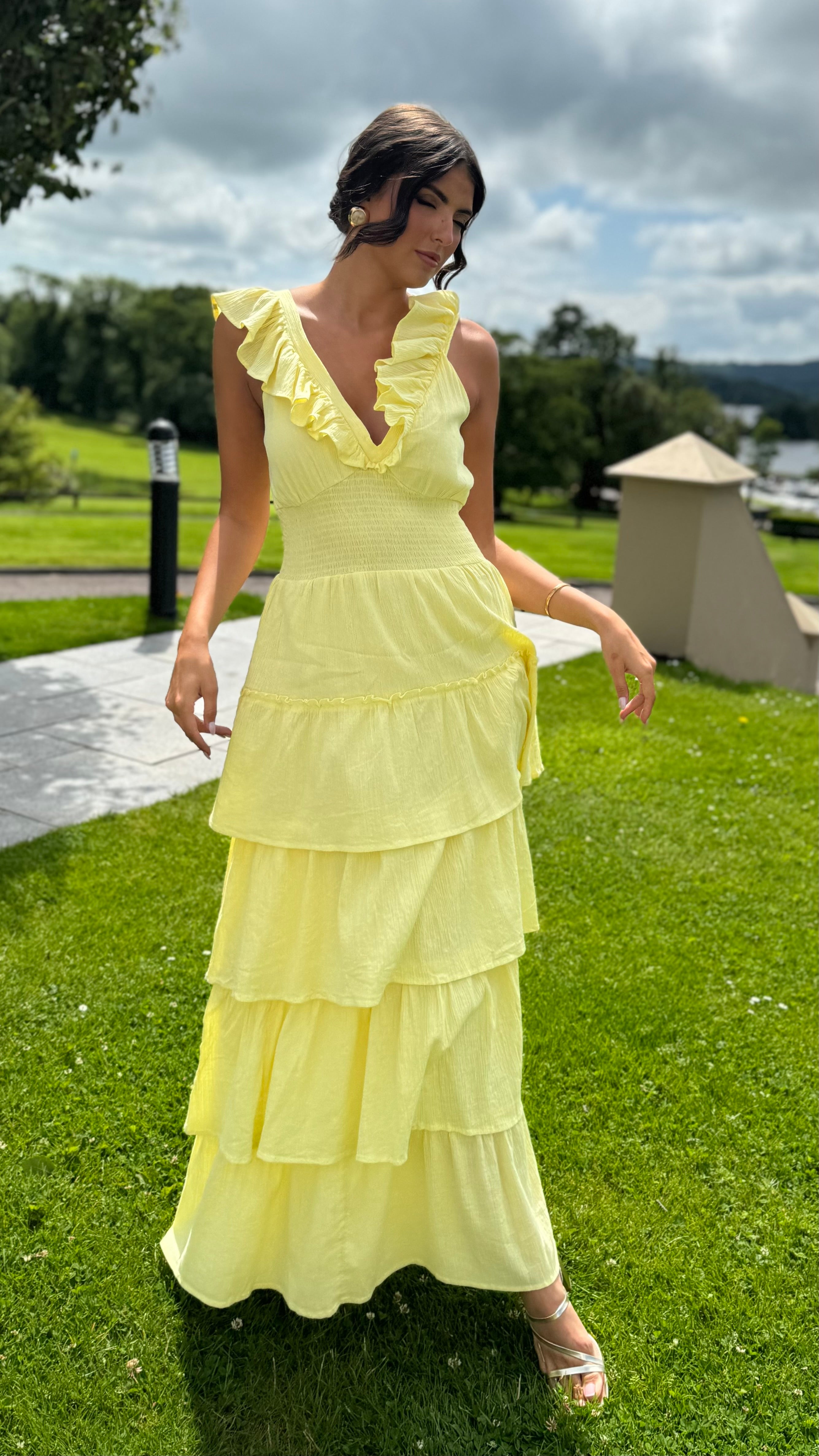 Opal Yellow V Neck Ruffle Detail Maxi Dress