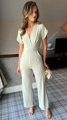Paloma Sage Twist Font Split Sleeve Jumpsuit