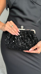Sparkle and shine with the Rebekah Black Sequin Clutch Bag—your new go-to for nights out and special occasions. Covered in shimmering sequins that catch the light beautifully, this clutch brings instant glamour to any outfit. The best part? Two removable chain straps let you wear it as a crossbody, shoulder bag, or clutch, giving you endless styling options. Whether you're heading to a party or a night on the town, this dazzling piece ensures you'll turn heads wherever you go.